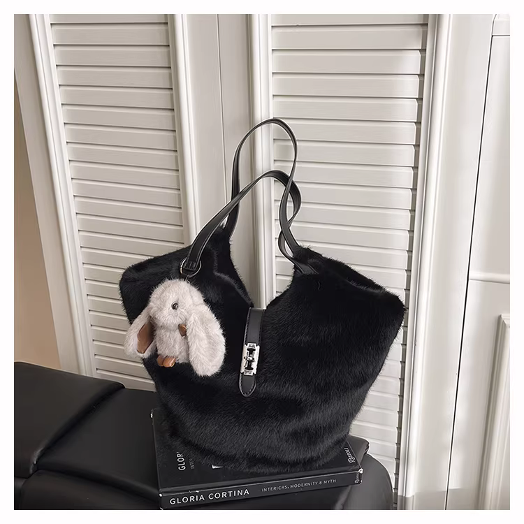- Túi xách lông mềm mại dành cho nữ, dung tích lớn, mẫu mới thu đông 2025, đa năng, túi đeo vai lông thú, túi tote cao cấp đi làm