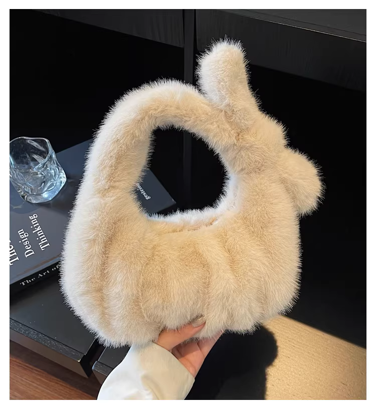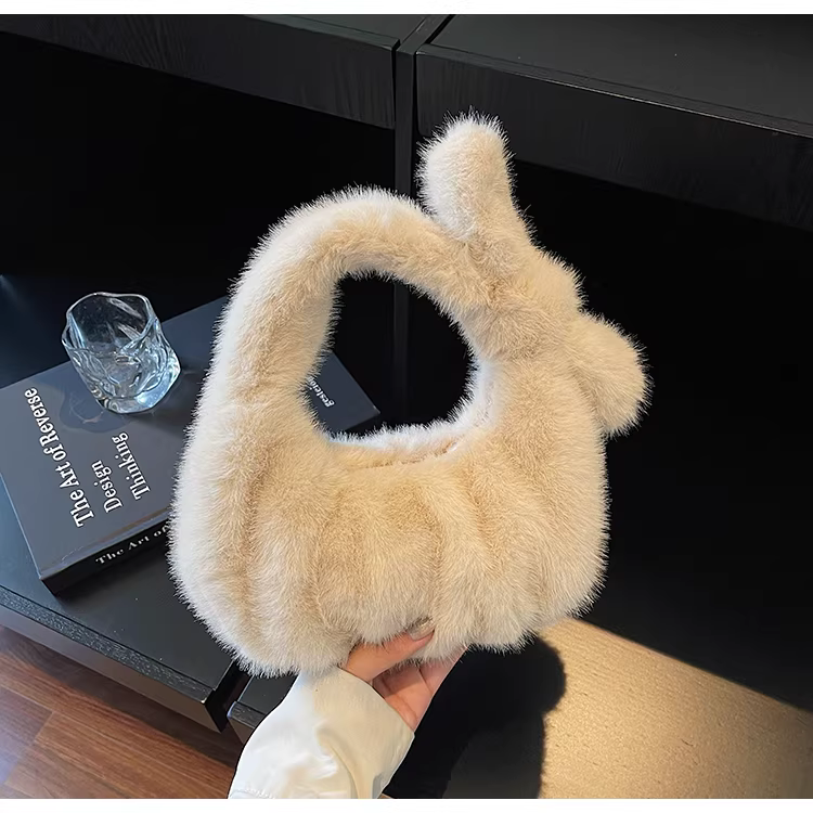 - Túi xách lông thú cao cấp dành cho nữ, mẫu mới thời trang thu đông 2025, túi xách lông mềm kiểu bánh bao cao cấp.