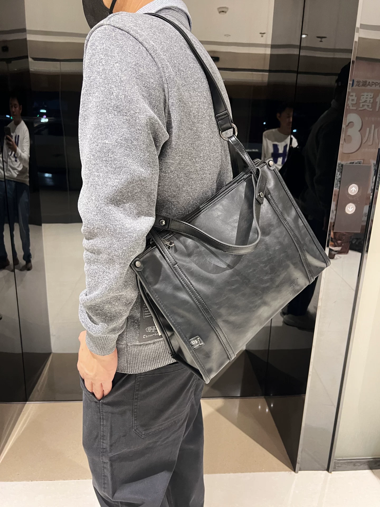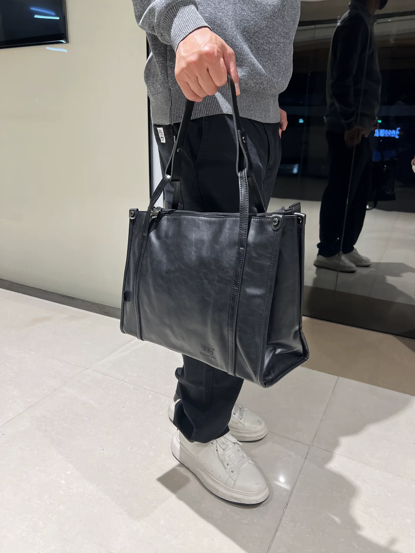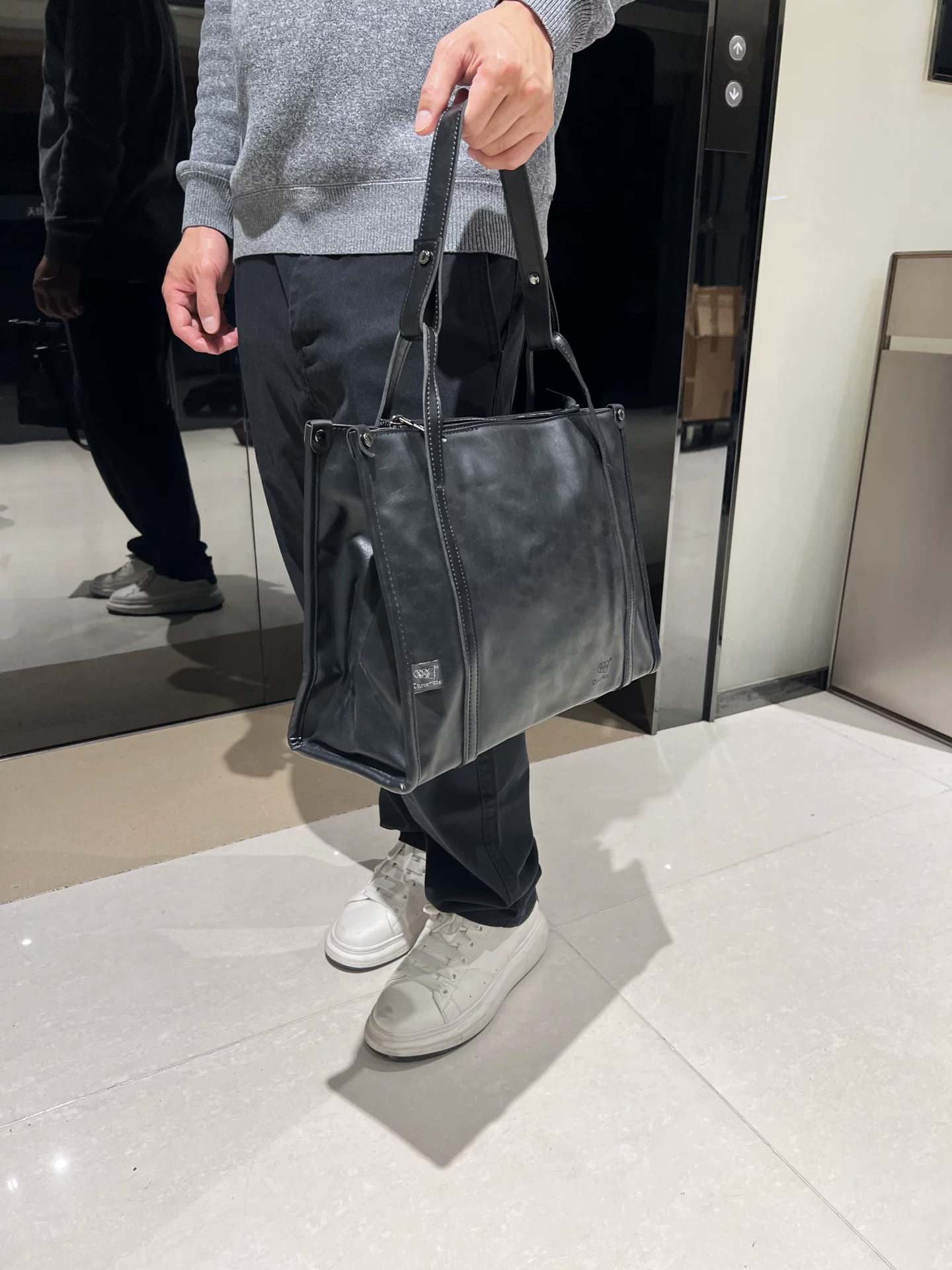- Túi xách nam da PU đen thời trang 2026, túi tote cỡ lớn, túi đi làm đơn giản, đeo vai, đeo chéo, kiểu dáng hiện đại