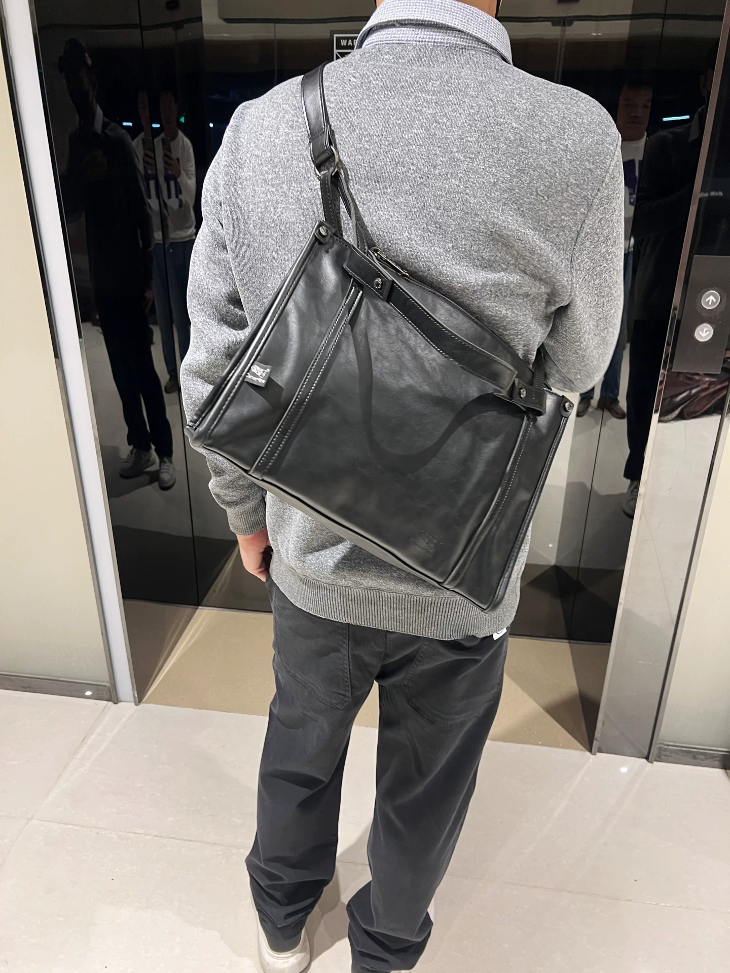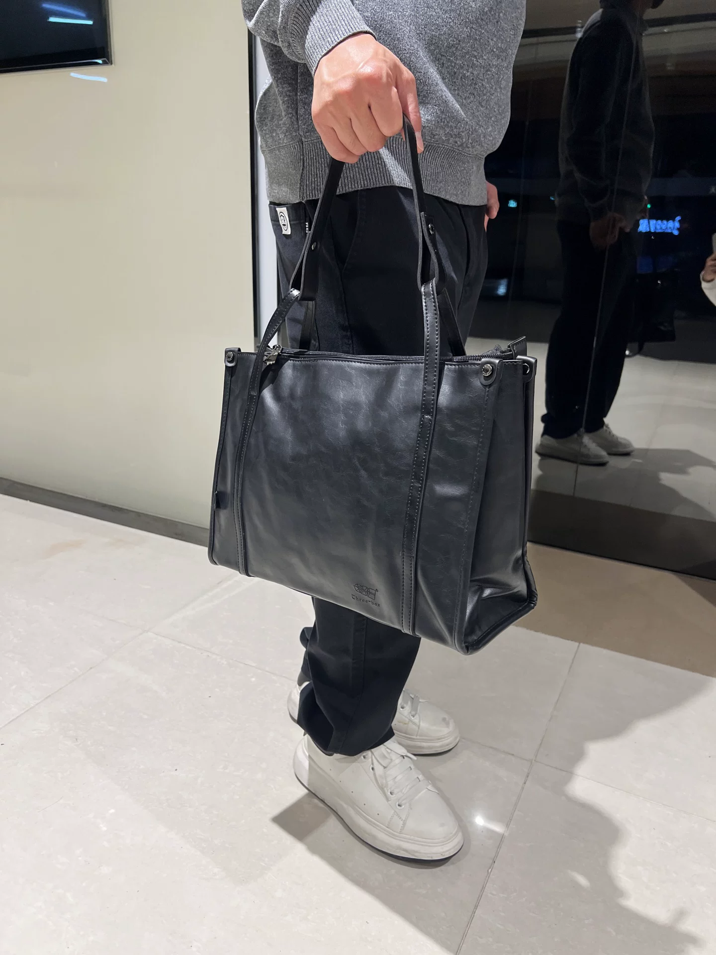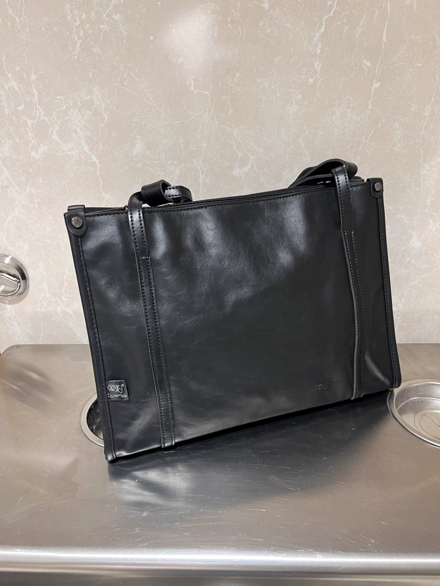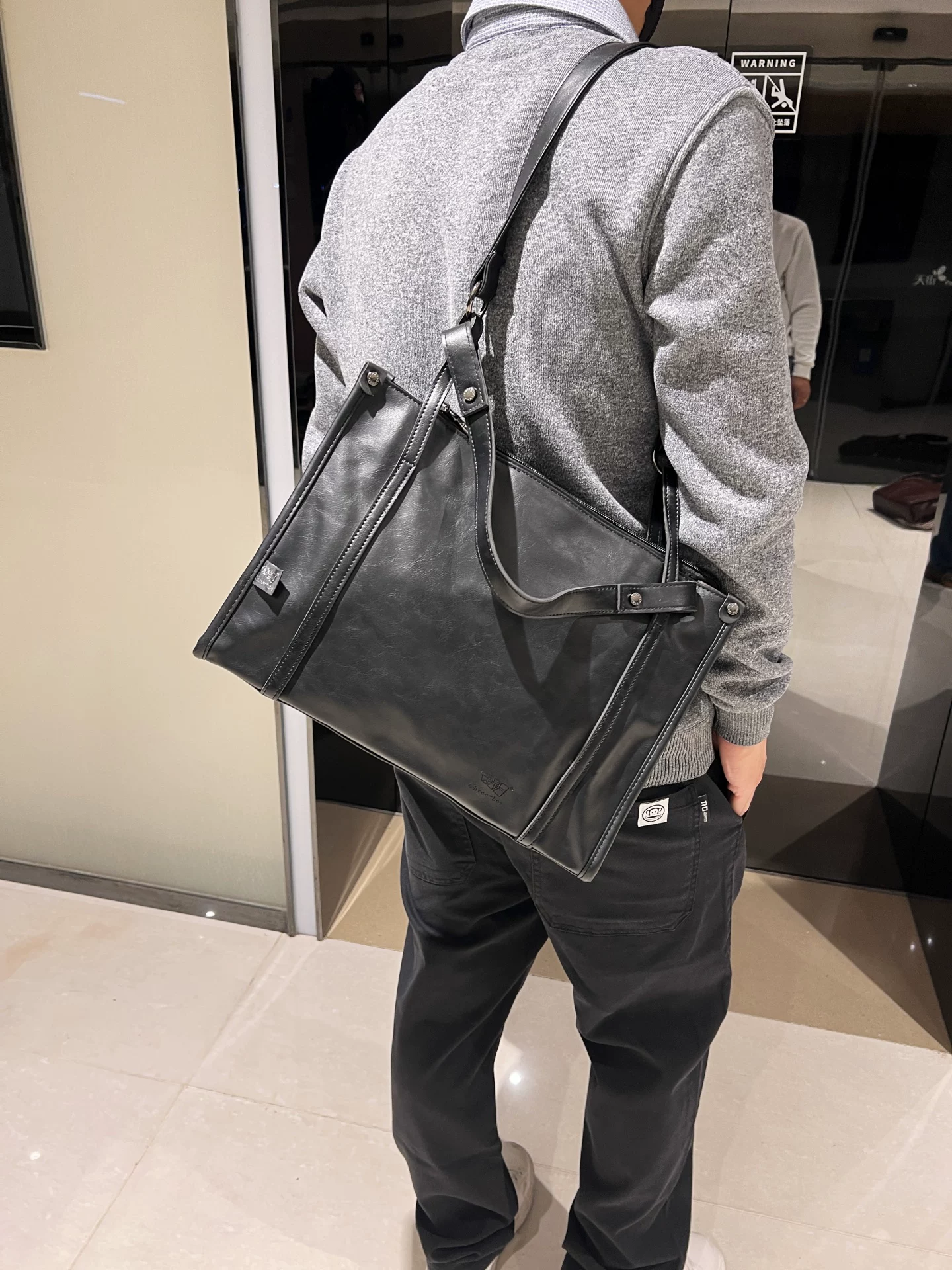 - Túi xách nam da PU đen thời trang 2026, túi tote cỡ lớn, túi đi làm đơn giản, đeo vai, đeo chéo, kiểu dáng hiện đại