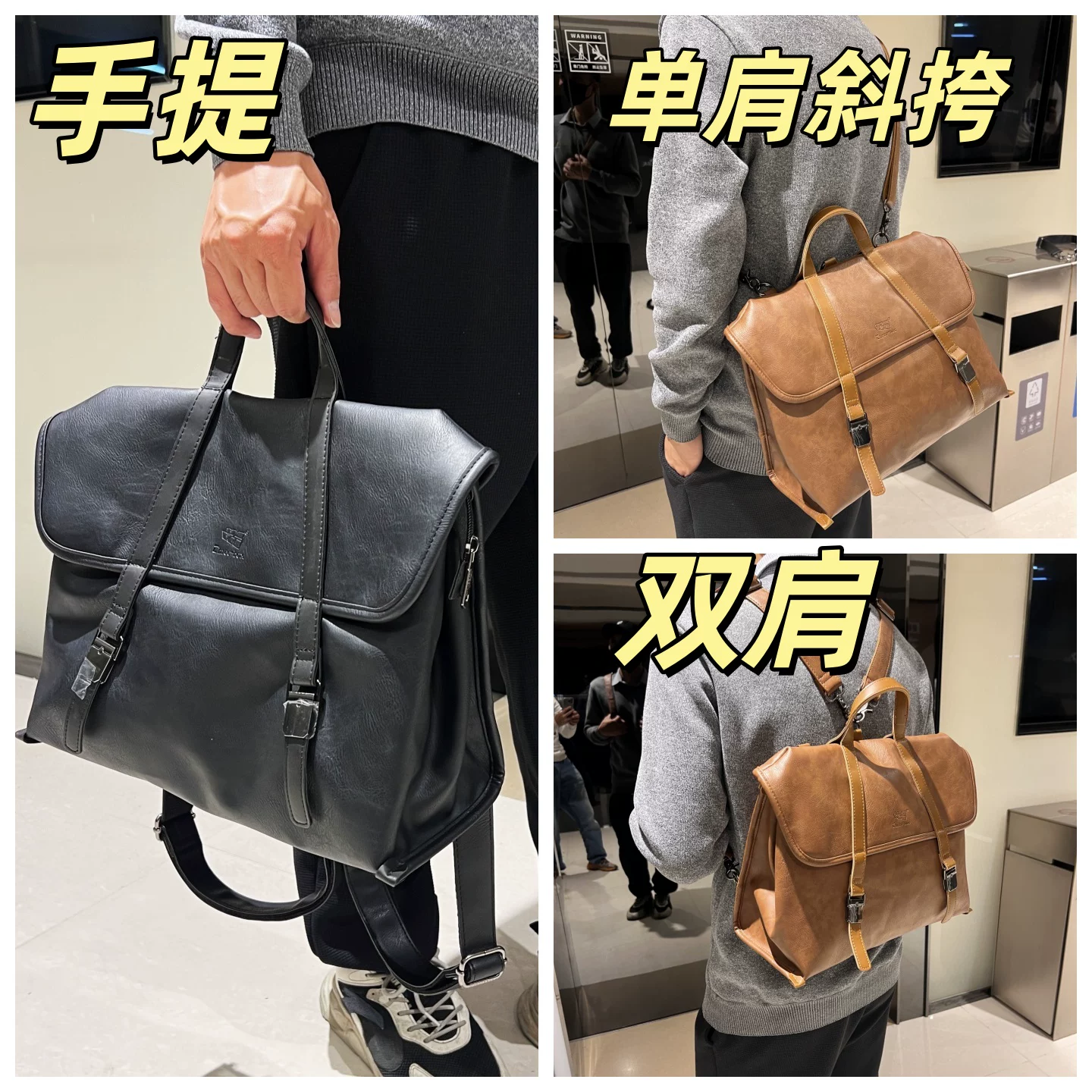 Túi xách nam giả da đa chức năng phong cách Âu Mỹ, ba lô sức chứa lớn, túi đeo vai nam đi làm công sở, túi đeo chéo cho nữ