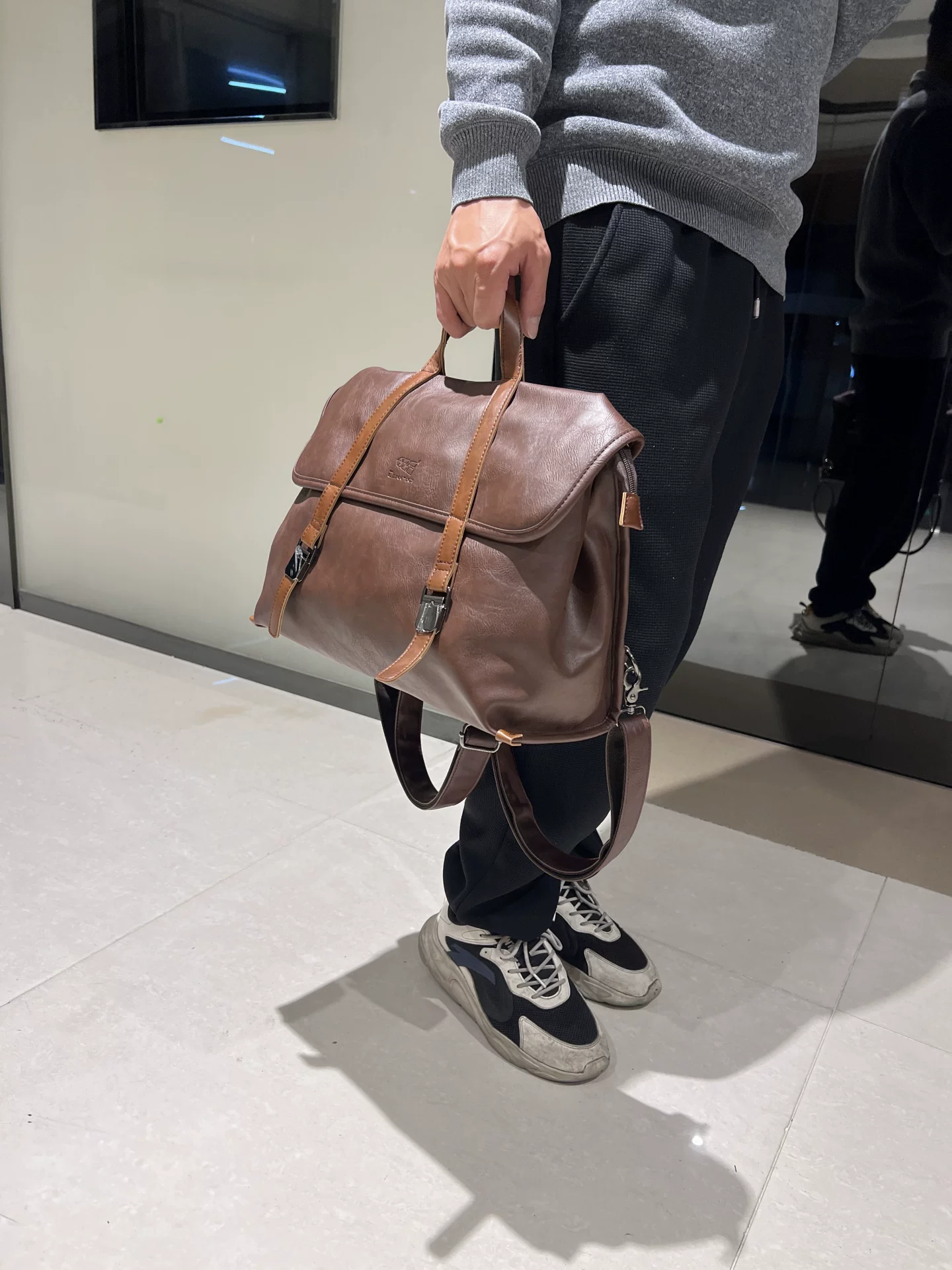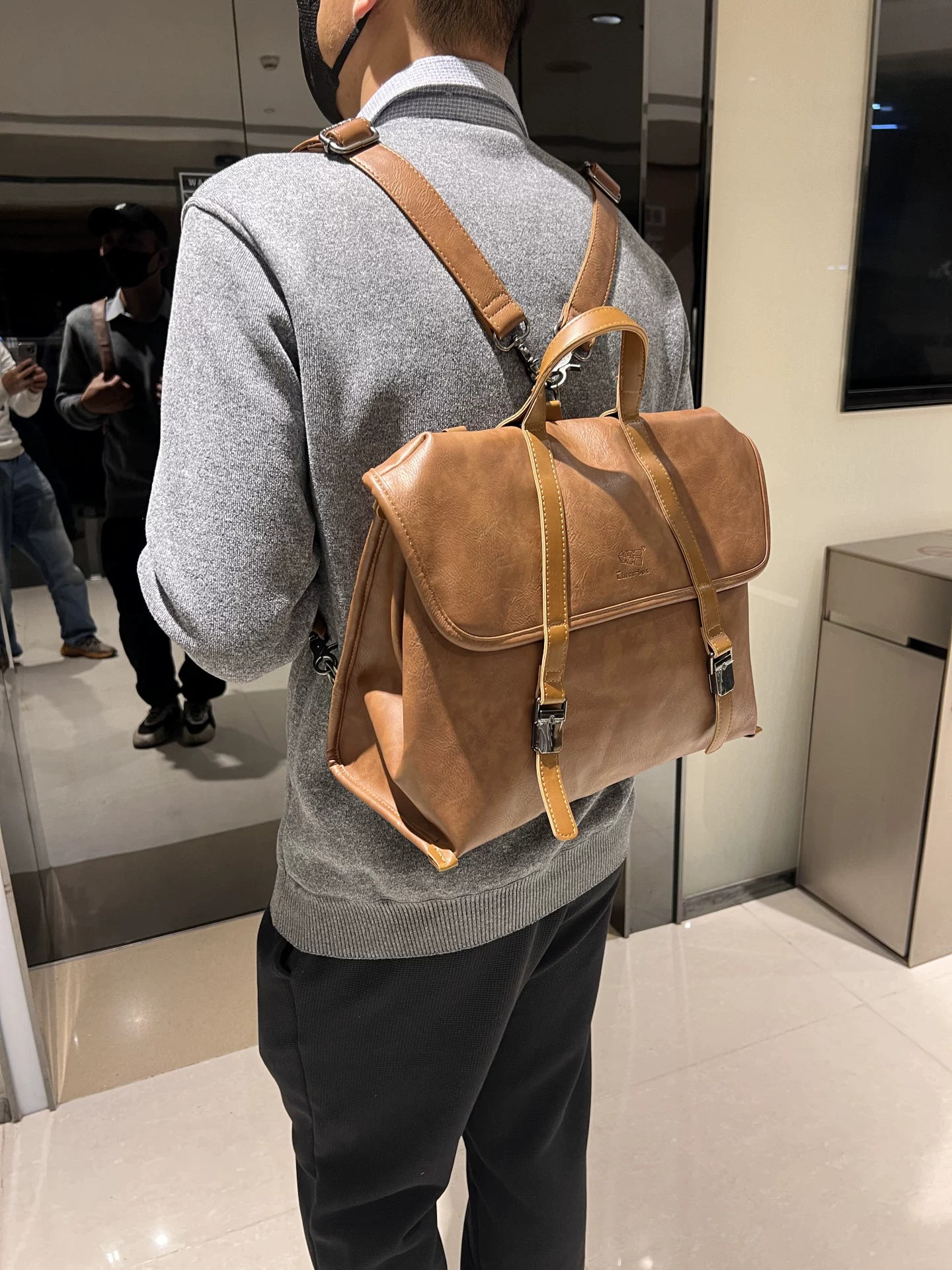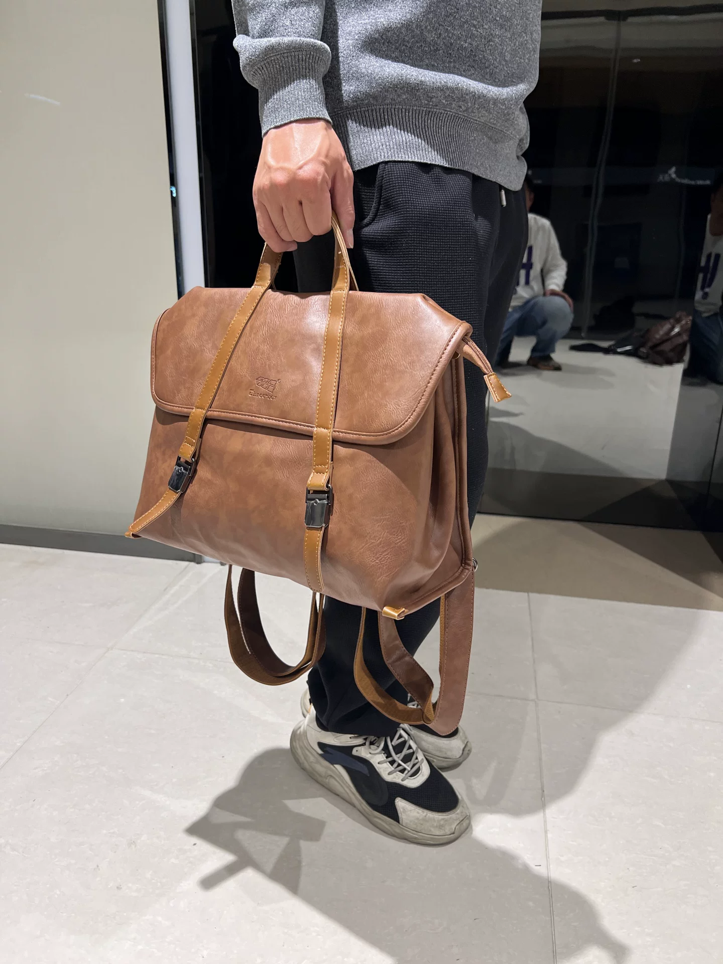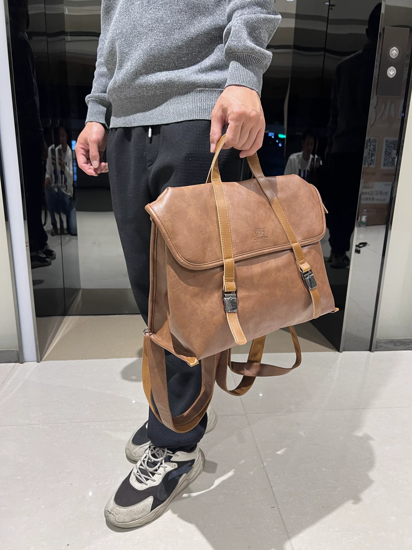 - Túi xách nam giả da đa chức năng phong cách Âu Mỹ, ba lô sức chứa lớn, túi đeo vai nam đi làm công sở, túi đeo chéo cho nữ