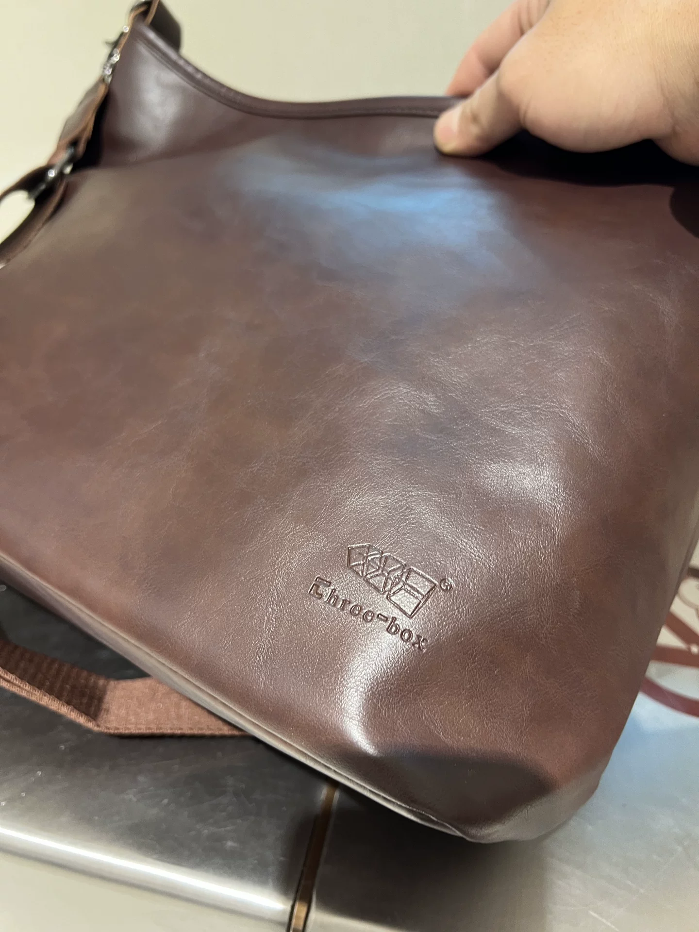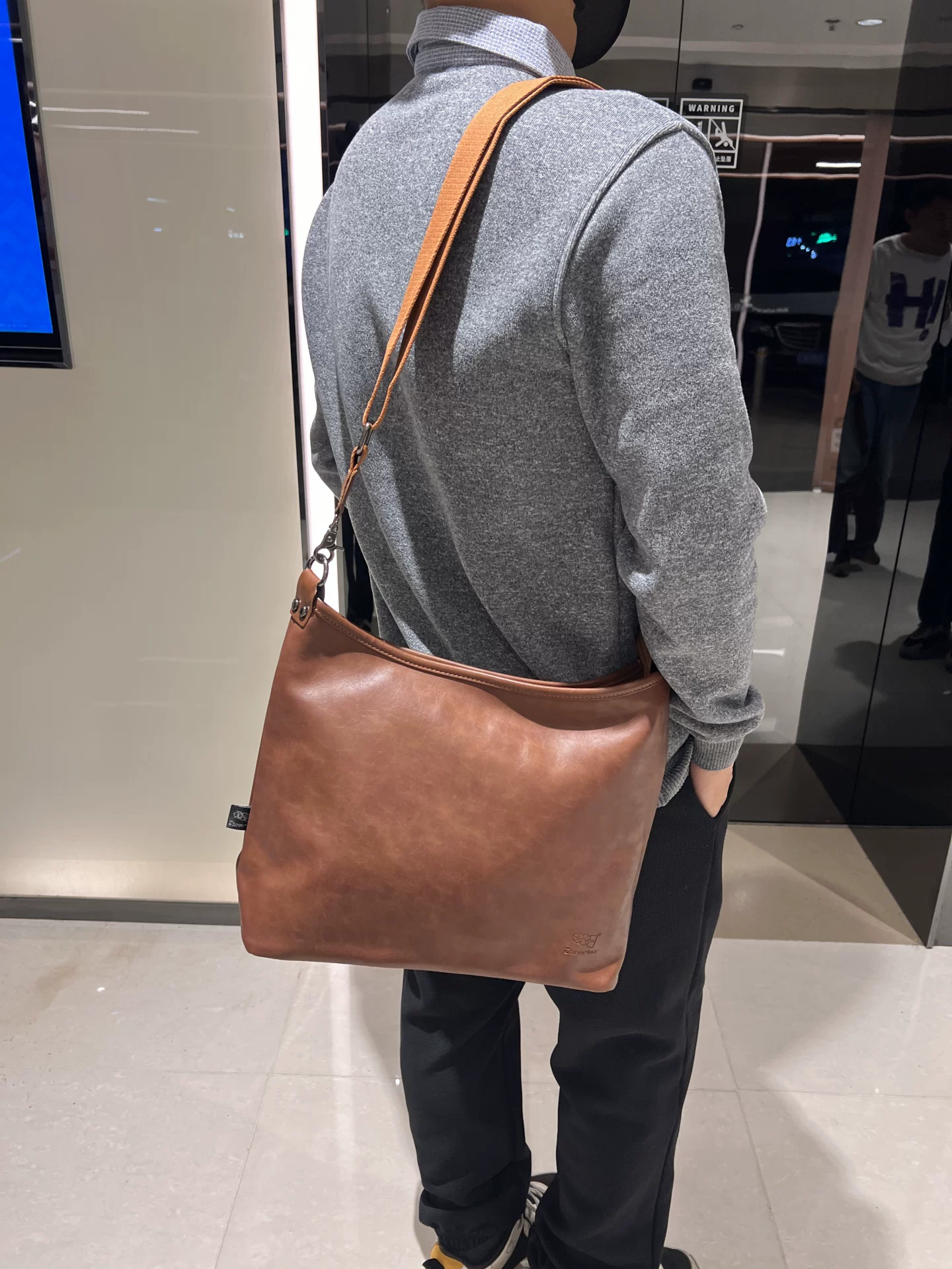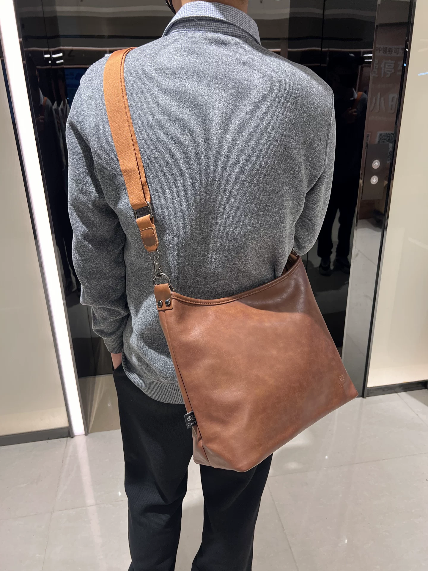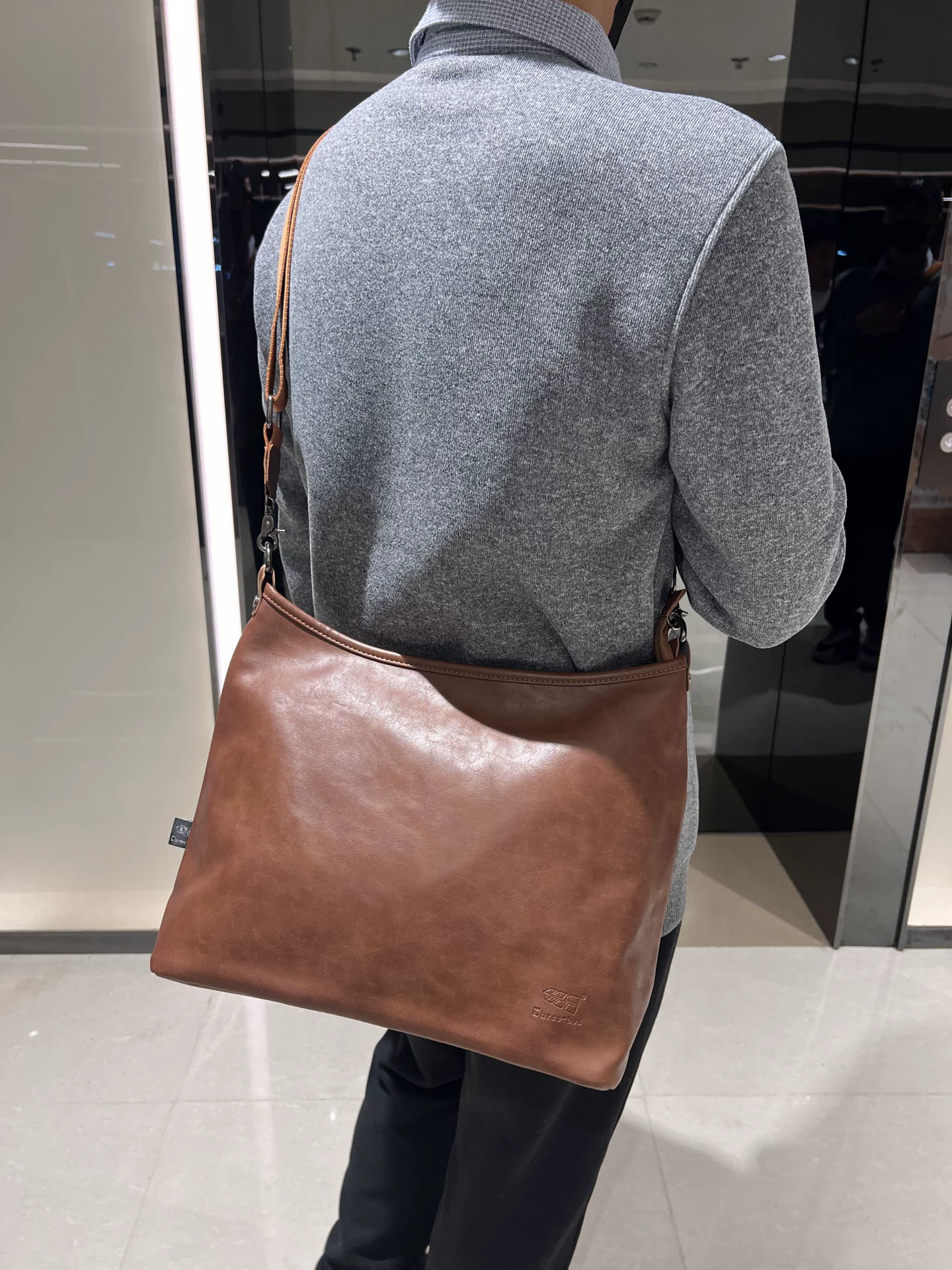 - Túi xách nam mới 2025, túi tote da mềm đi làm, túi đeo chéo nam cỡ lớn, ba lô công sở nam phong cách Nhật Bản