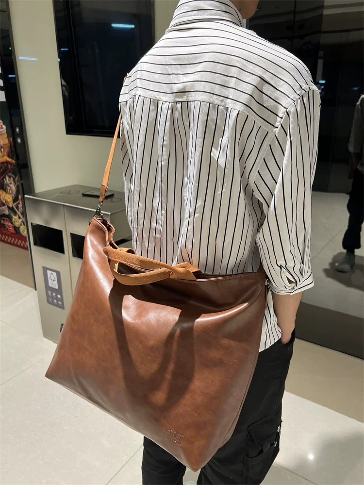 Túi xách nam Nhật Bản và Hàn Quốc, túi đeo chéo da mềm, túi hành lý thời trang, túi lớn đi làm, đi du lịch dành cho nam, túi đeo vai, ba lô nữ