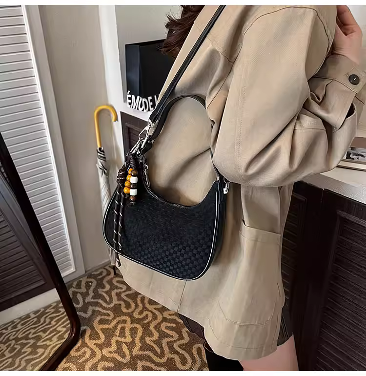 - Túi xách nữ cao cấp mùa thu đông, túi đeo chéo kẻ caro retro mới 2025, túi bánh bao thời thượng.