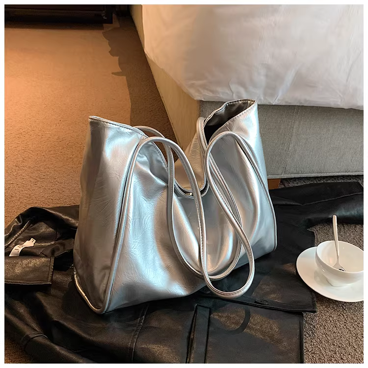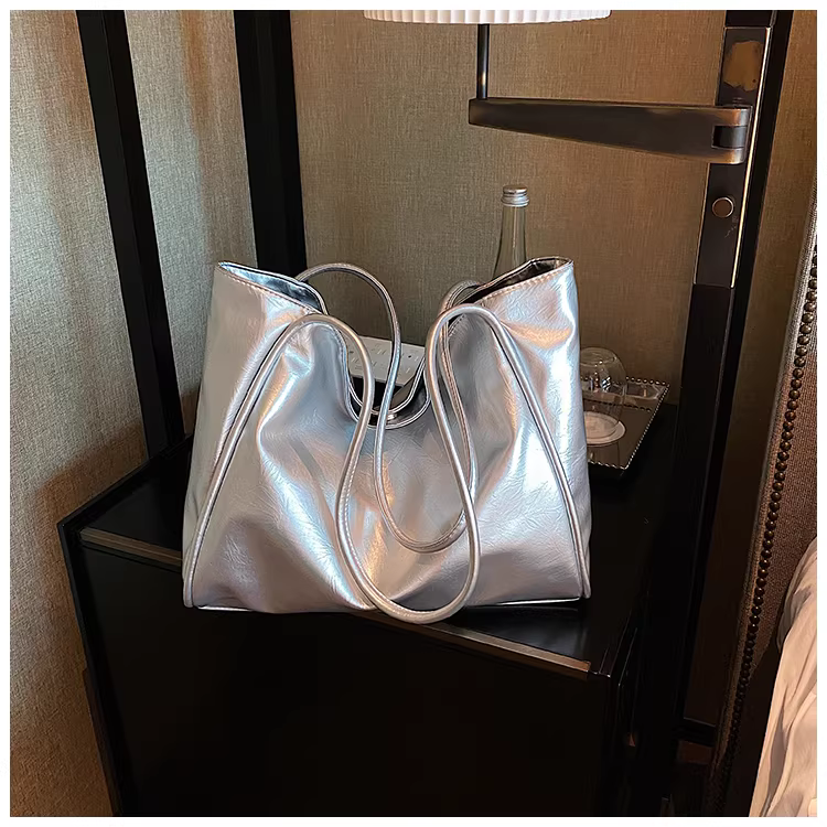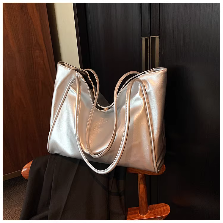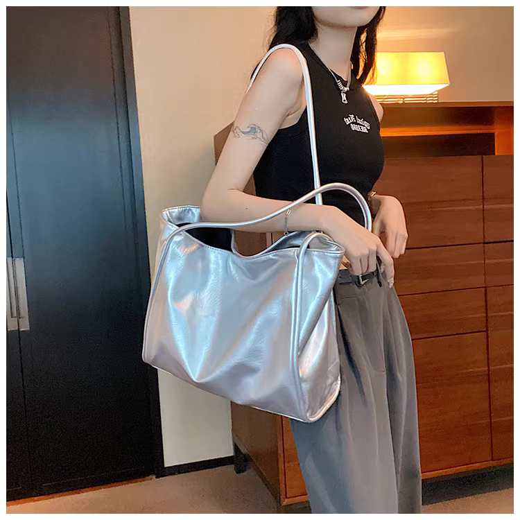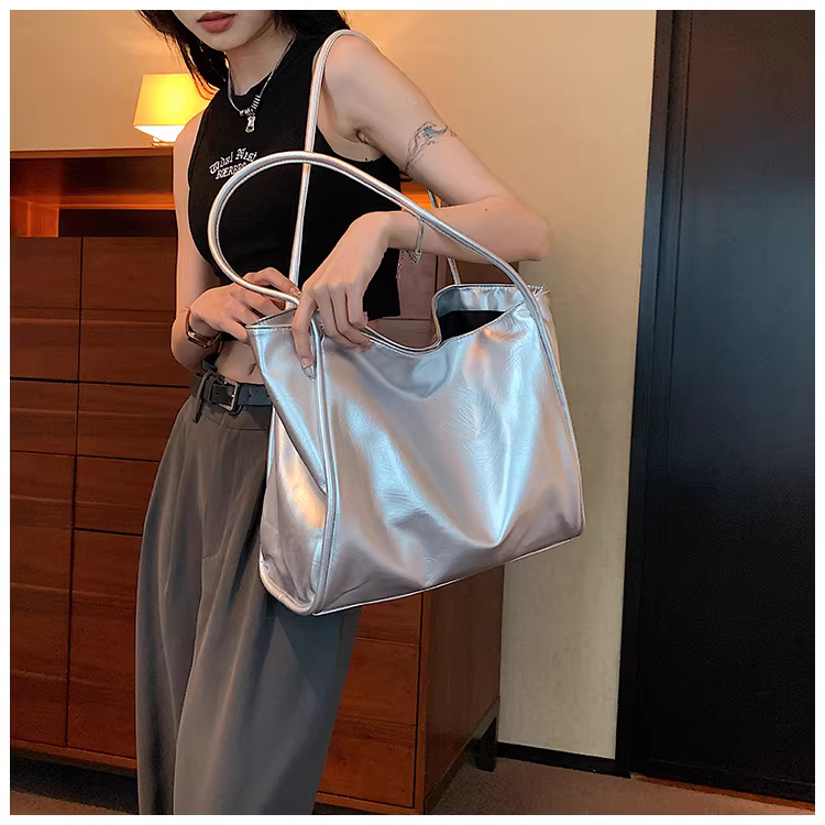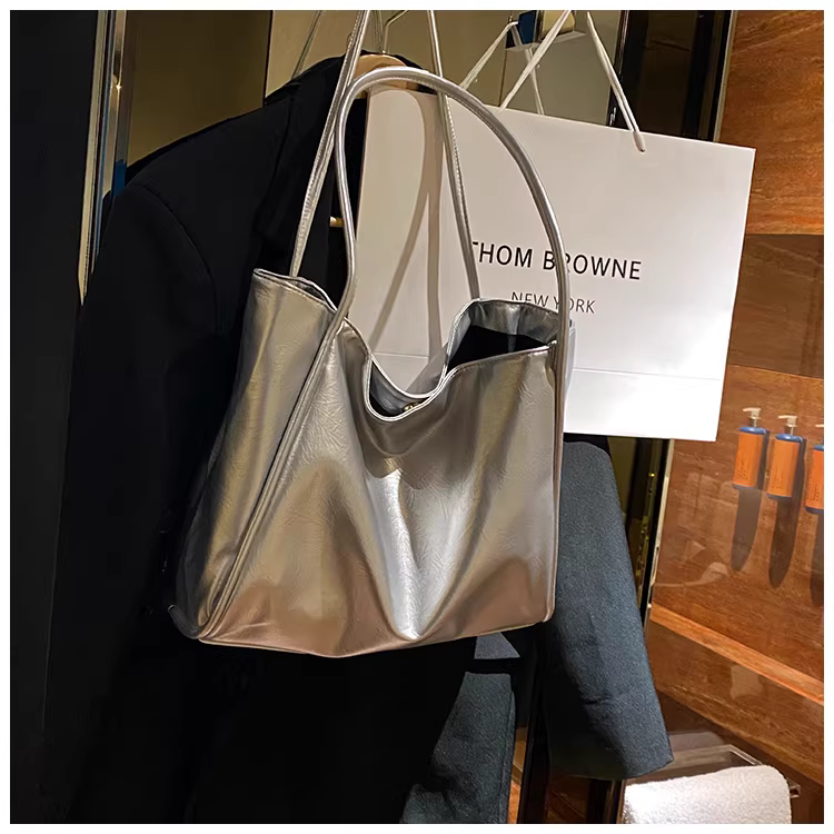 - Túi xách nữ cỡ lớn 2025 mẫu mới màu bạc, túi đeo vai, túi tote đi học, đi làm