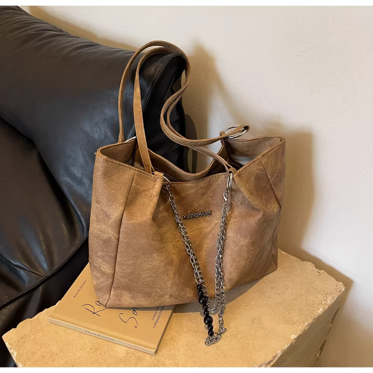 - Túi xách nữ cỡ lớn kiểu mới 2025, túi đeo vai dành cho sinh viên, chất liệu có vân, túi tote đi làm nữ 2023