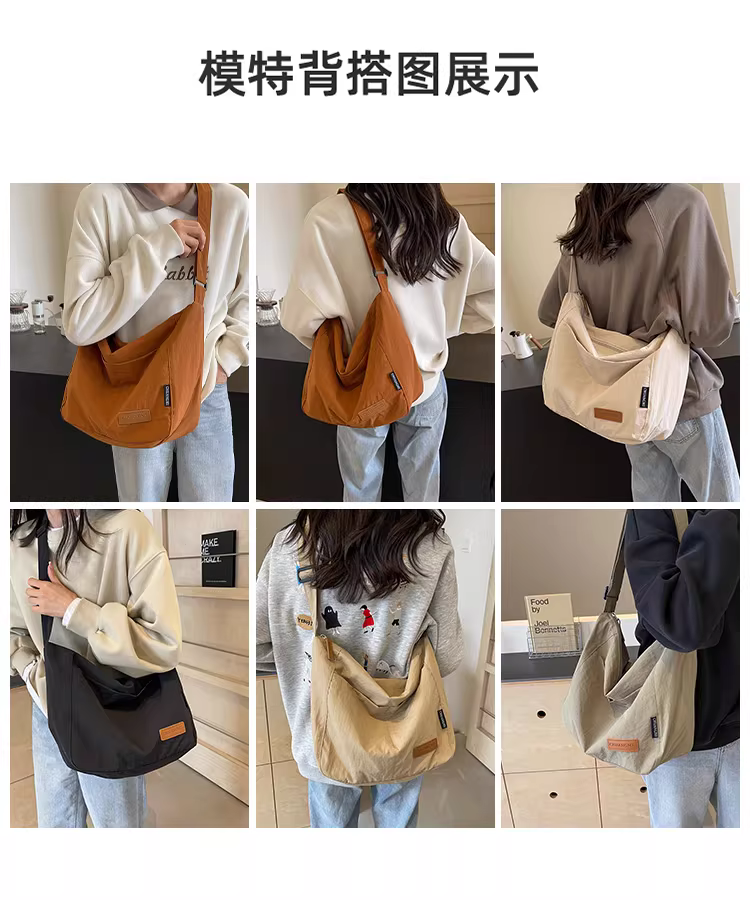 - Túi xách nữ cỡ lớn, kiểu mới thu đông 2025, chất liệu canvas đeo vai/chéo, túi đi làm, túi tote đa năng, phong cách giản dị.