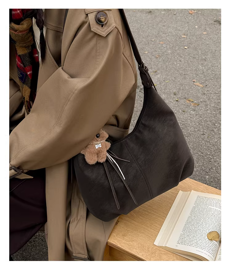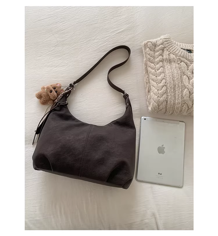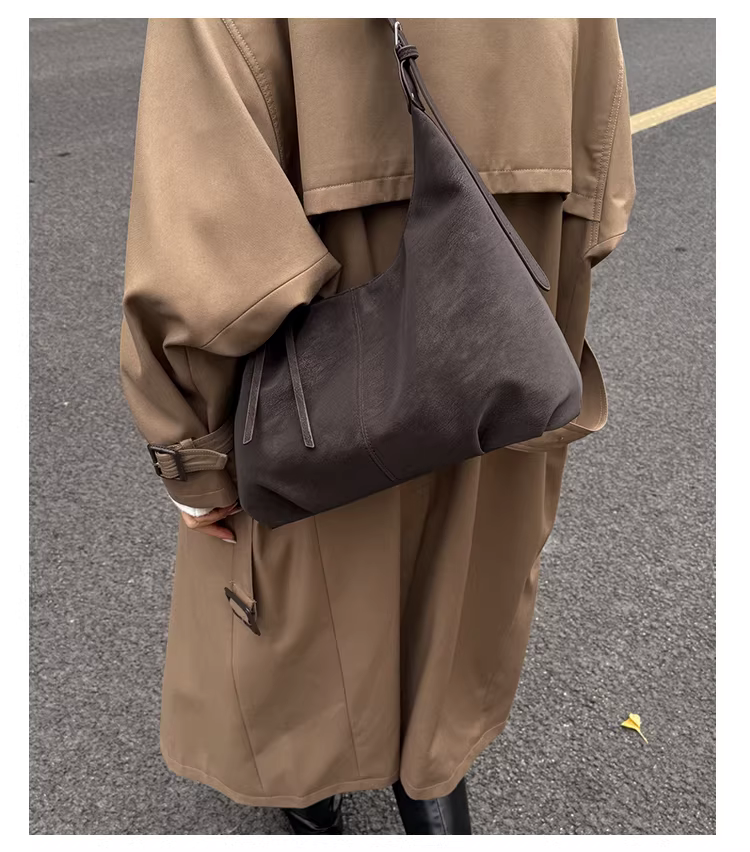 - Túi xách nữ cỡ lớn, mẫu mới thu đông 2025, thiết kế cá tính, kiểu xếp ly, đeo chéo, túi đi làm dáng bánh bao.