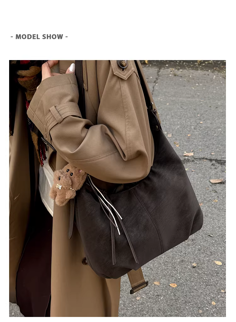 Túi xách nữ cỡ lớn, mẫu mới thu đông 2025, thiết kế cá tính, kiểu xếp ly, đeo chéo, túi đi làm dáng bánh bao.