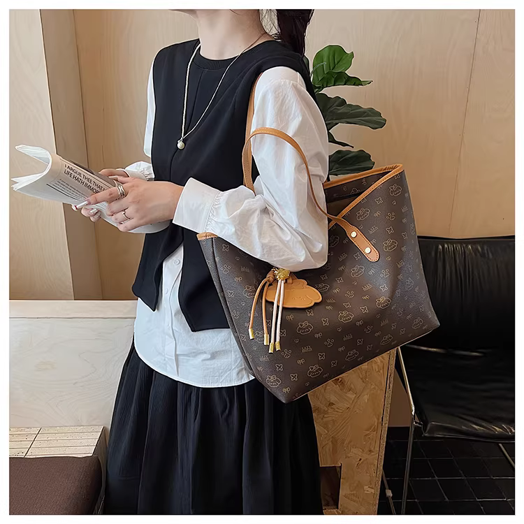 - Túi xách nữ dung tích lớn, đa năng cho mùa hè, mẫu túi đeo vai thường ngày mới năm 2025, hợp thời trang năm nay, túi tote đi làm chất liệu có vân.