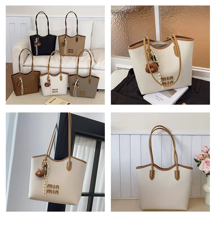 - Túi xách nữ dung tích lớn, đa năng trong mùa thu đông, kiểu dáng mới 2025, túi đeo vai đơn giản và có họa tiết, túi tote đi làm và đi làm hàng ngày