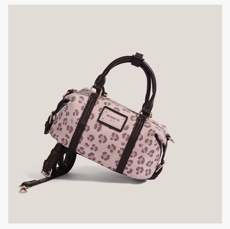 Túi xách nữ họa tiết báo hồng cao cấp, mẫu mới 2025, thời trang, dùng đi làm, đeo vai, đeo chéo, kiểu Boston