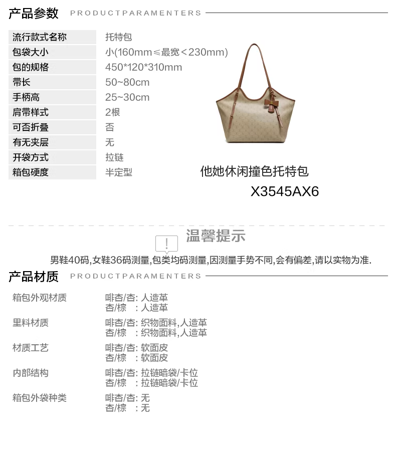 - Túi xách nữ TATA 2026 Mùa xuân mới Túi tote màu sắc giản dị Thời trang đa năng Túi đeo vai X3545AX6