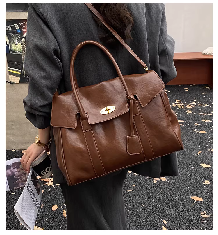 - Túi xách retro cỡ lớn dành cho nữ, đa năng trong mùa thu đông, mẫu túi đeo vai thời trang mới năm 2025, túi tote đi học