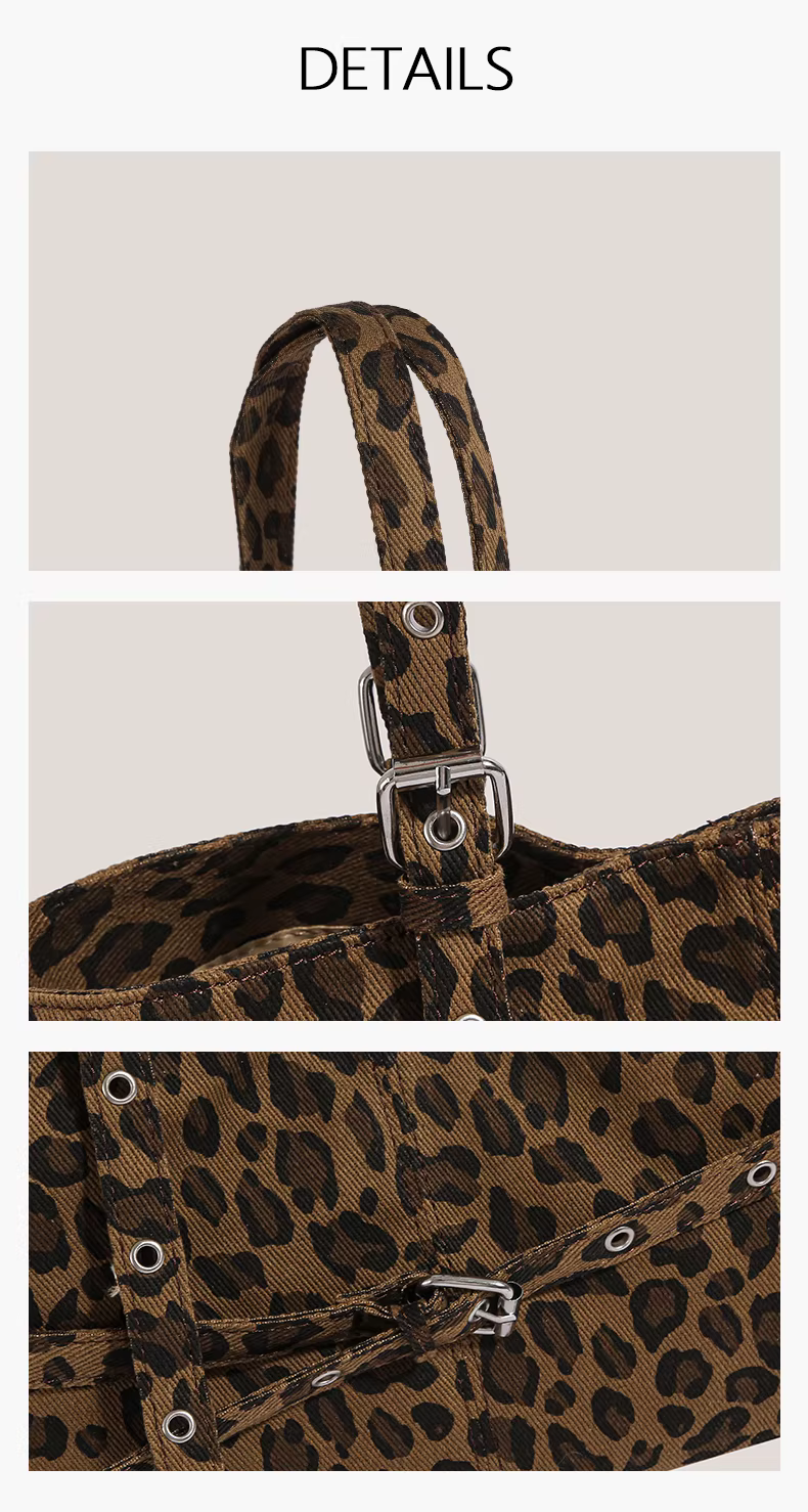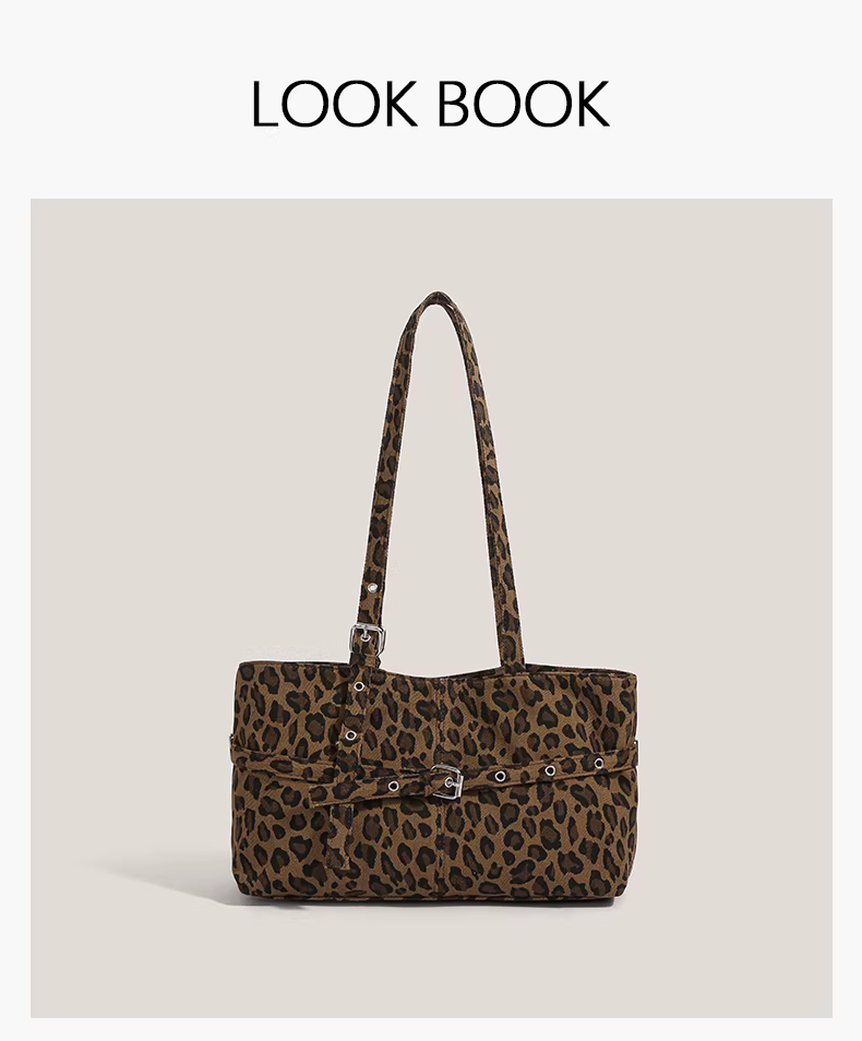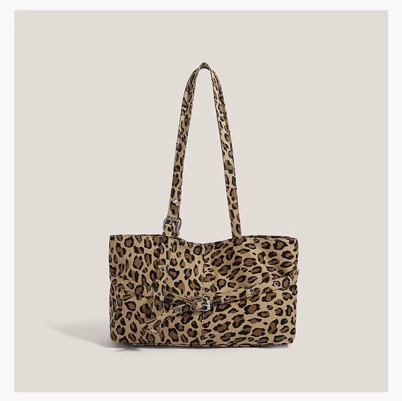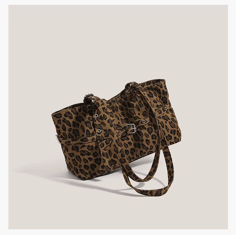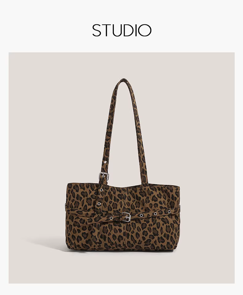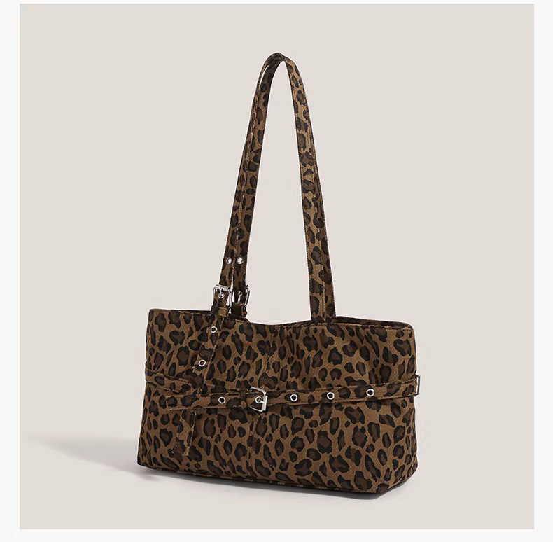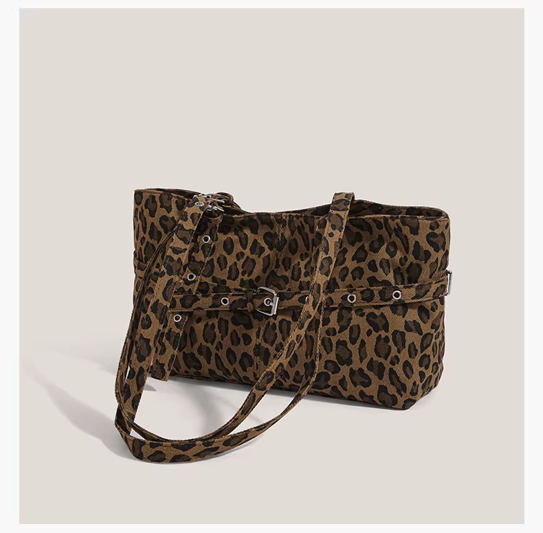 - Túi xách retro Mỹ dành cho nữ 2025, thời trang mới mẻ, họa tiết da báo, túi đeo nách, túi đeo vai độc đáo