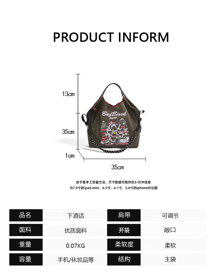 Túi xách thân thiện với môi trường dây xích kiểu Nhật, cùng kiểu dáng với Gao Yuanyuan, túi vải nylon thêu, túi mua sắm, túi đeo chéo nữ.