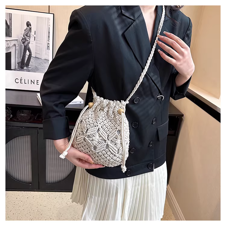 - Túi xách thiết kế độc đáo dành cho nữ, dung tích lớn, mẫu mới thời thượng thu đông 2025, túi đeo chéo cao cấp, túi bucket dệt nổi tiếng.