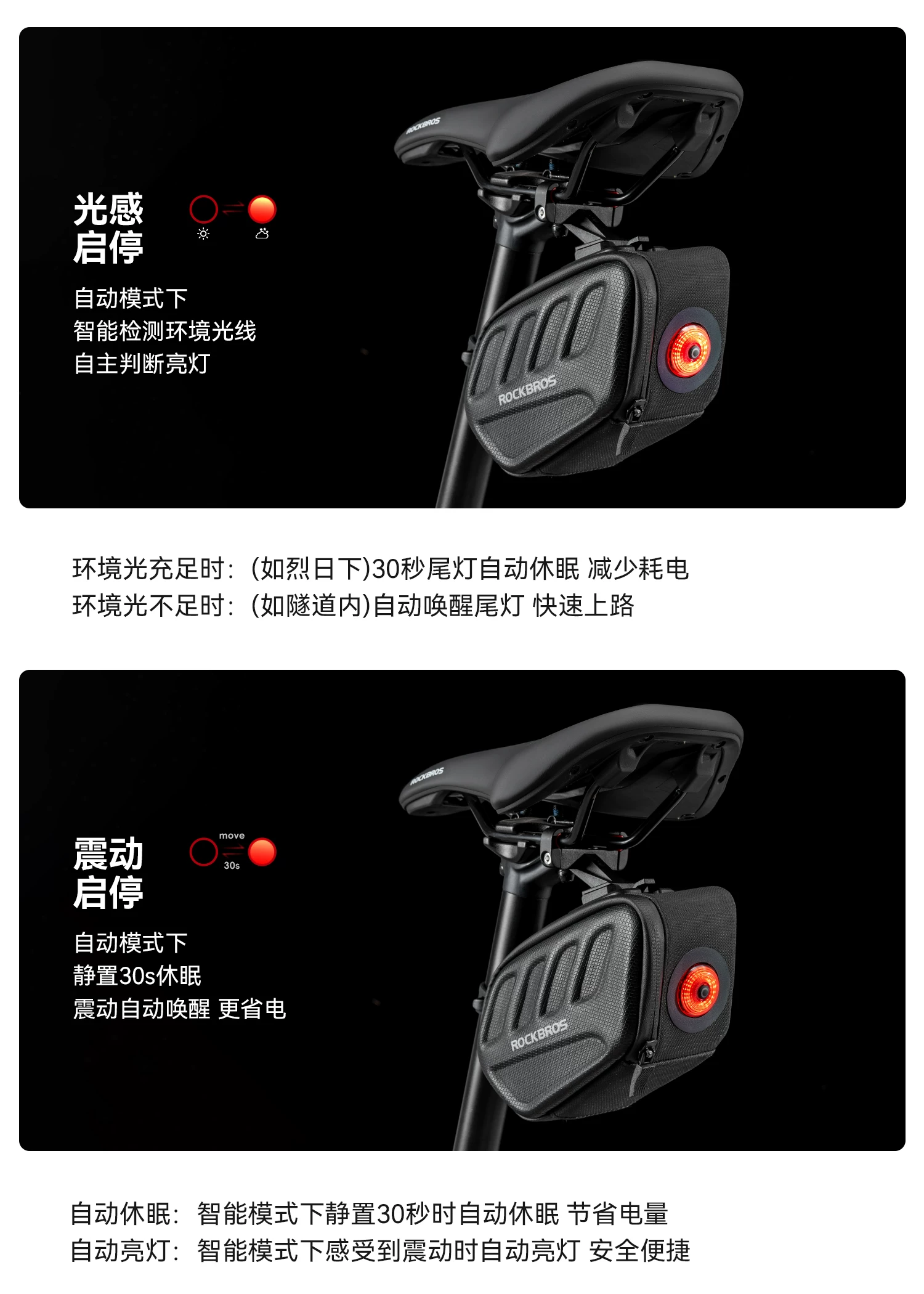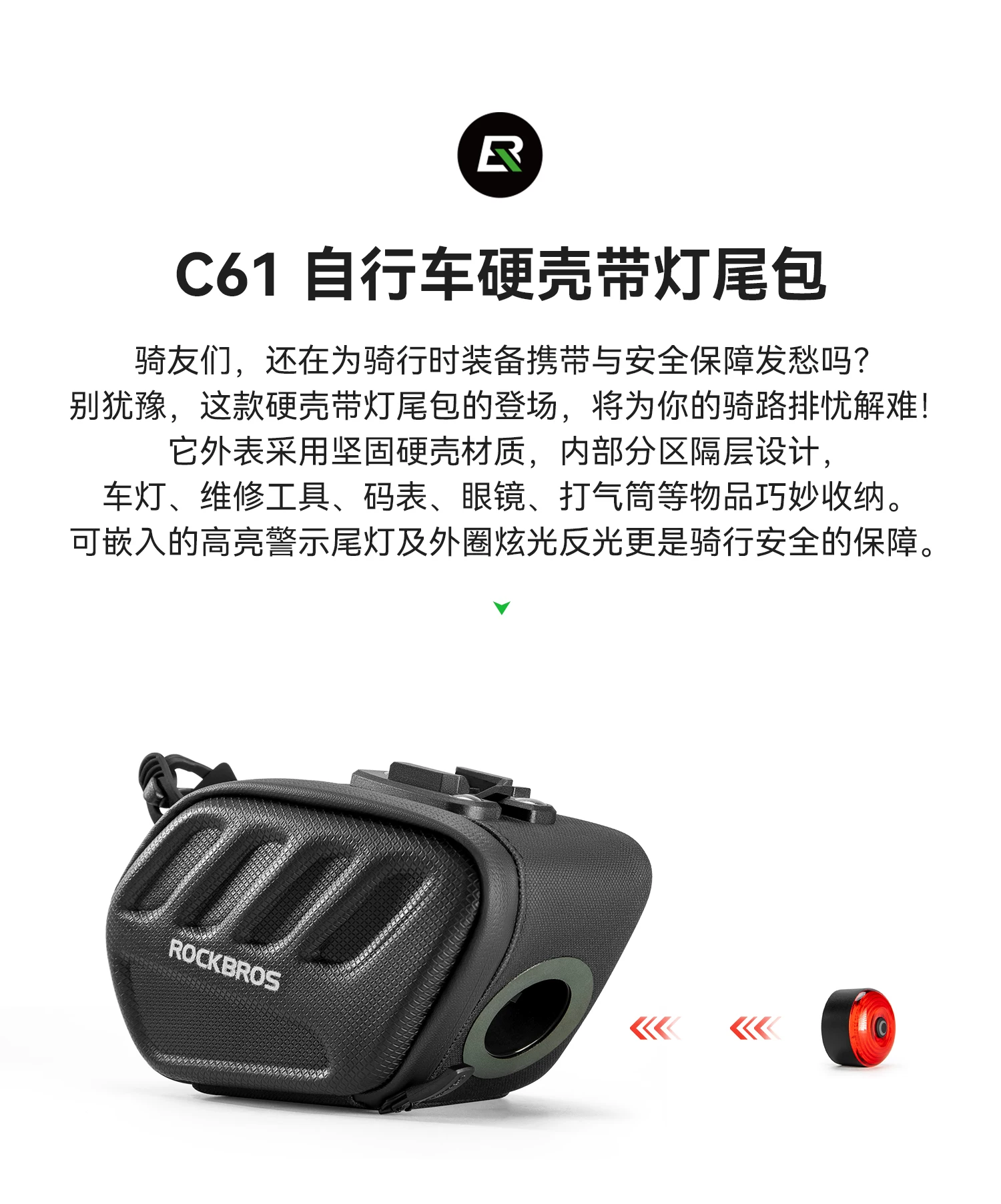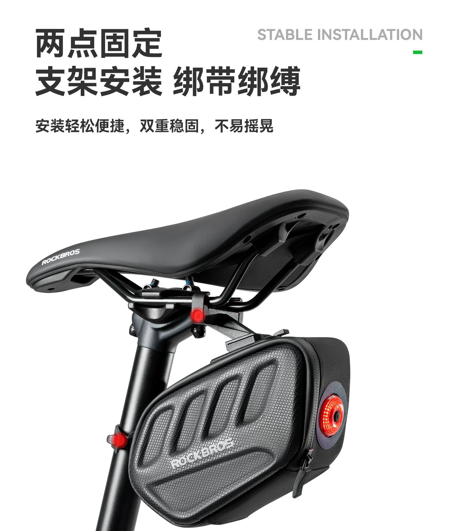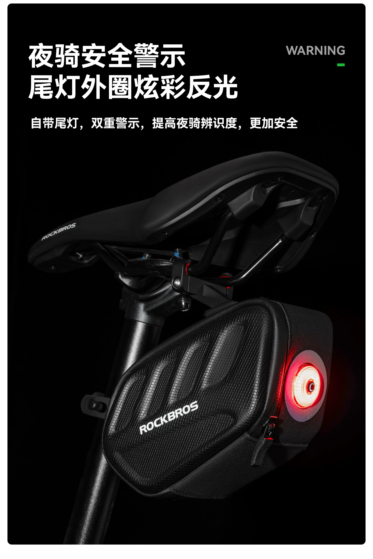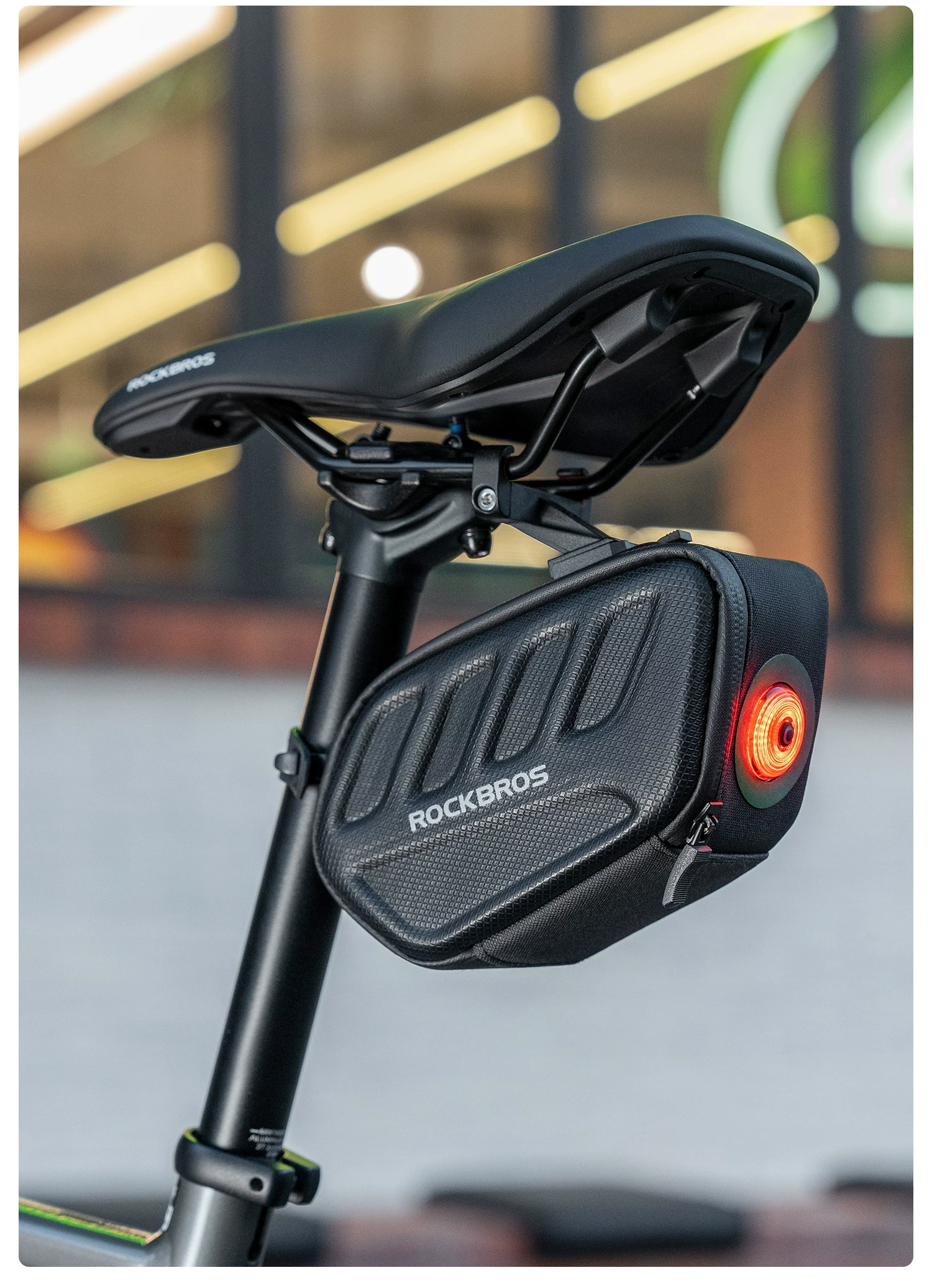 Túi xe đạp Rock Brothers vỏ cứng, có đèn, dành cho xe đường trường, xe leo núi và xe gấp, túi yên xe phía sau