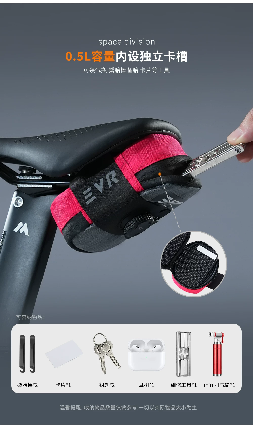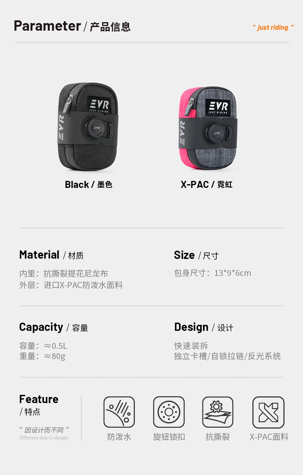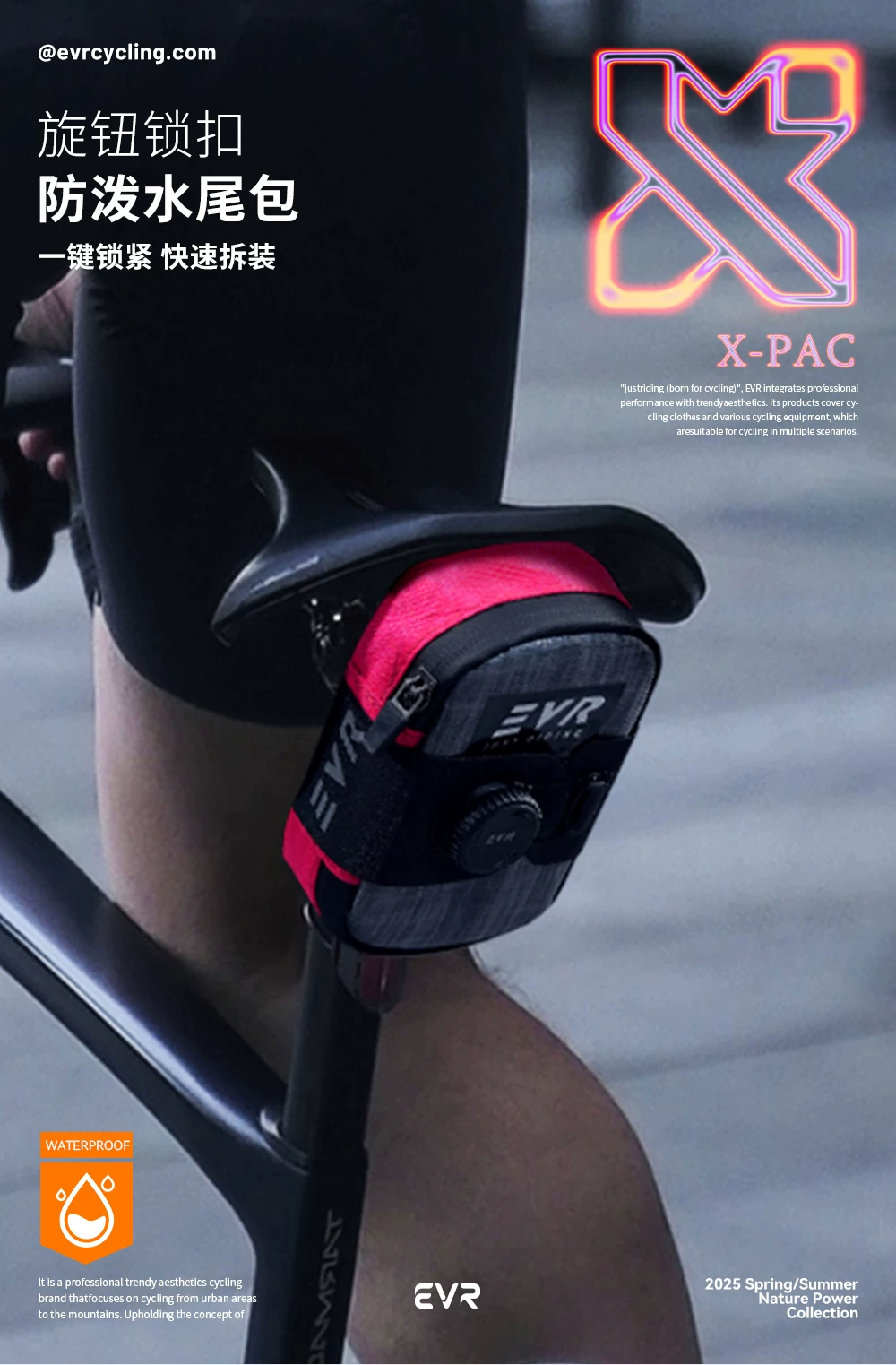 - Túi yên xe đạp EVR khóa núm, túi yên sau chống thấm nước, thiết bị đạp xe đường trường X-PAC