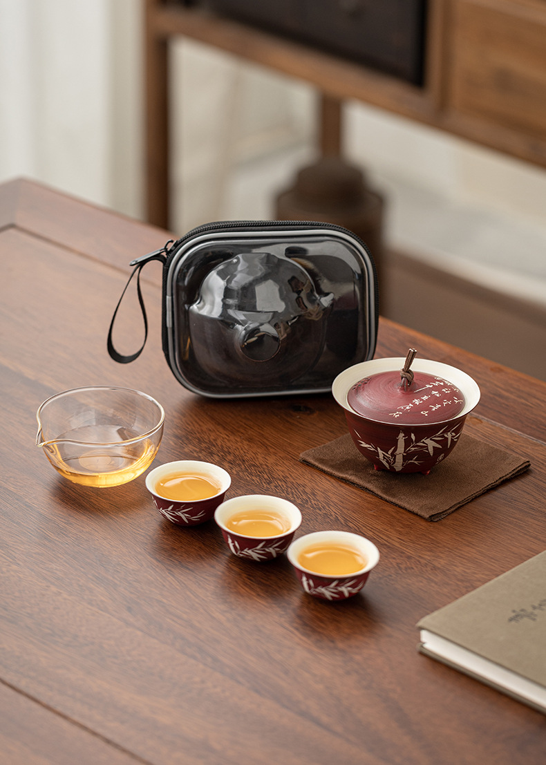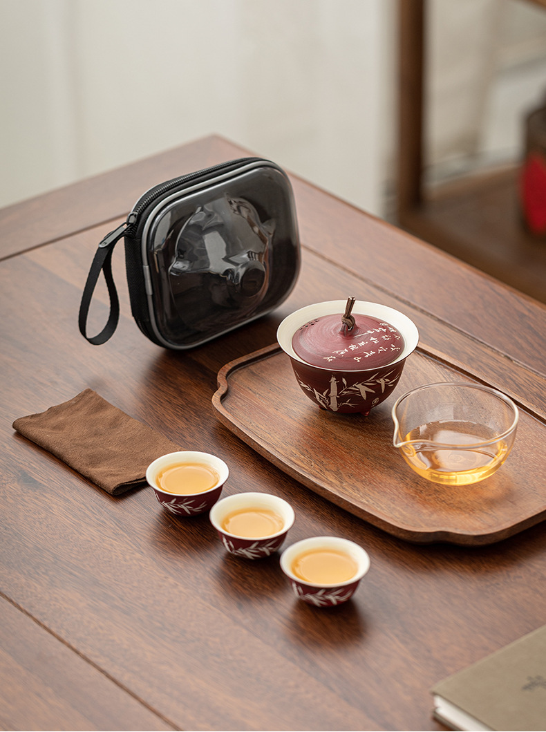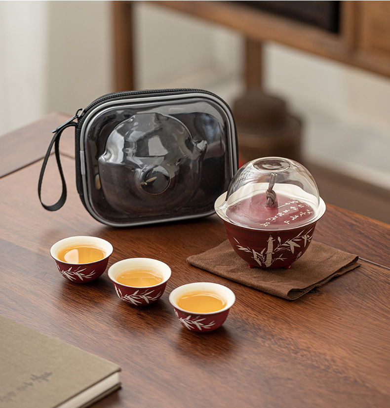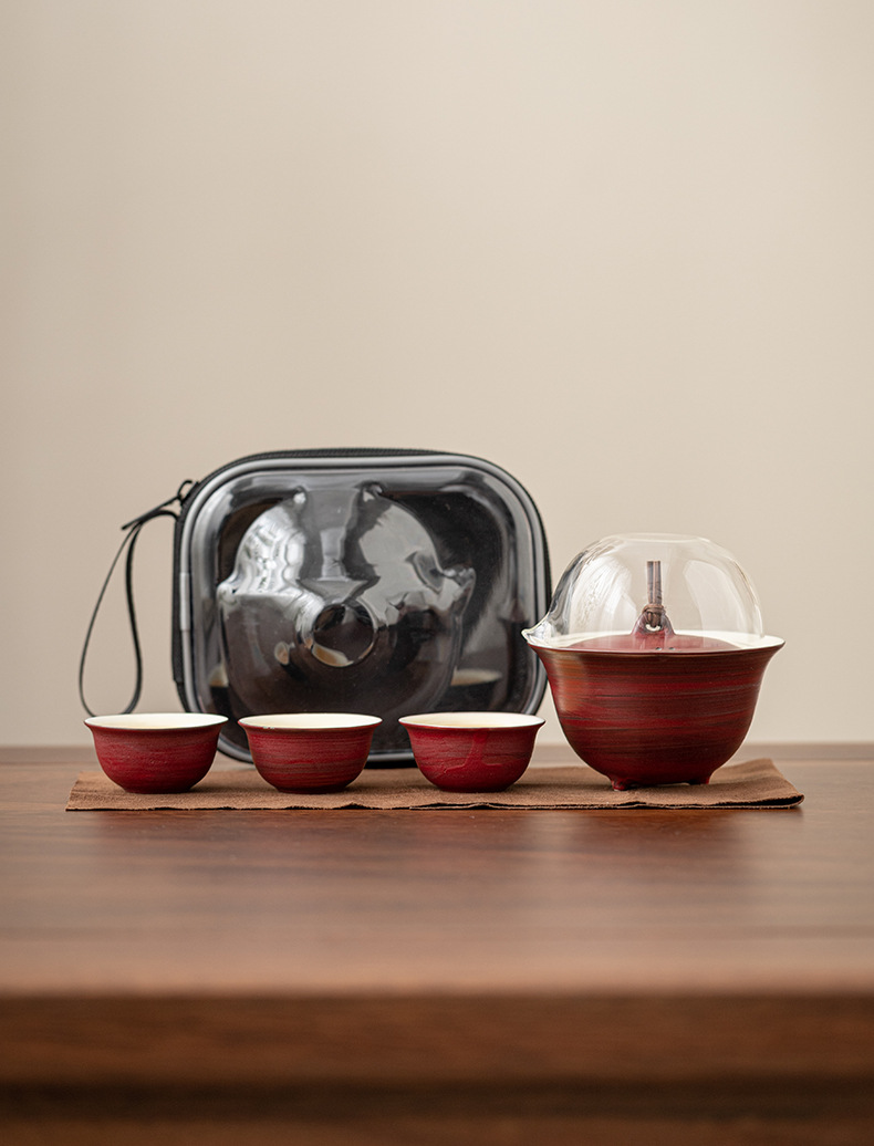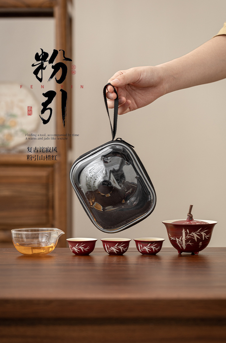 - Tuo Jifeng Fan Yin Hawthorn Red Bộ trà du lịch cắm trại ngoài trời di động một bình ba cốc cốc nhanh cốc uống trà đơn giản