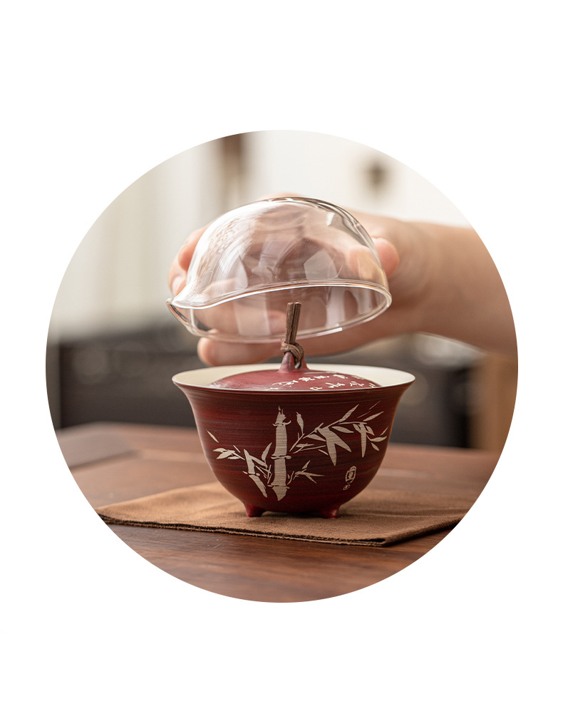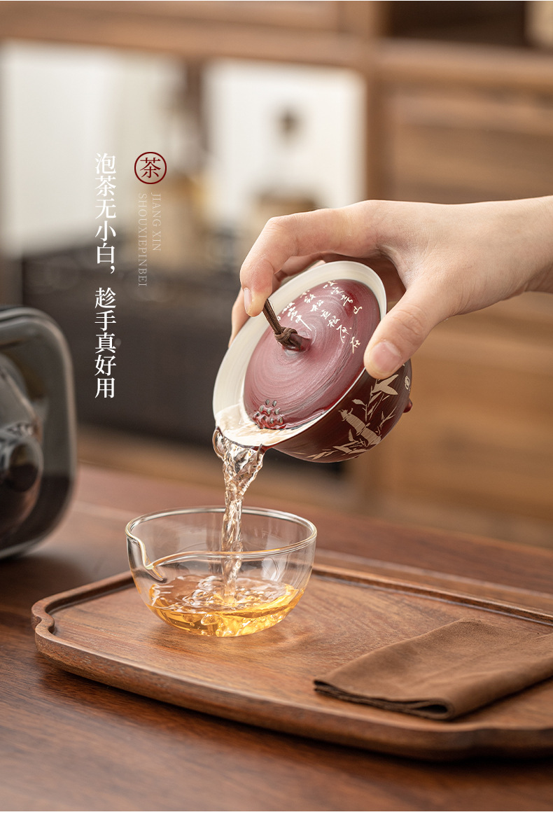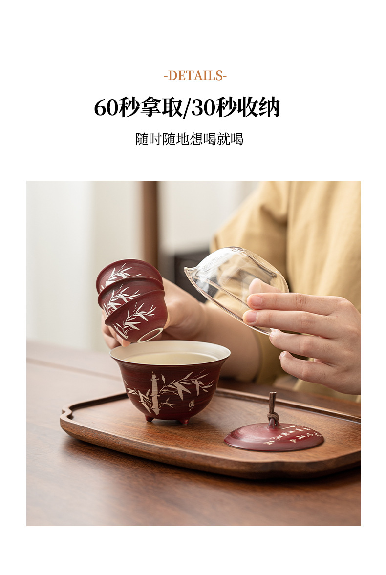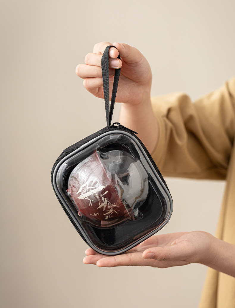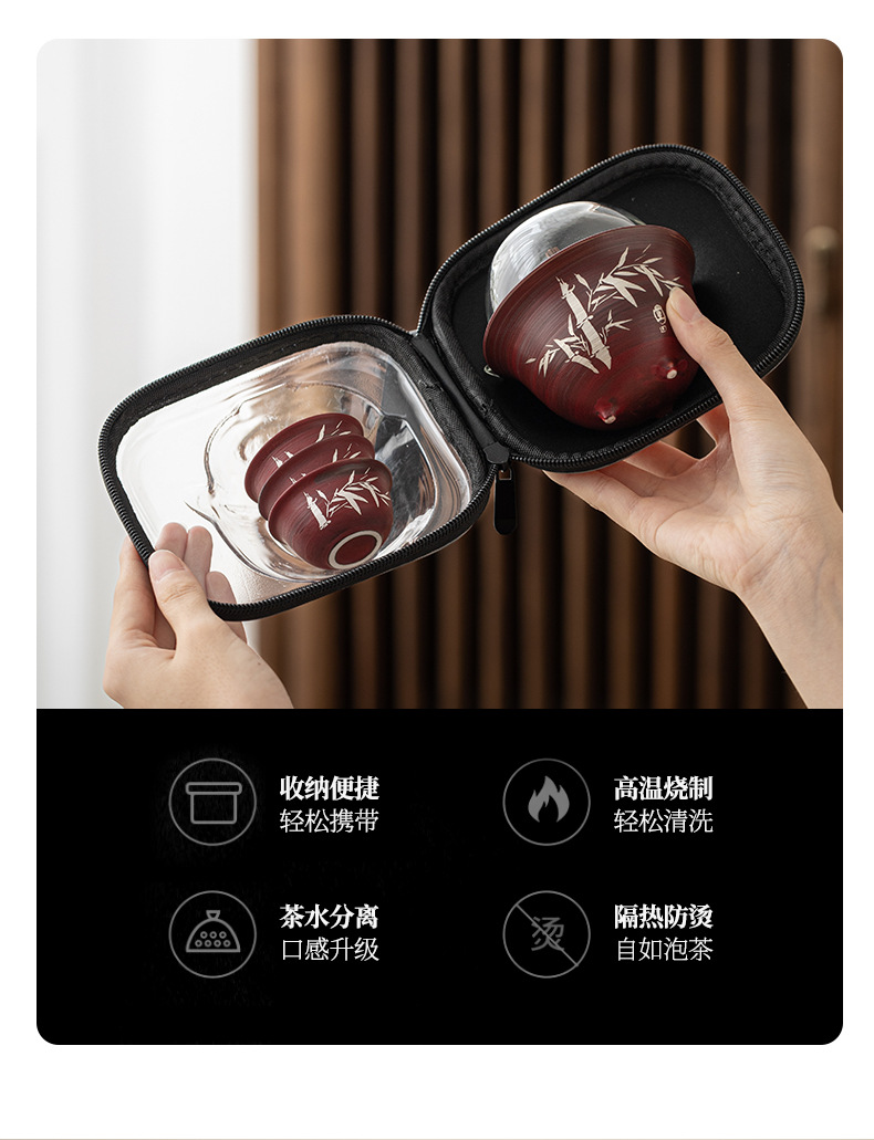 - Tuo Jifeng Fan Yin Hawthorn Red Bộ trà du lịch cắm trại ngoài trời di động một bình ba cốc cốc nhanh cốc uống trà đơn giản