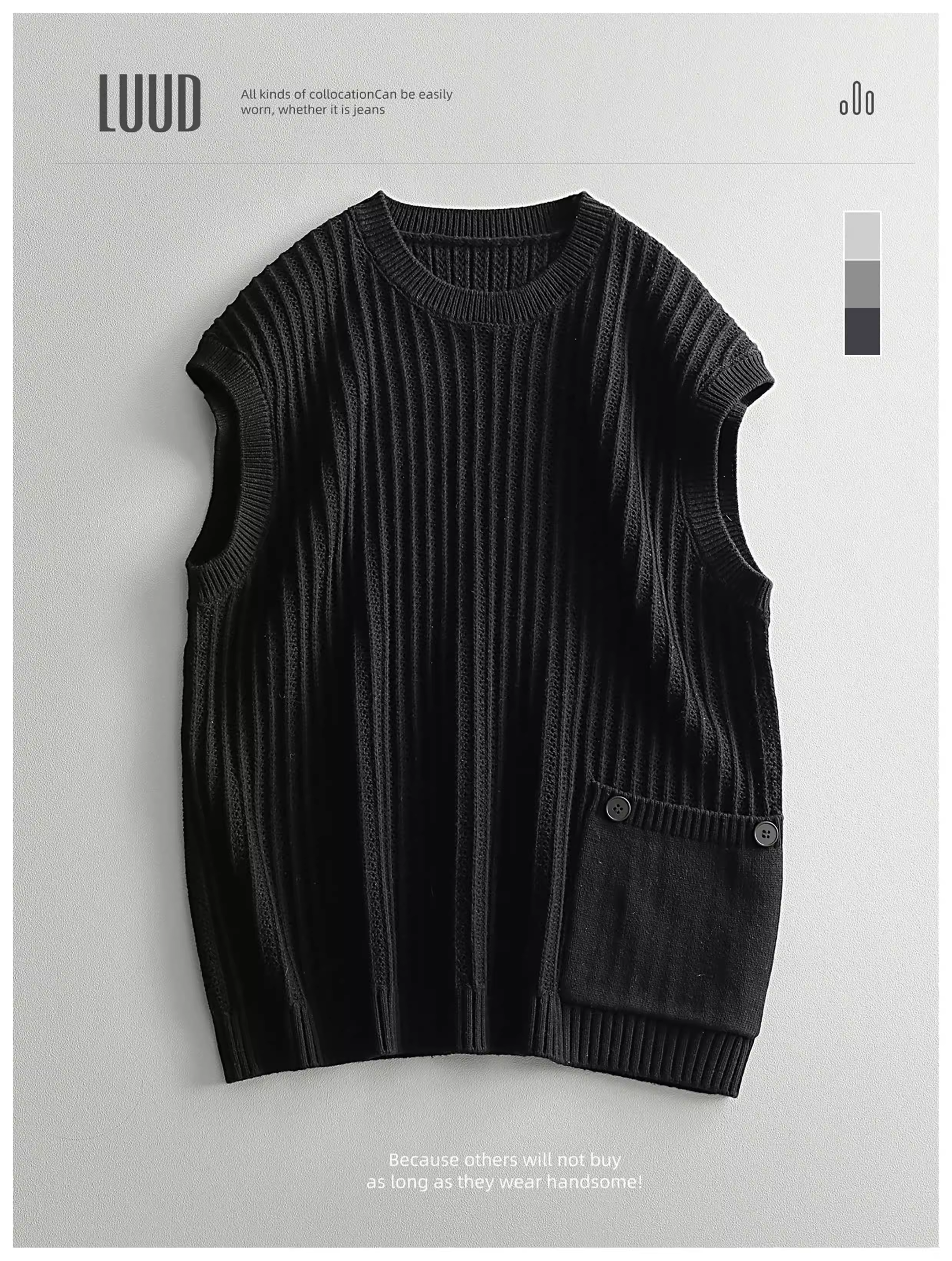Ưu đãi đặc biệt: Áo gile dệt kim sọc jacquard không tay, áo gile len không tay trẻ trung, áo gile len nhiều lớp kiểu công sở dành cho nam.