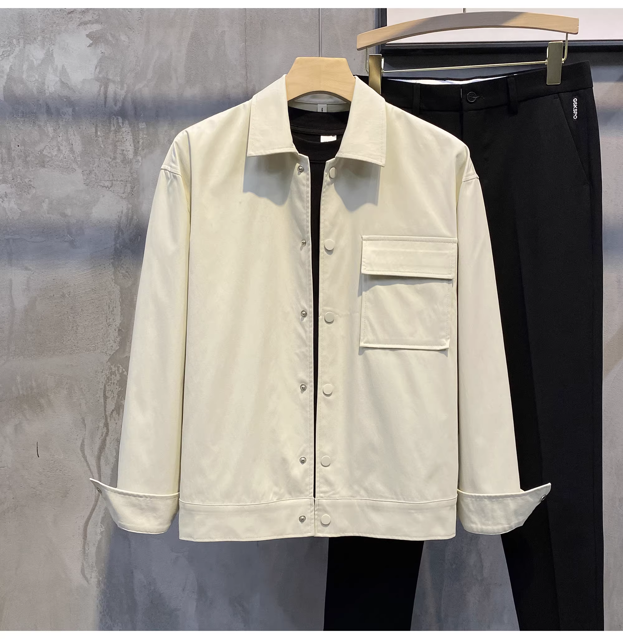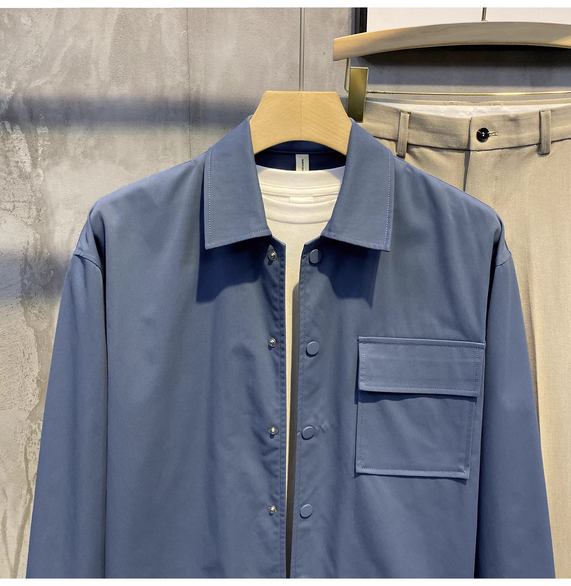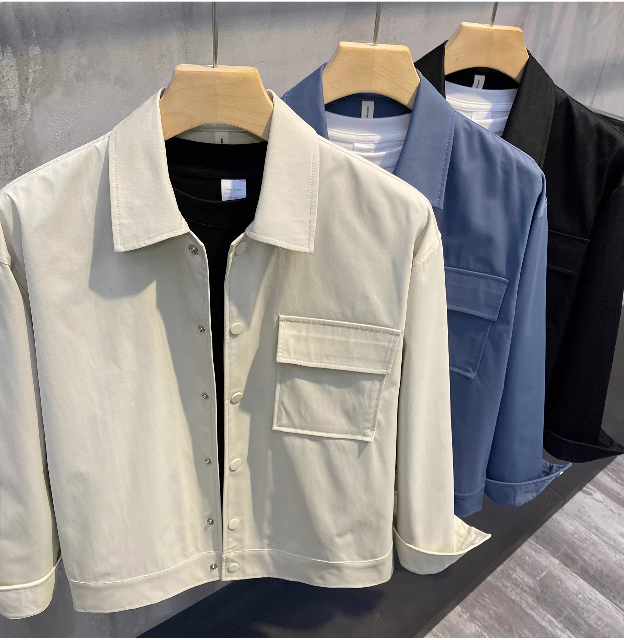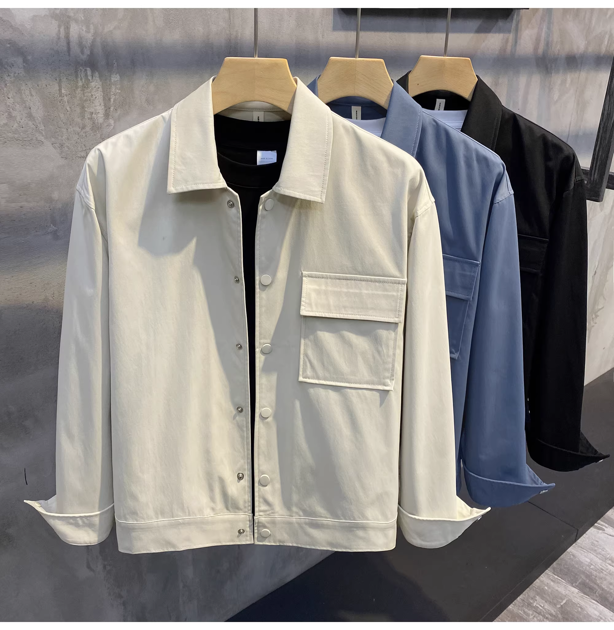 - Ưu đãi đặc biệt: Áo khoác sơ mi màu trơn kiểu Dongdaemun cổ điển phong cách Hàn Quốc có cổ bẻ, áo khoác nam thanh lịch và tinh tế có khuy giấu.