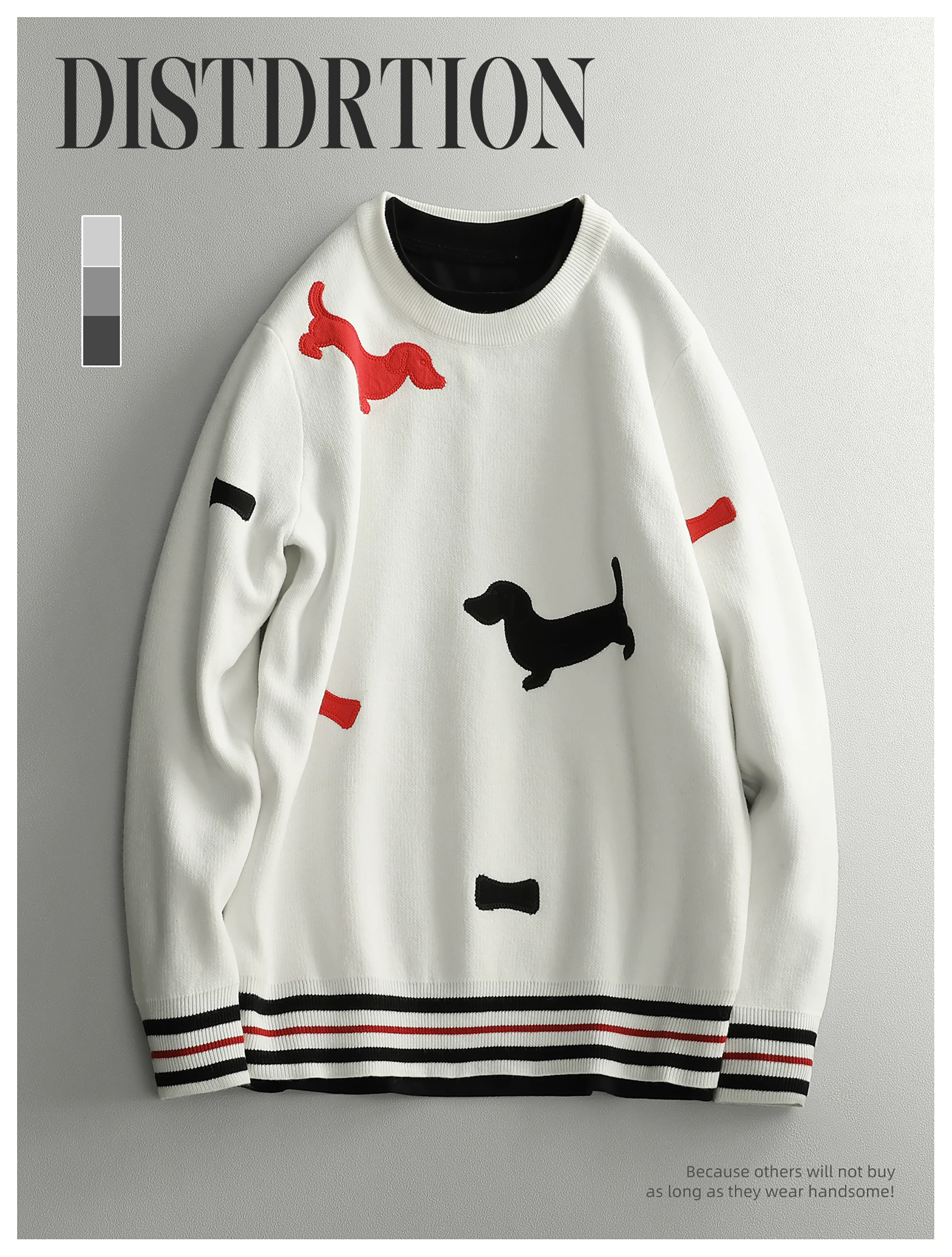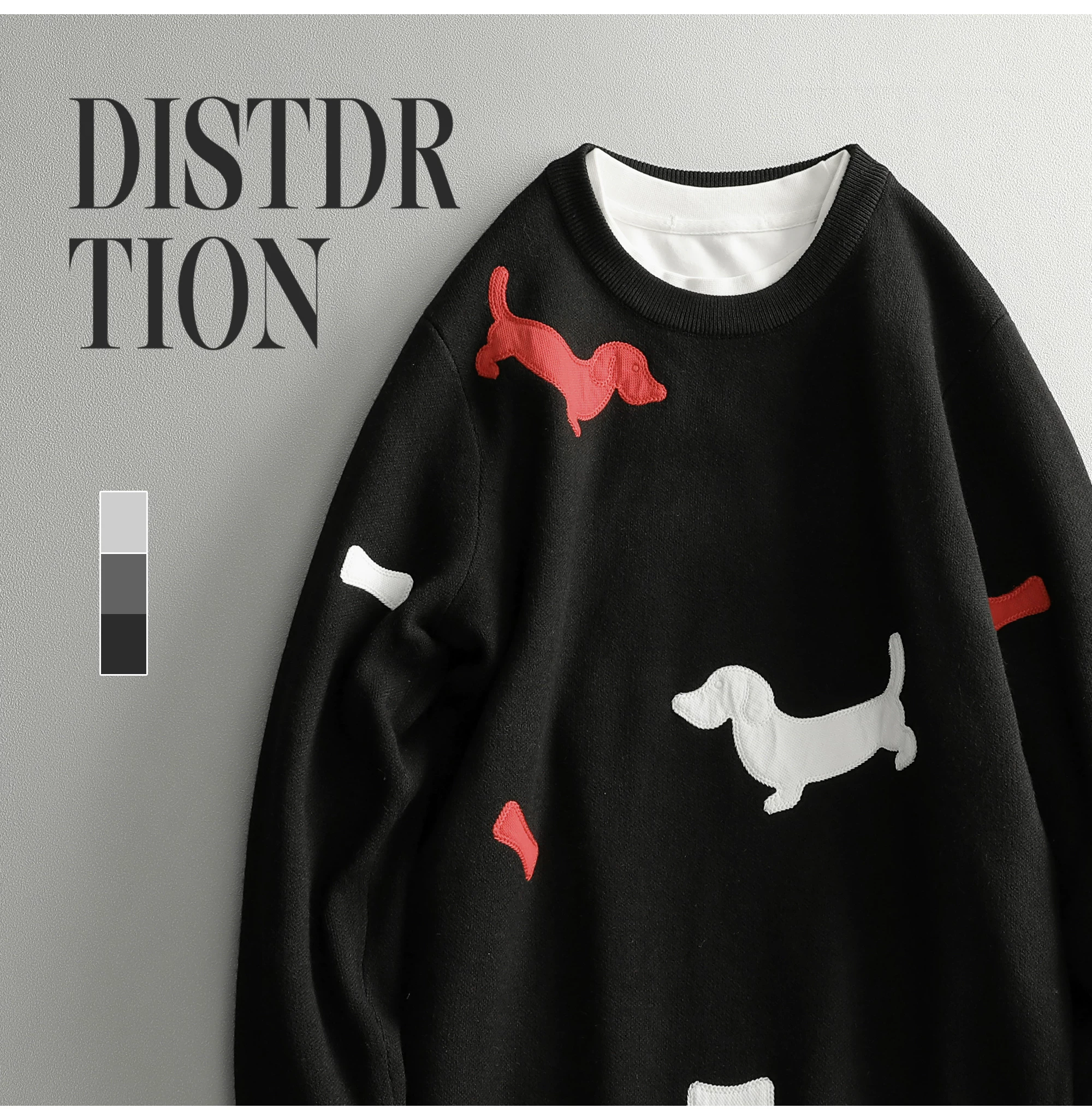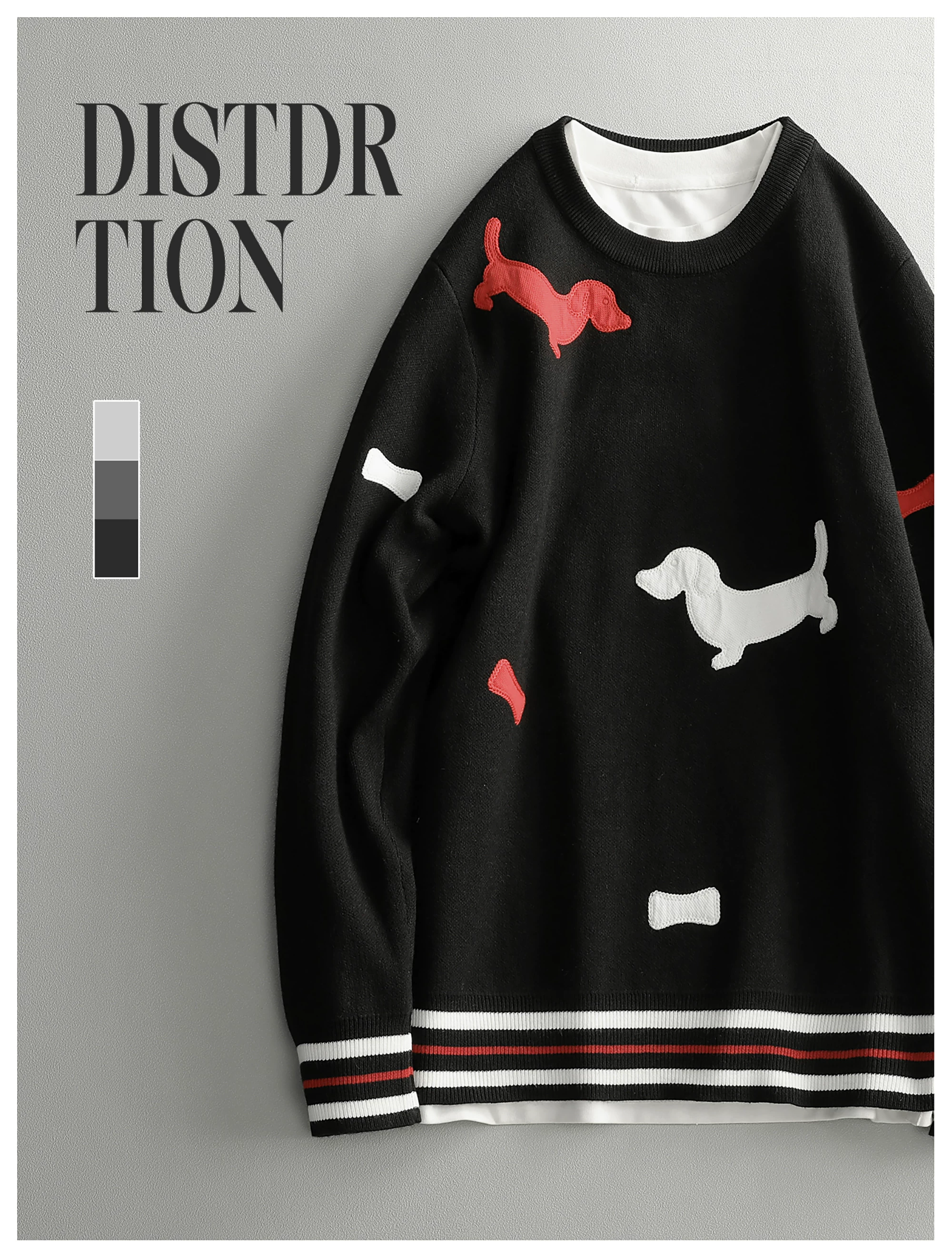 Ưu đãi đặc biệt: Áo len dệt kim thêu hình chó, phối màu bốn sọc thời thượng và năng động, được làm từ sợi modal core-spun, kiểu dáng ôm sát.