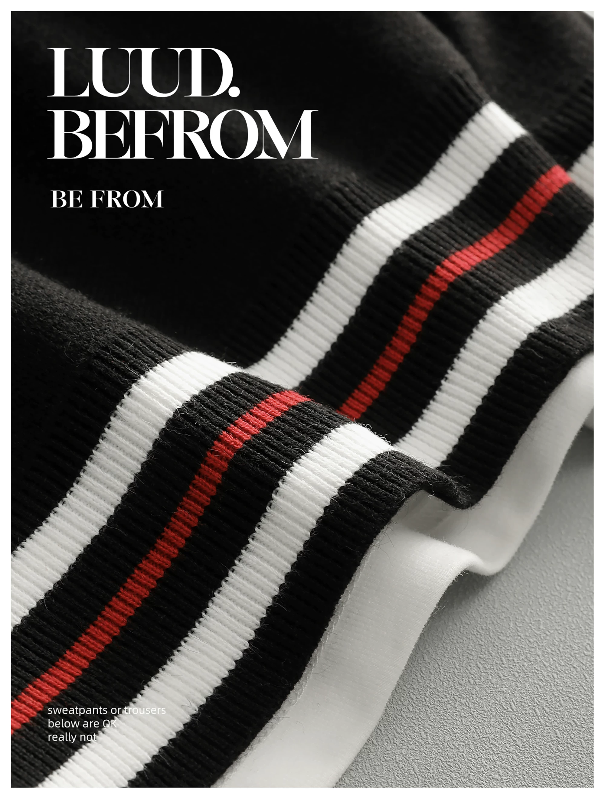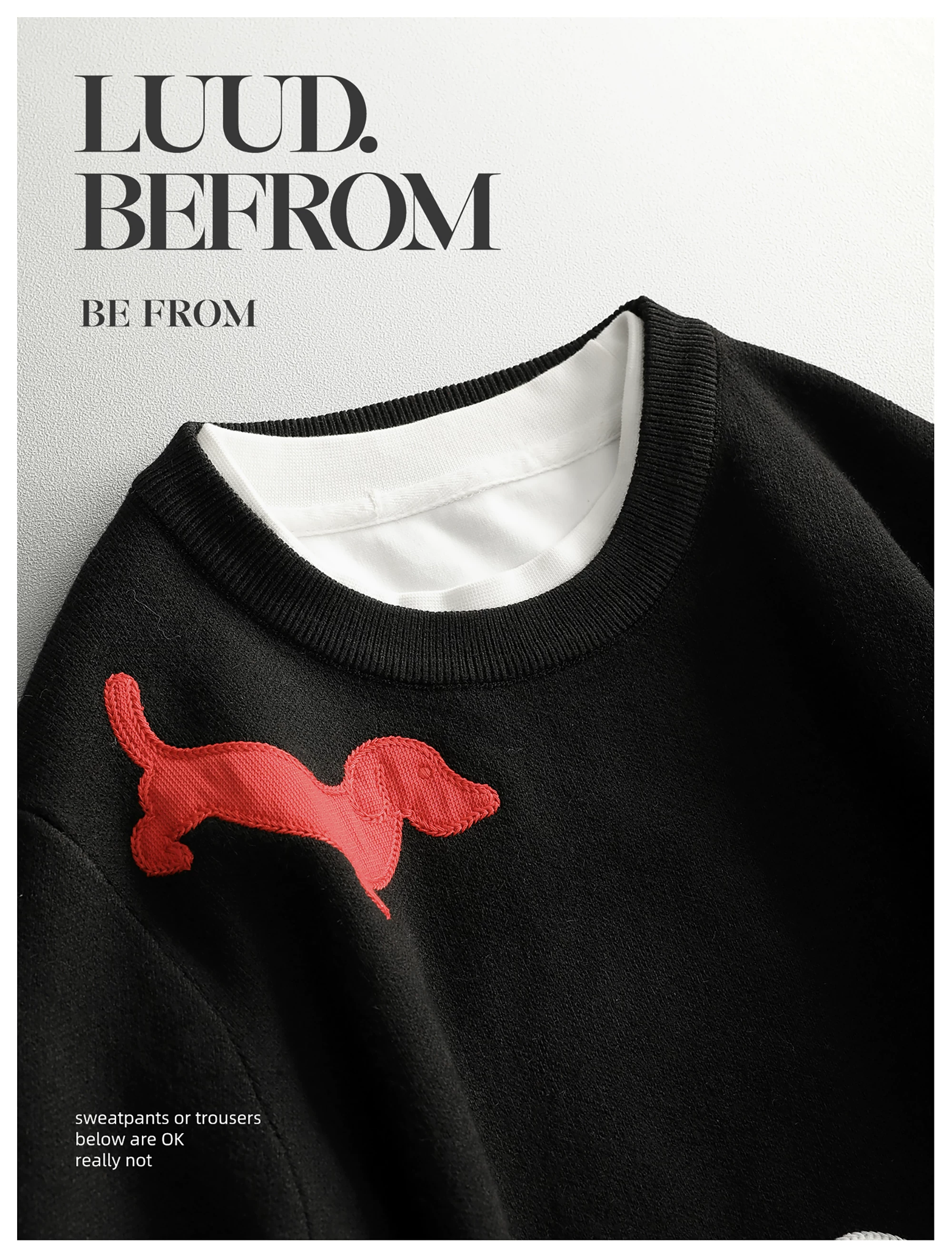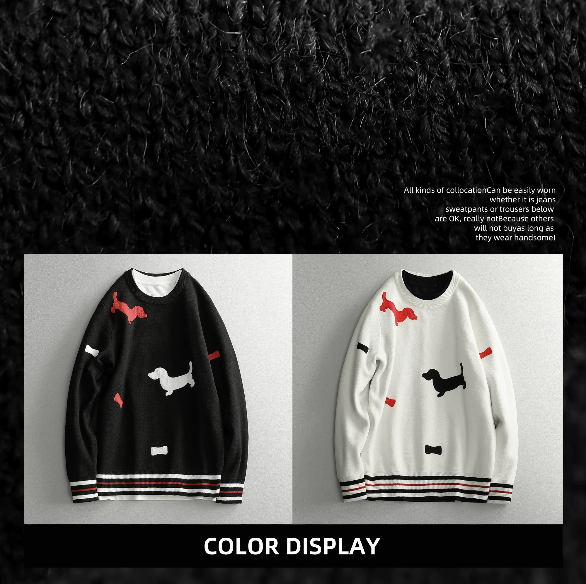 Ưu đãi đặc biệt: Áo len dệt kim thêu hình chó, phối màu bốn sọc thời thượng và năng động, được làm từ sợi modal core-spun, kiểu dáng ôm sát.
