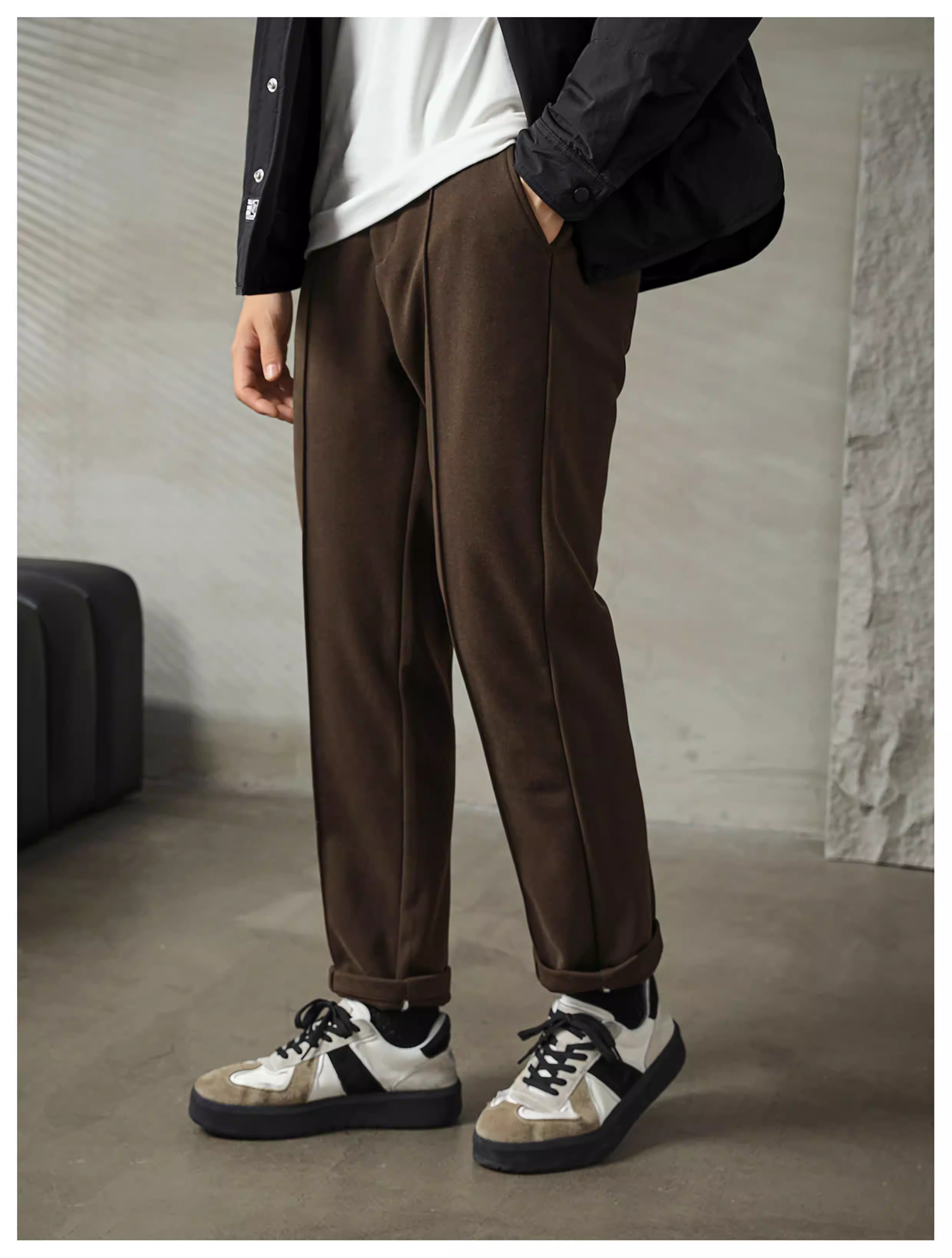 - Ưu đãi đặc biệt: Quần len ống đứng kiểu cổ điển đơn giản và sang trọng dành cho nam với cạp quần bán co giãn và thiết kế dây rút, quần thường ngày với ống dài ba chiều.