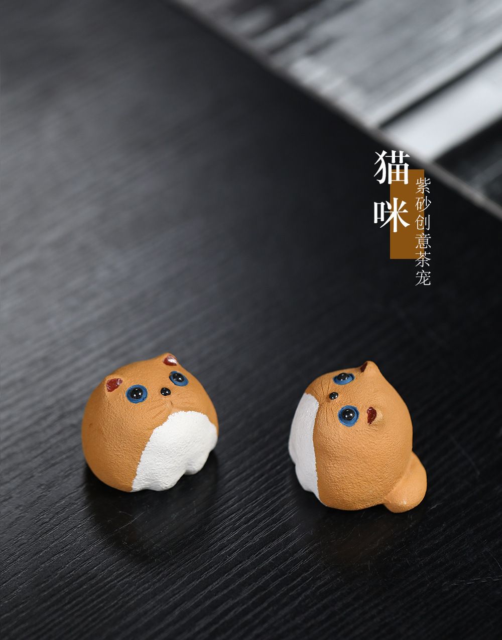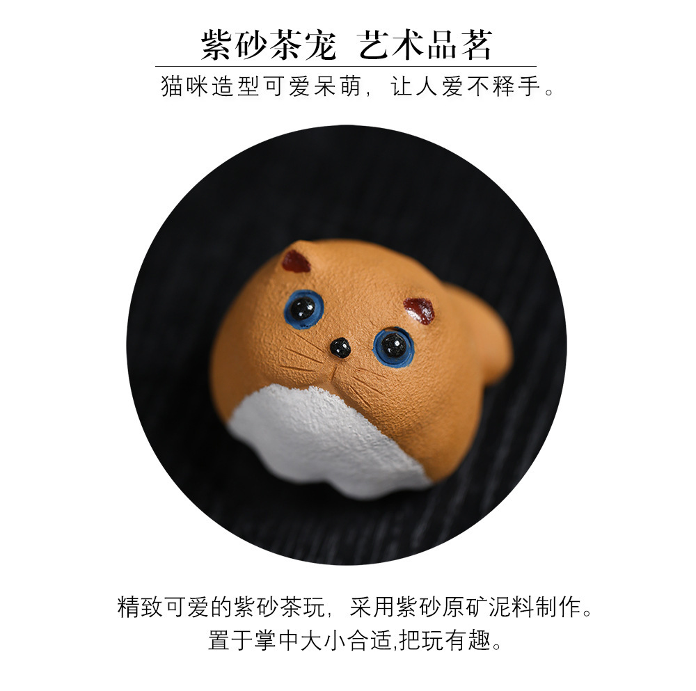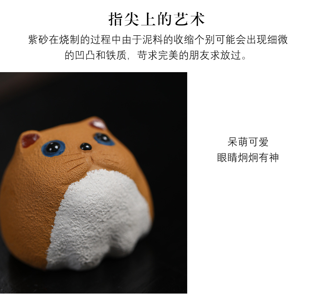 - Vật nuôi trà cát tím quặng thô Yixing, khay trà cao cấp, mèo may mắn, mèo cam dễ thương có thể được nuôi xung quanh trà đạo