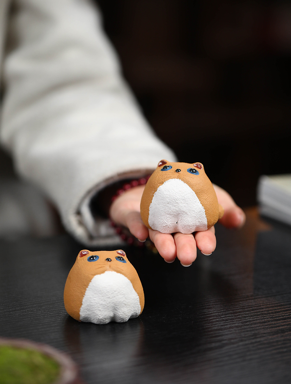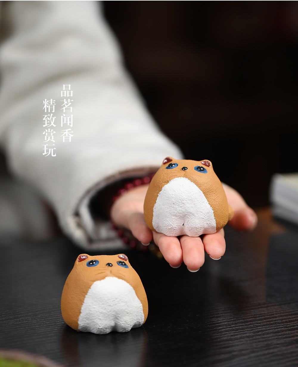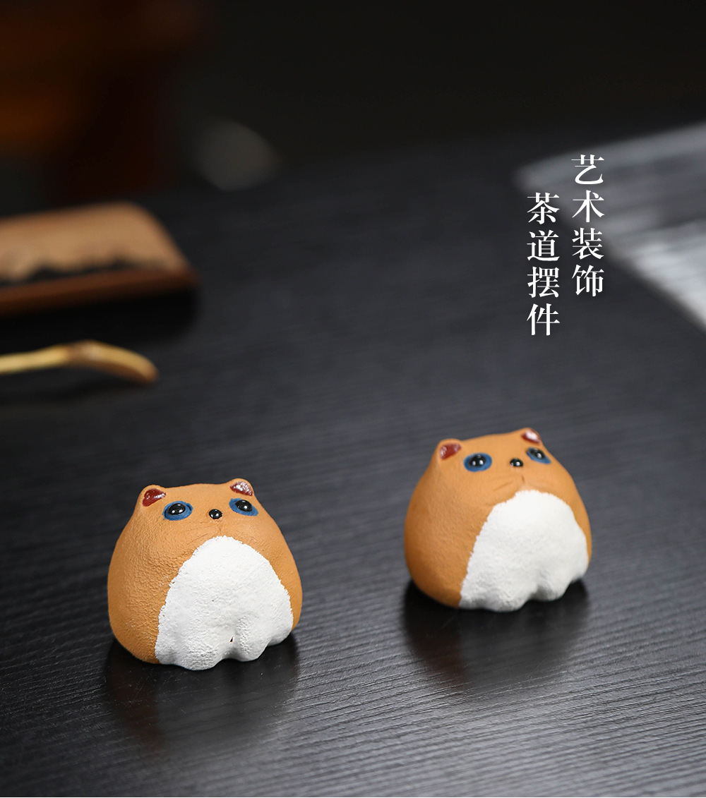 - Vật nuôi trà cát tím quặng thô Yixing, khay trà cao cấp, mèo may mắn, mèo cam dễ thương có thể được nuôi xung quanh trà đạo