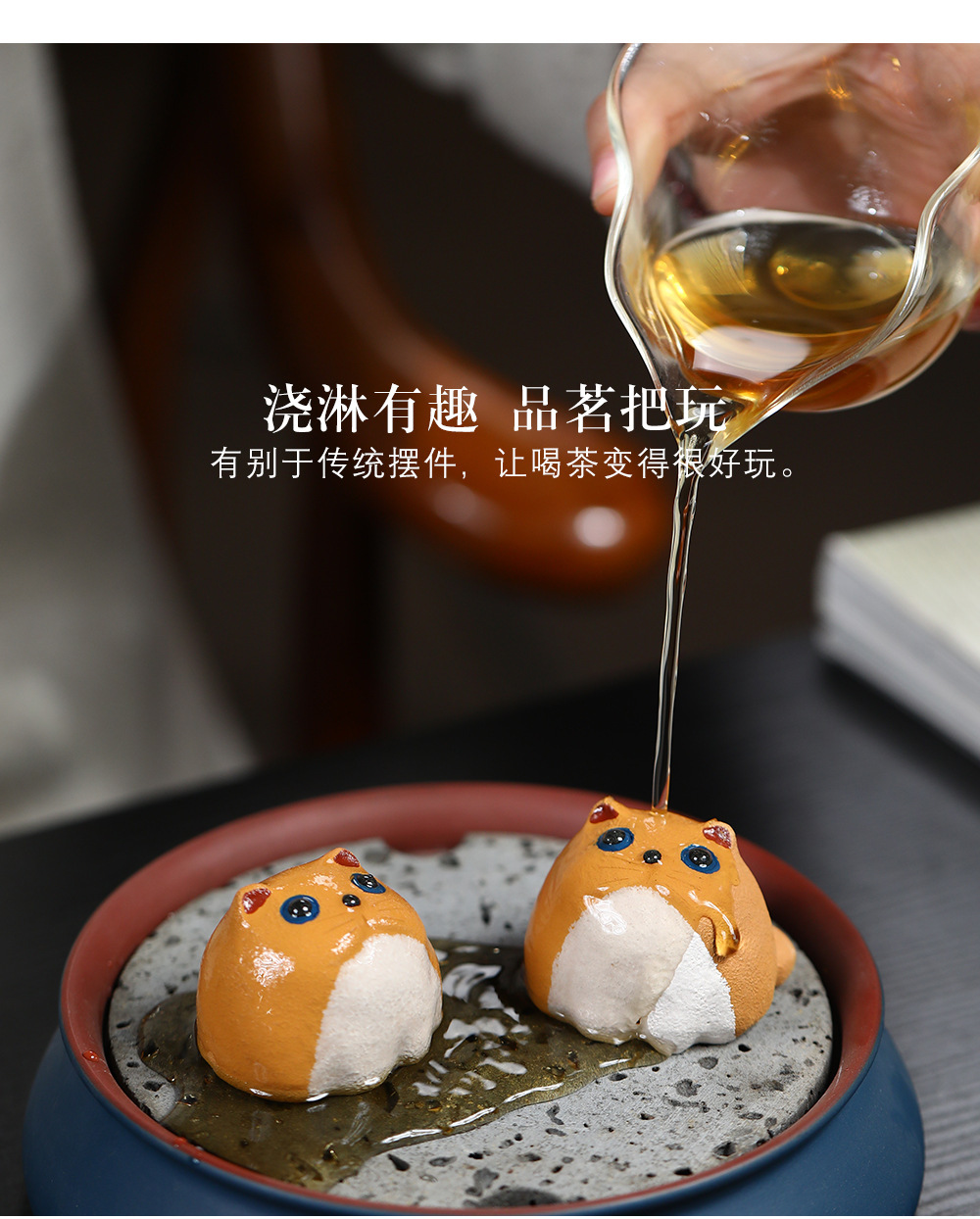 Vật nuôi trà cát tím quặng thô Yixing, khay trà cao cấp, mèo may mắn, mèo cam dễ thương có thể được nuôi xung quanh trà đạo