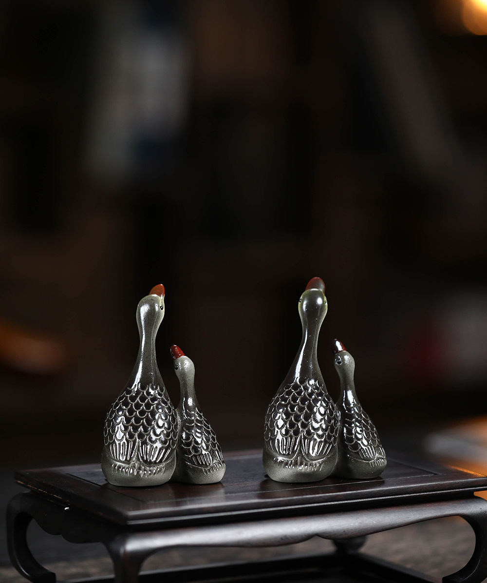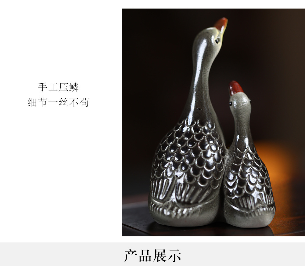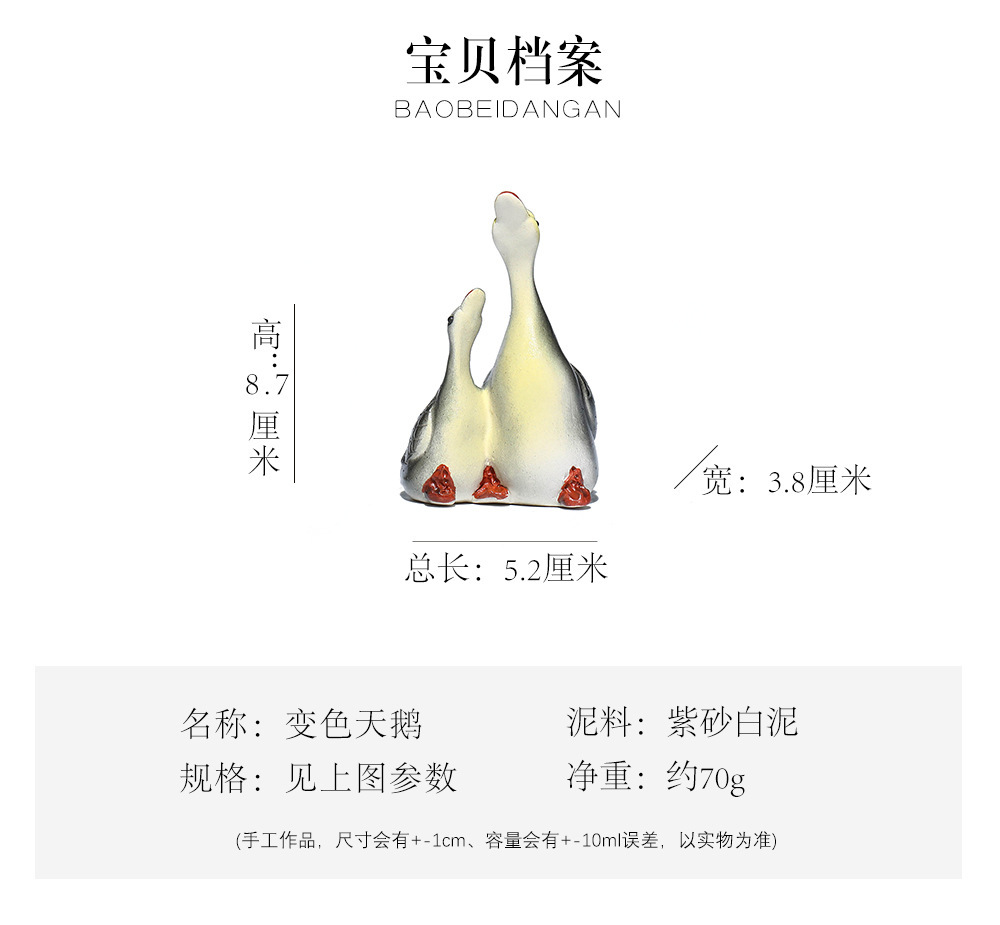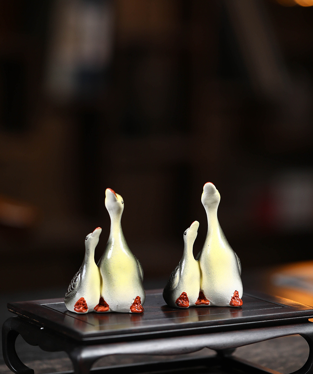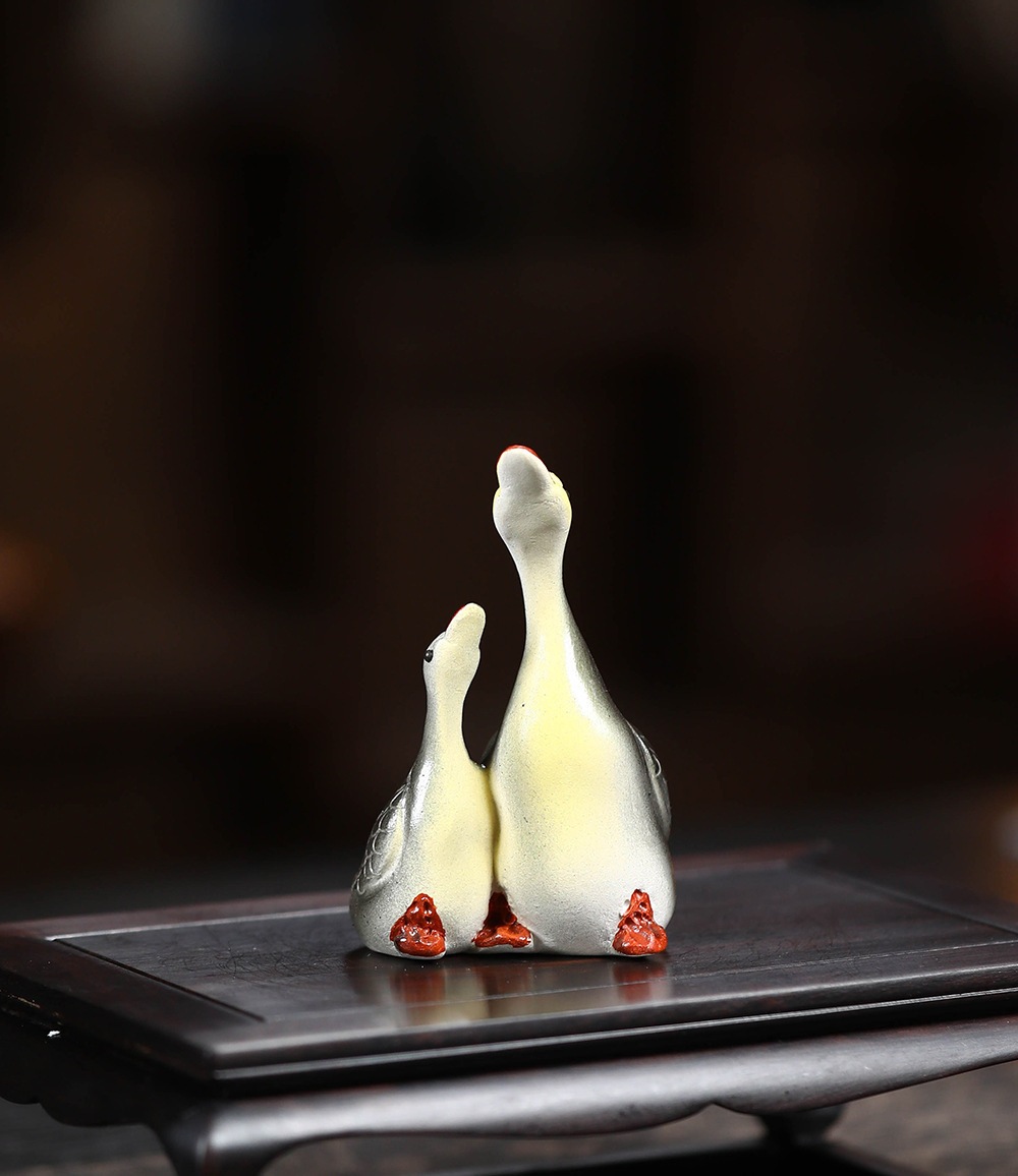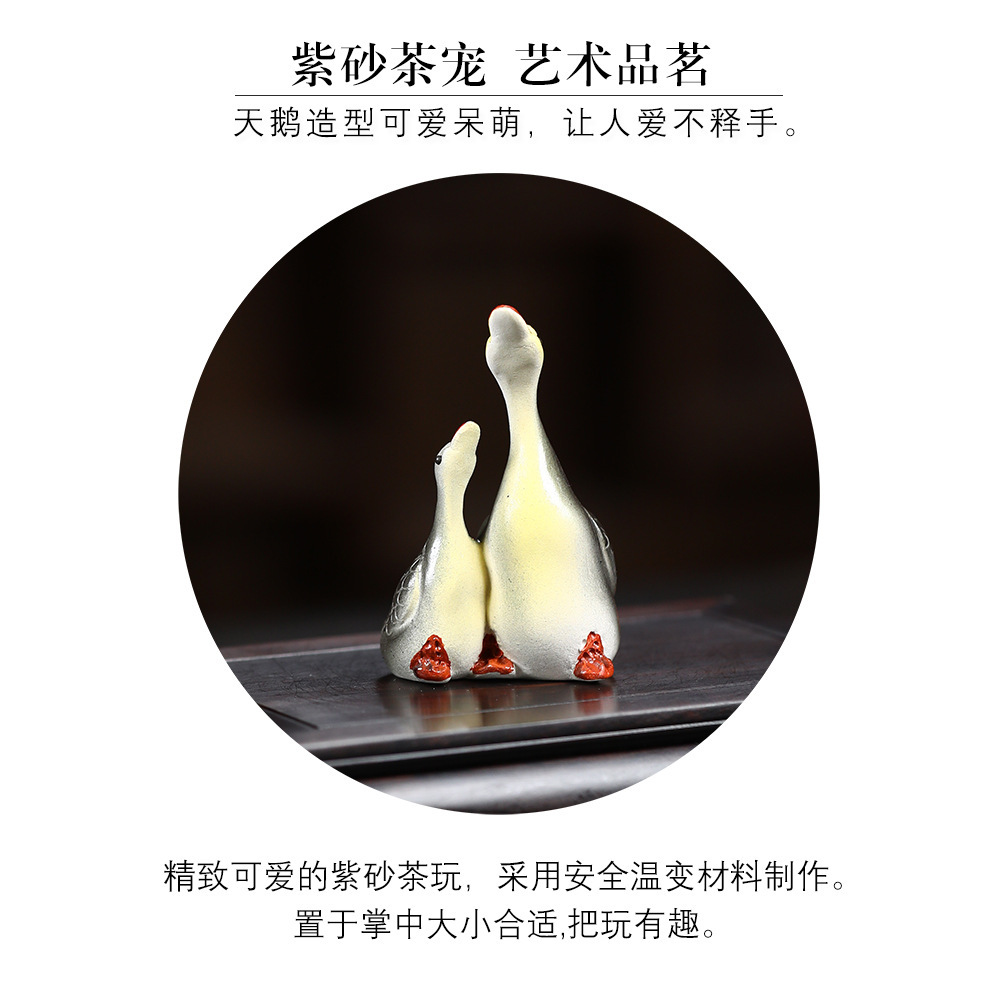 - Vật nuôi trà cát tím Yixing đổi màu thiên nga điêu khắc thủ công Bộ trà đồ trang trí khay trà có thể nuôi cặp đôi ngỗng bán buôn gốm sứ
