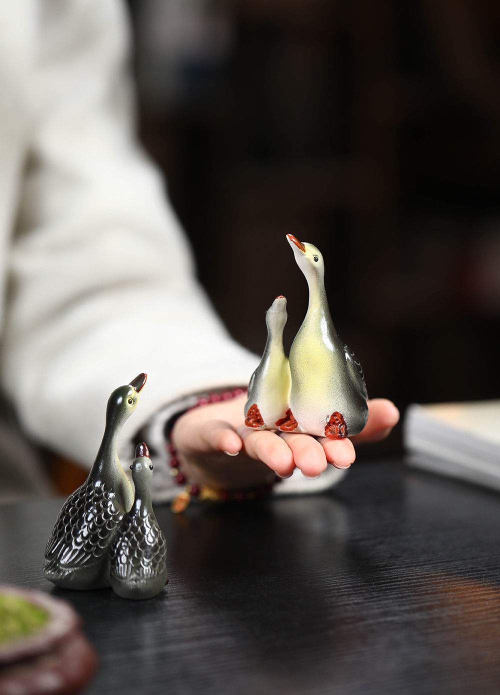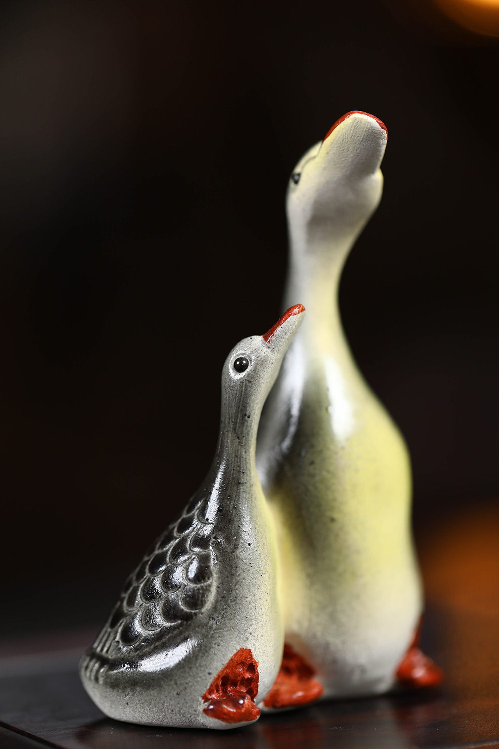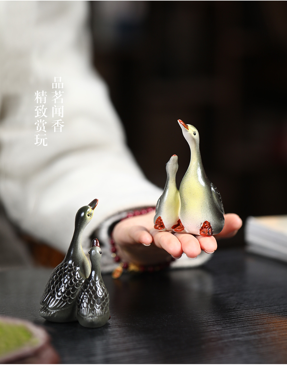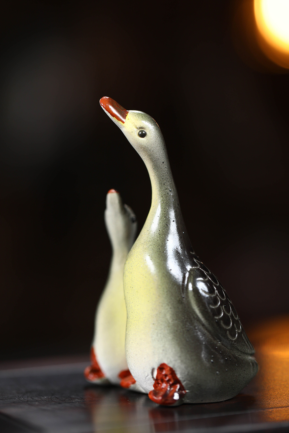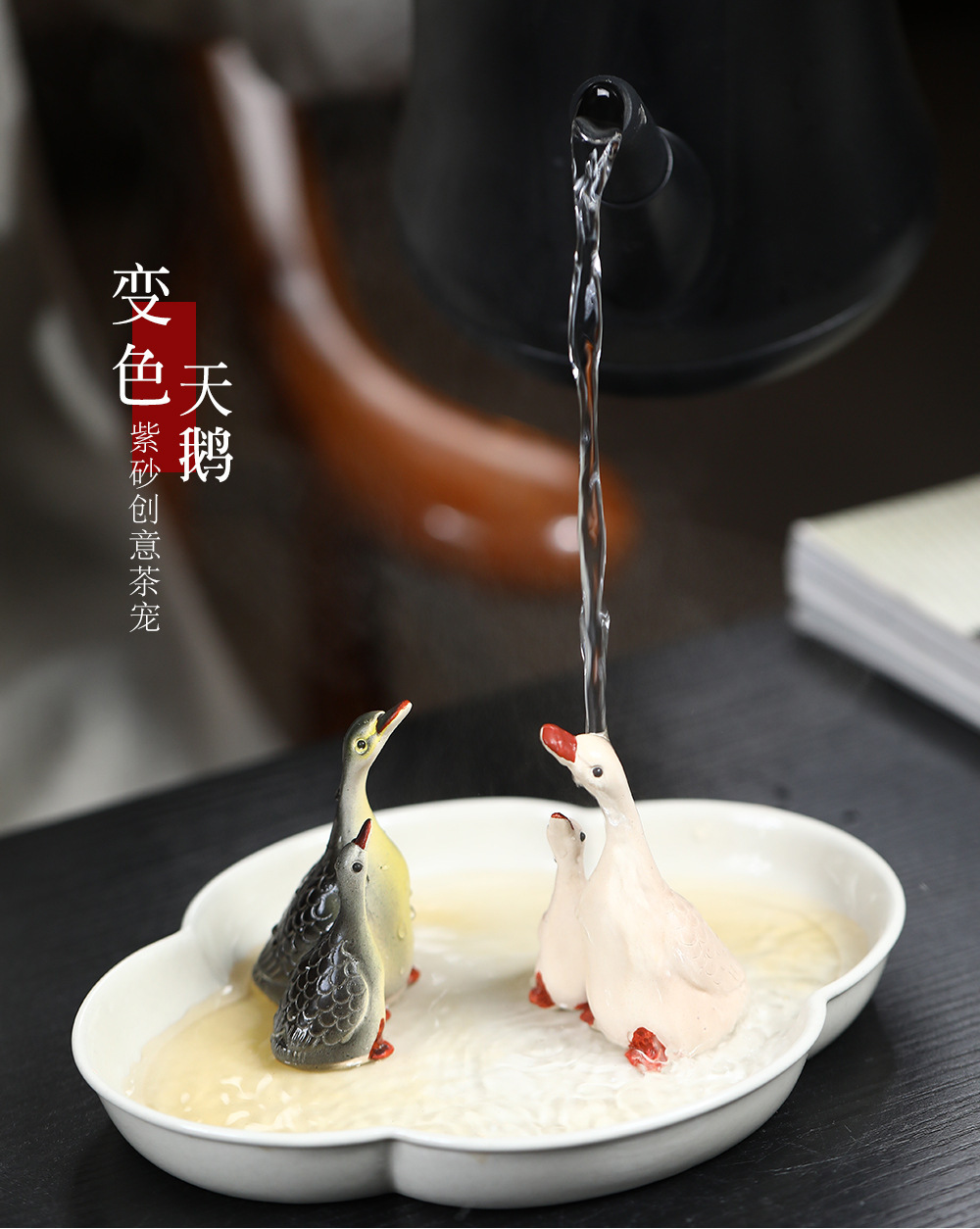 - Vật nuôi trà cát tím Yixing đổi màu thiên nga điêu khắc thủ công Bộ trà đồ trang trí khay trà có thể nuôi cặp đôi ngỗng bán buôn gốm sứ