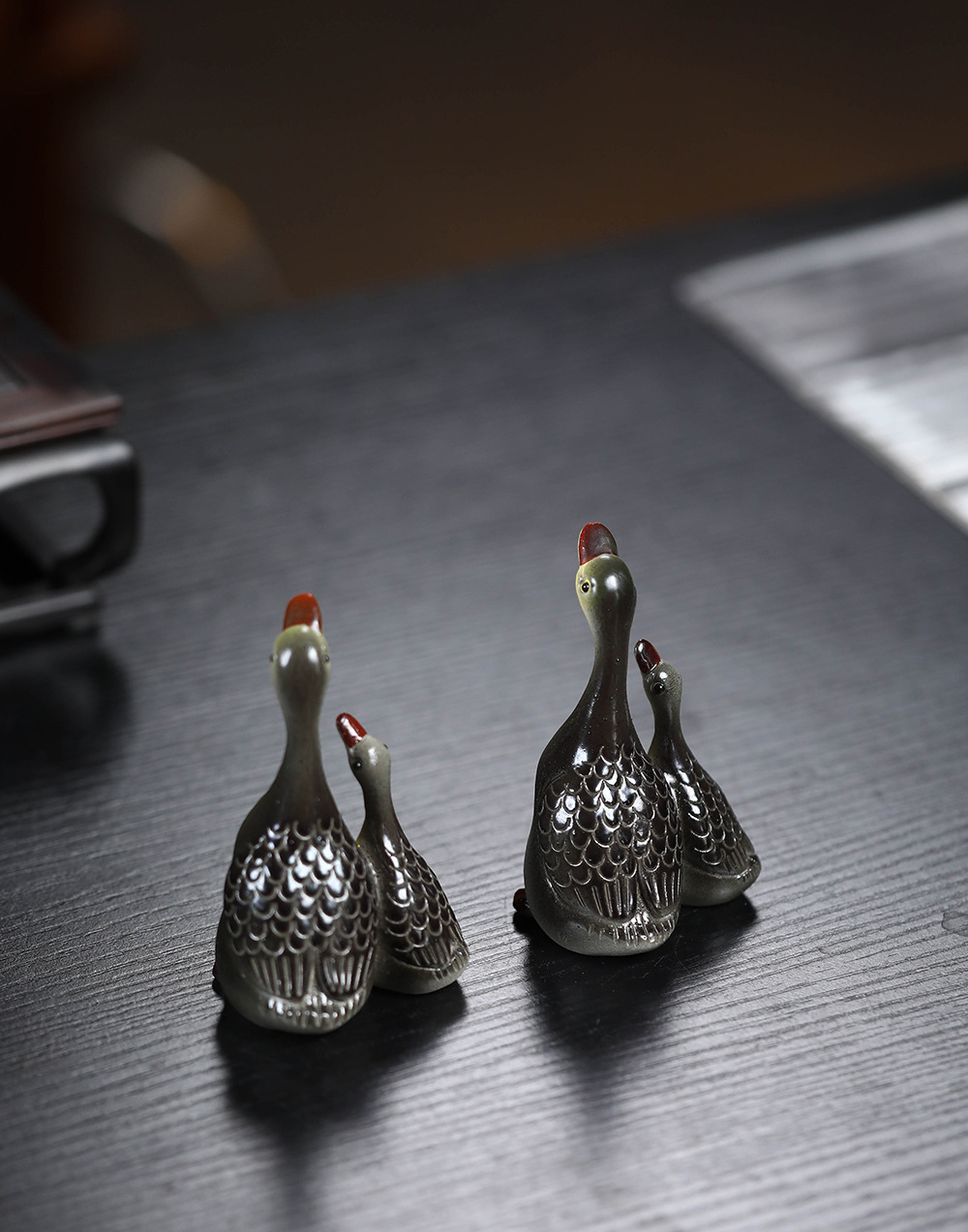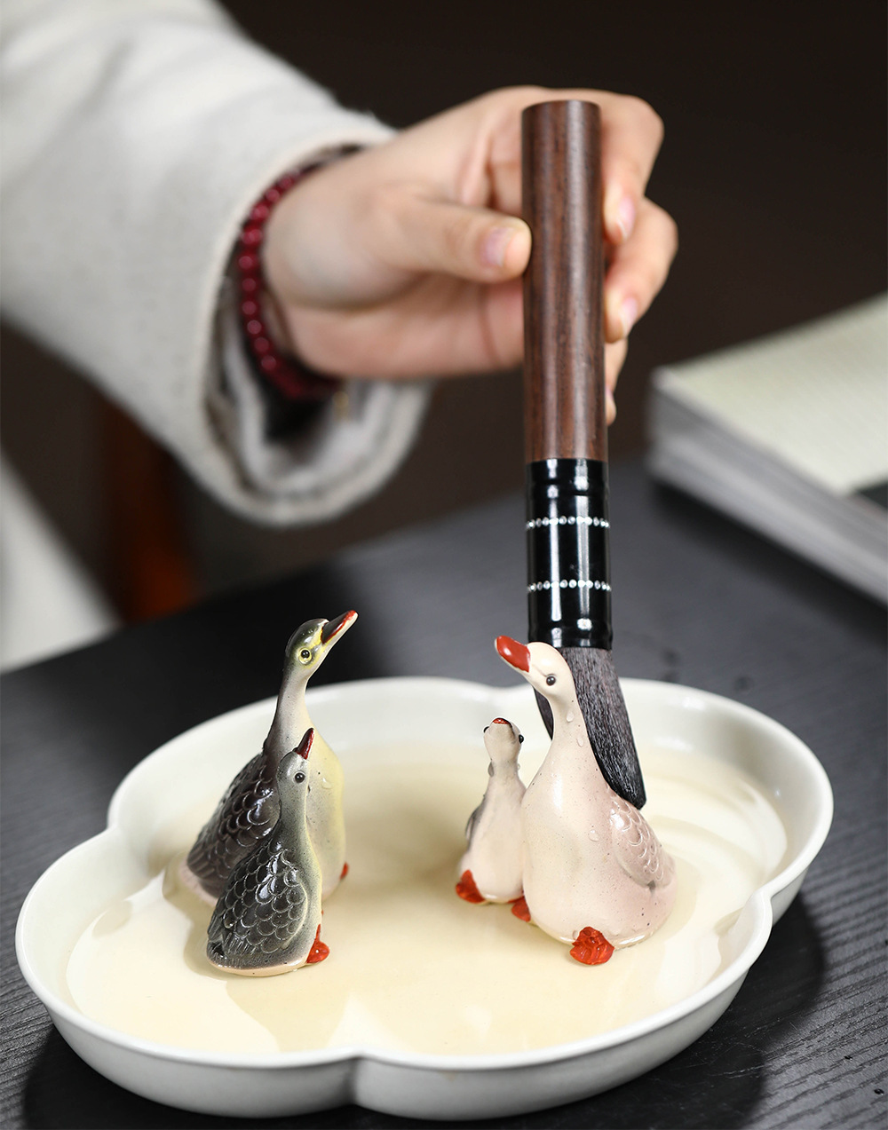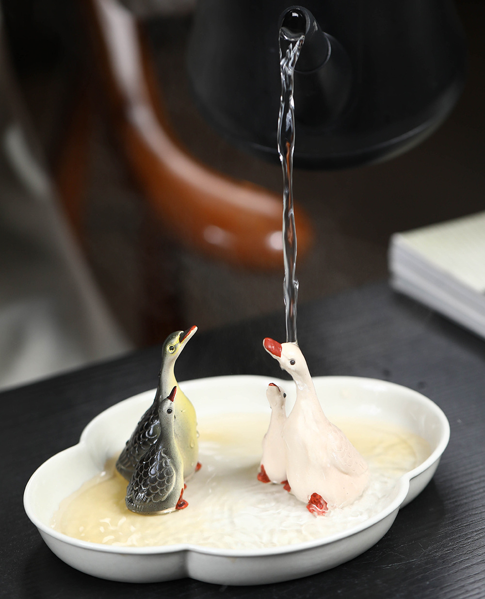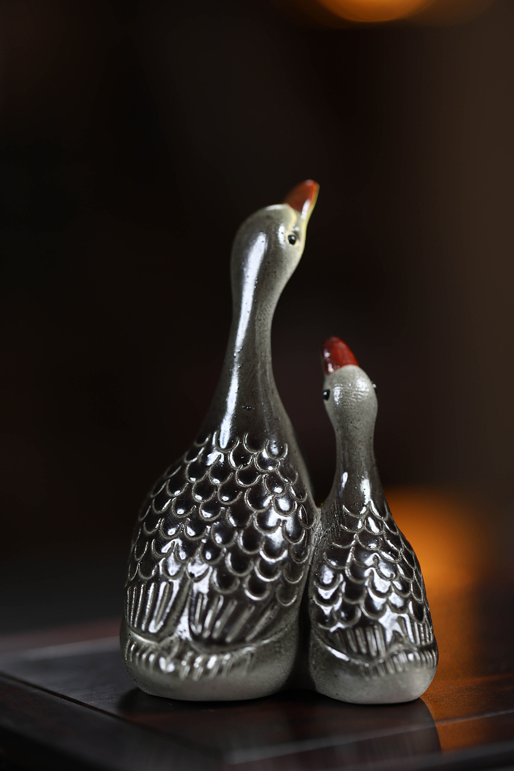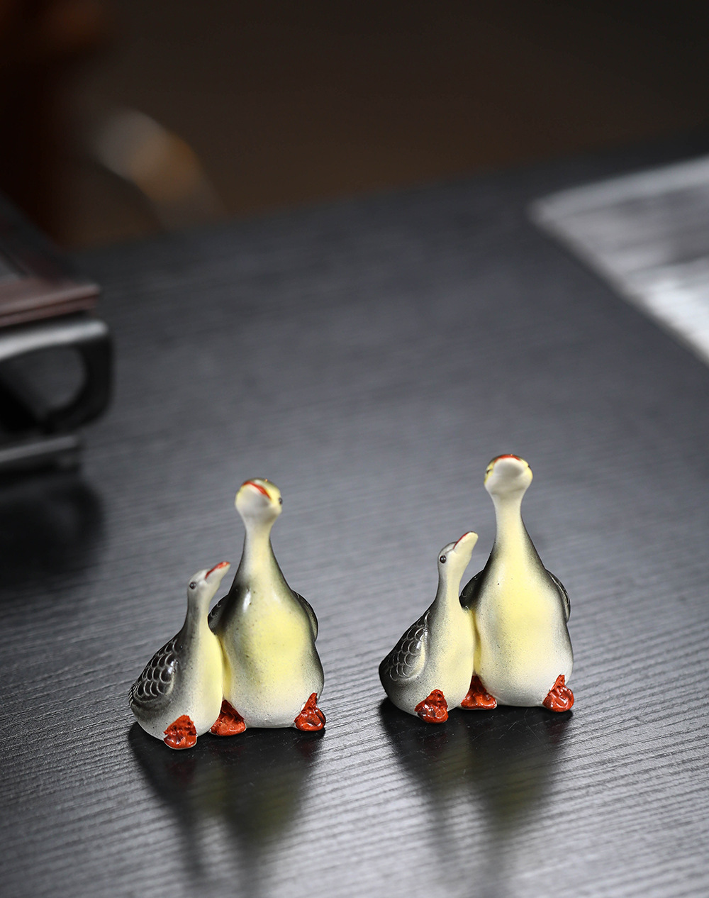 - Vật nuôi trà cát tím Yixing đổi màu thiên nga điêu khắc thủ công Bộ trà đồ trang trí khay trà có thể nuôi cặp đôi ngỗng bán buôn gốm sứ