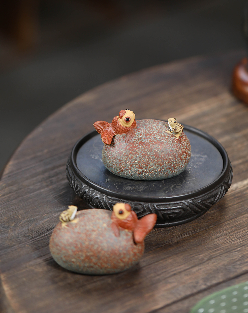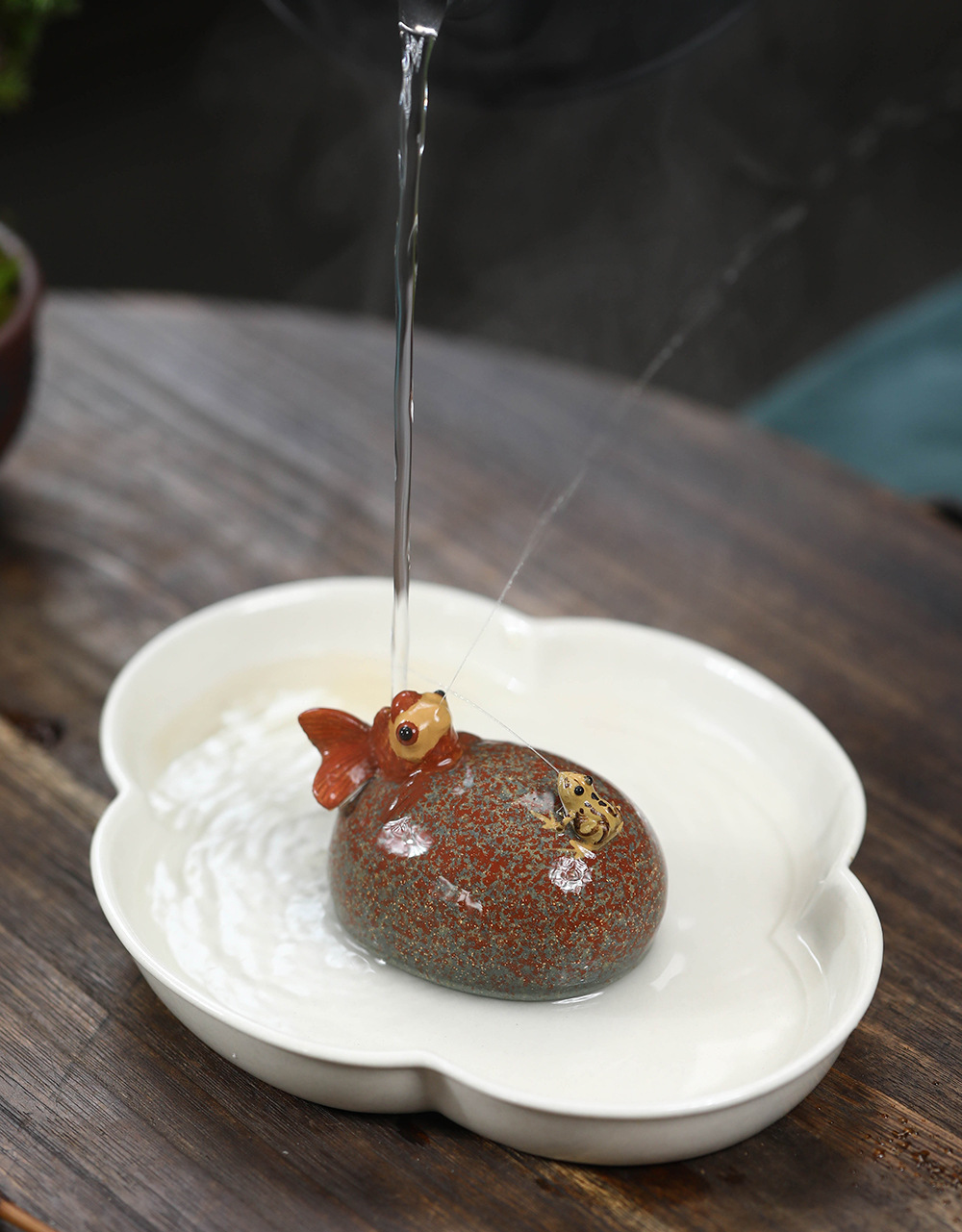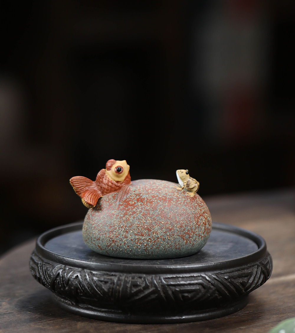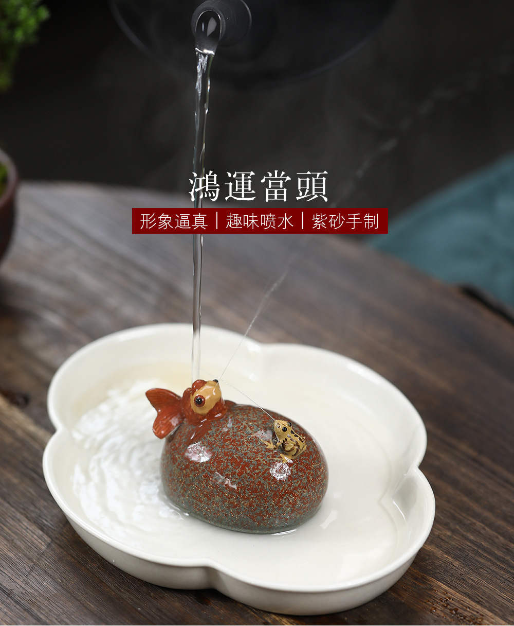 Vật nuôi trà phun nước, cá vàng ếch, trà tử sa, bàn trà, đồ trang trí nhỏ, đá Điêu Khắc Sáng tạo, quà tặng trang trí có thể nuôi được
