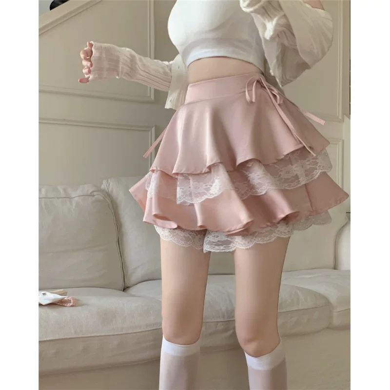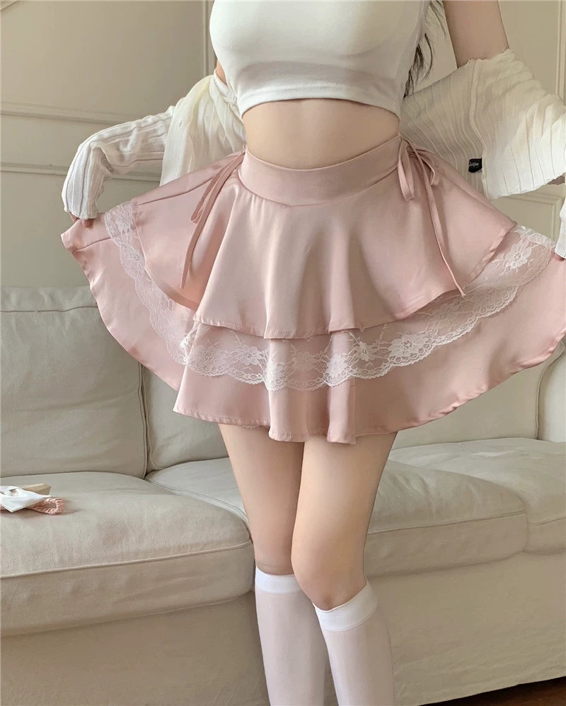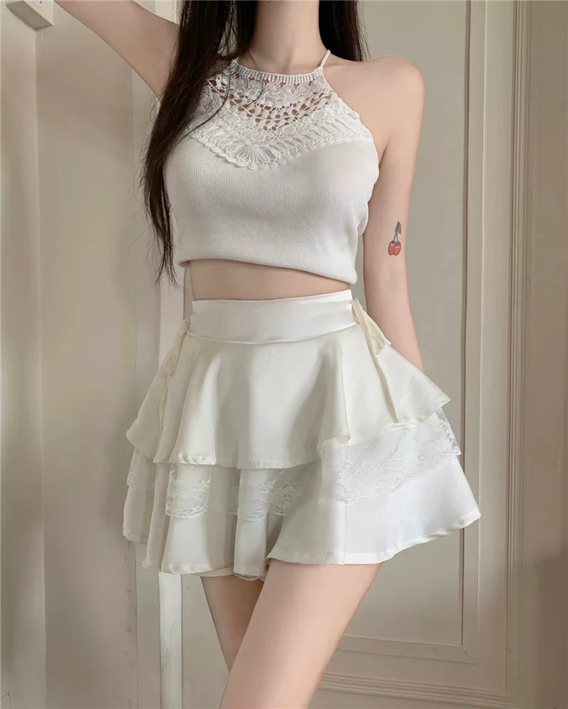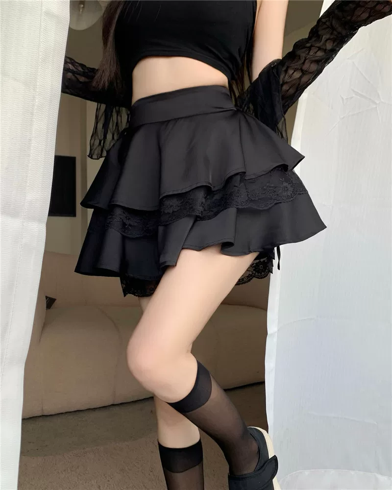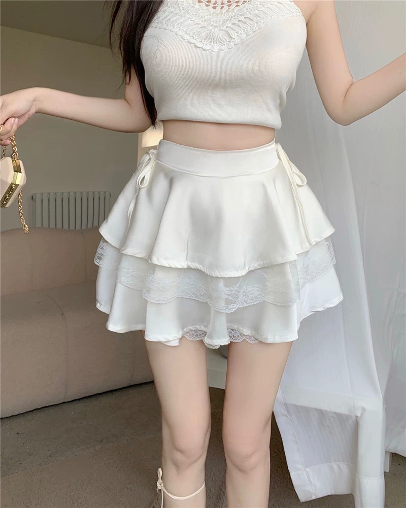 Váy bánh bèo ren Pháp size lớn dành cho nữ, mùa hè, cạp cao, kiểu dáng gợi cảm, dáng chữ A, thiết kế độc đáo, váy ngắn bồng bềnh