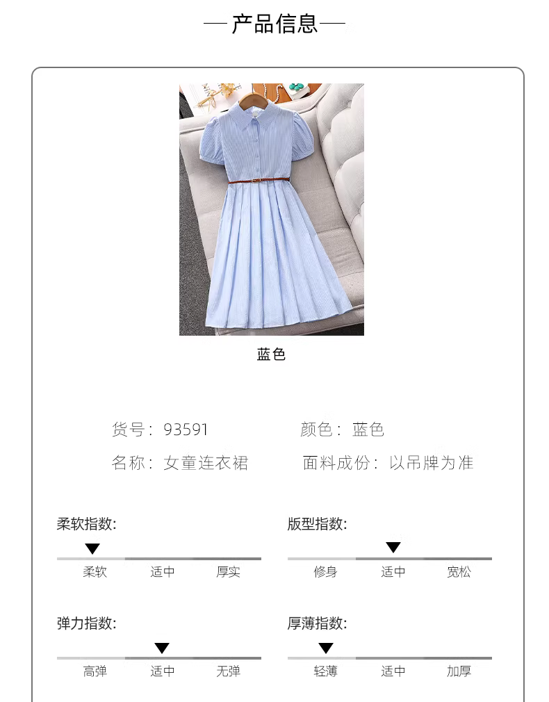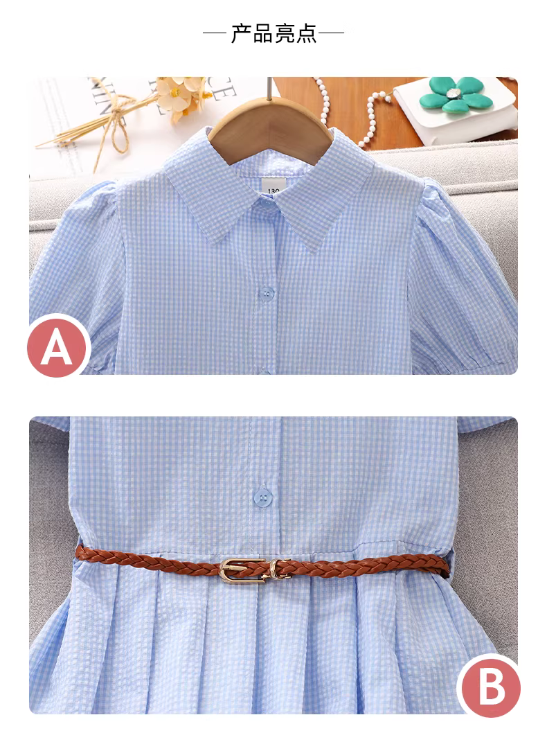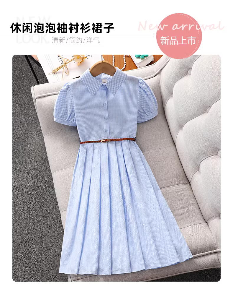 - Váy bé gái hè 2025 kiểu mới, đầm sơ mi phong cách preppy cho bé gái lớn, đầm trẻ em mùa hè kiểu dáng suông, có dây rút eo