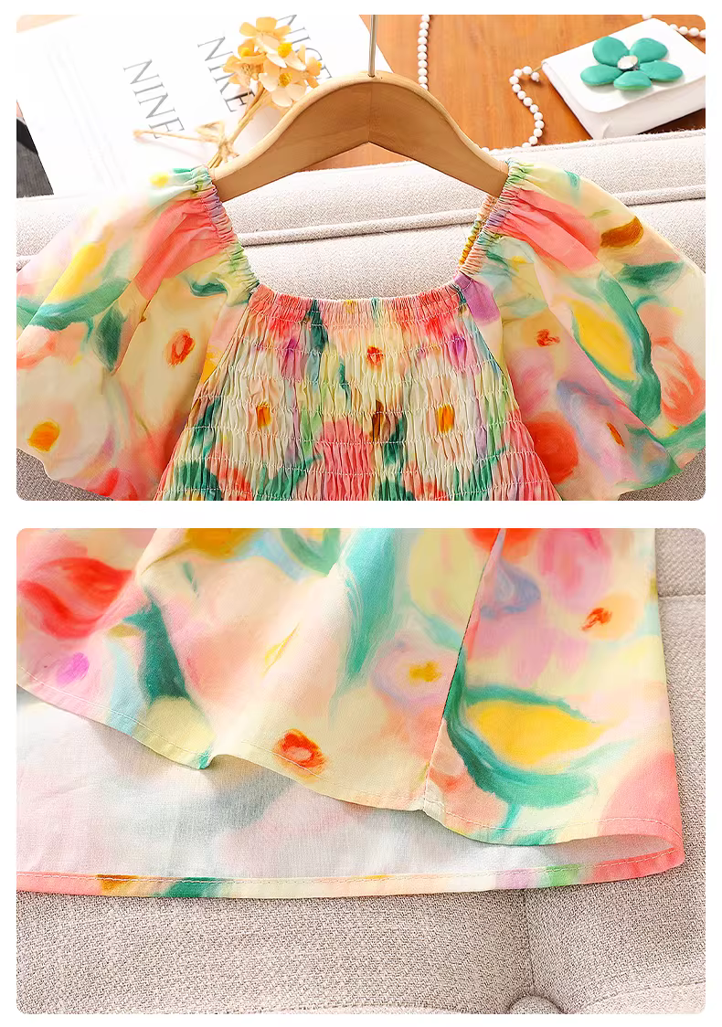 Váy bé gái hè 2025 kiểu mới, váy công chúa tay bồng hoa nhí cho bé gái lớn, váy đi biển đi nghỉ