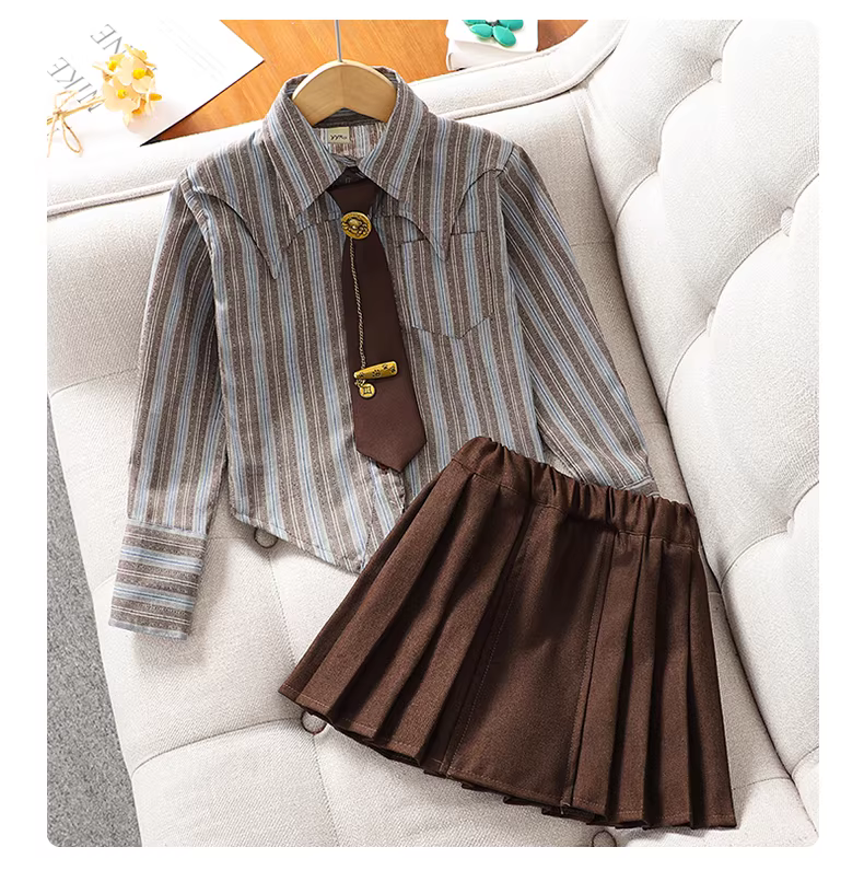 - Váy bé gái quần áo mùa thu 2025 váy xếp ly mới phong cách xuân thu quần áo trẻ em lớn phong cách preppy váy nửa thân váy ngắn trẻ em