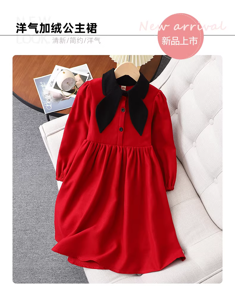 Váy bé gái thu đông 2025 kiểu mới thời trang màu đỏ, váy công chúa, trang phục Tết, váy trẻ em, trang phục chào mừng năm mới