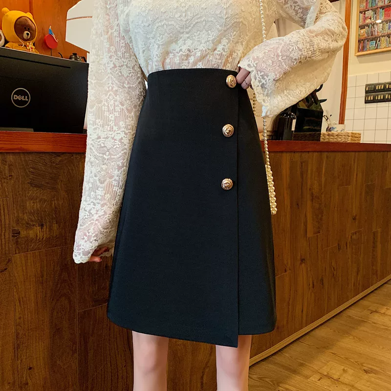 - Váy cạp cao dáng bất đối xứng size lớn cho nữ, váy ôm hông dài qua gối size lớn (plus-size), kiểu mới hè 2025, váy chữ A dài trung bình đơn giản.