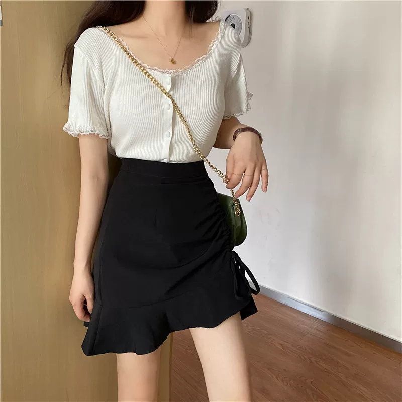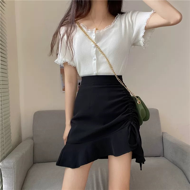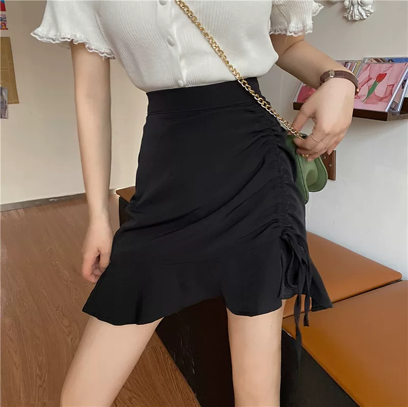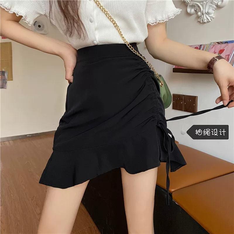 - Váy cạp cao dáng bất quy tắc kiểu mới mùa hè che bụng, size lớn cho phụ nữ mũm mĩm, váy chữ A thon gọn có dây rút, quần váy ngắn cho nữ.