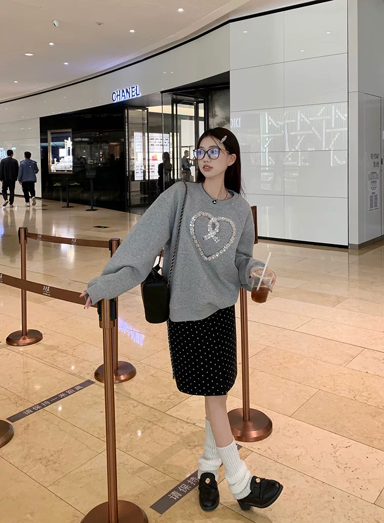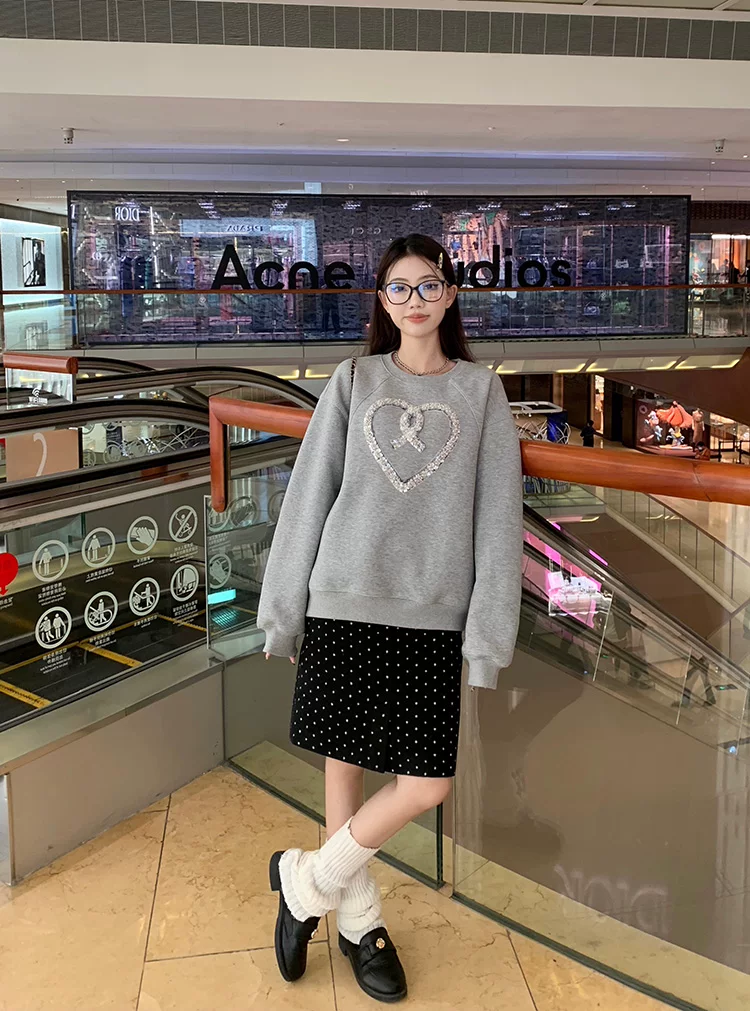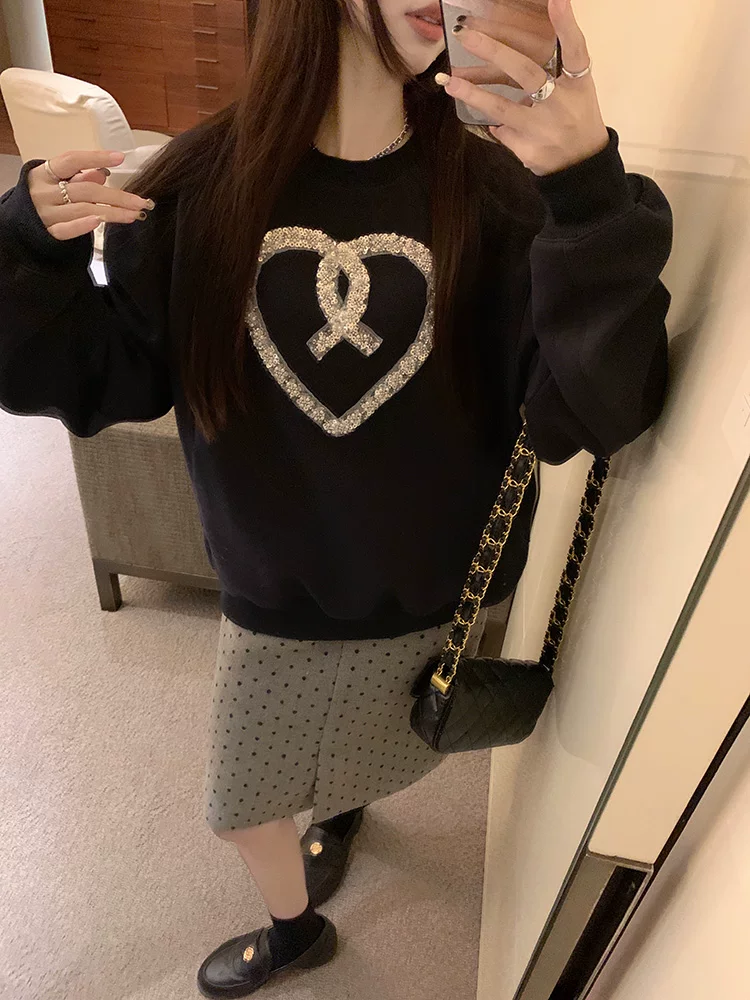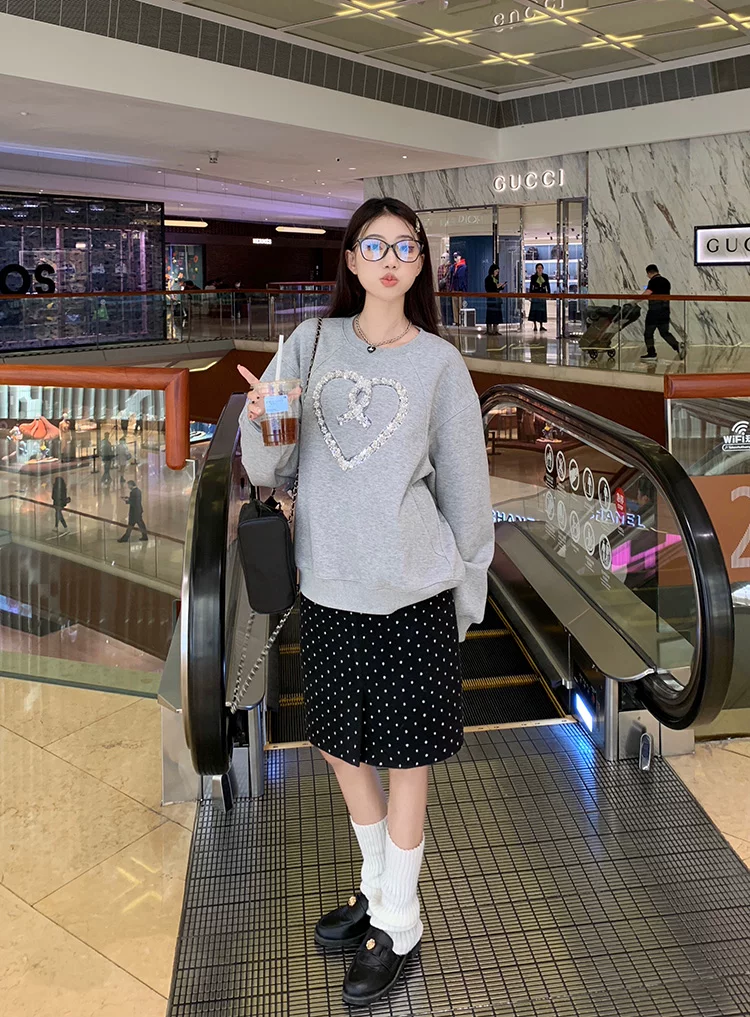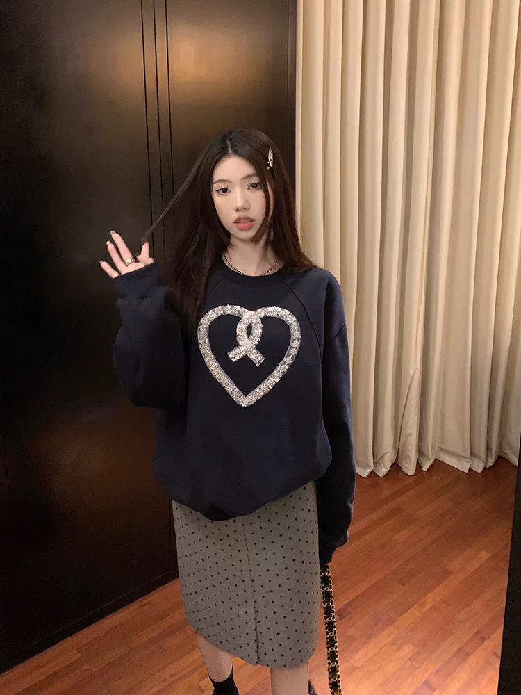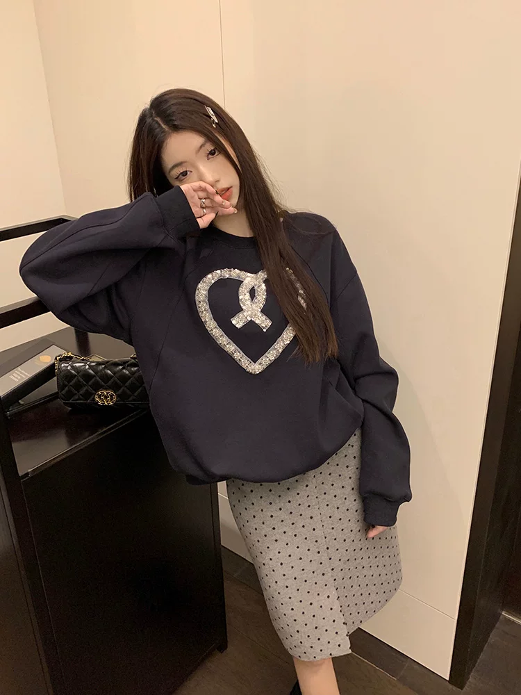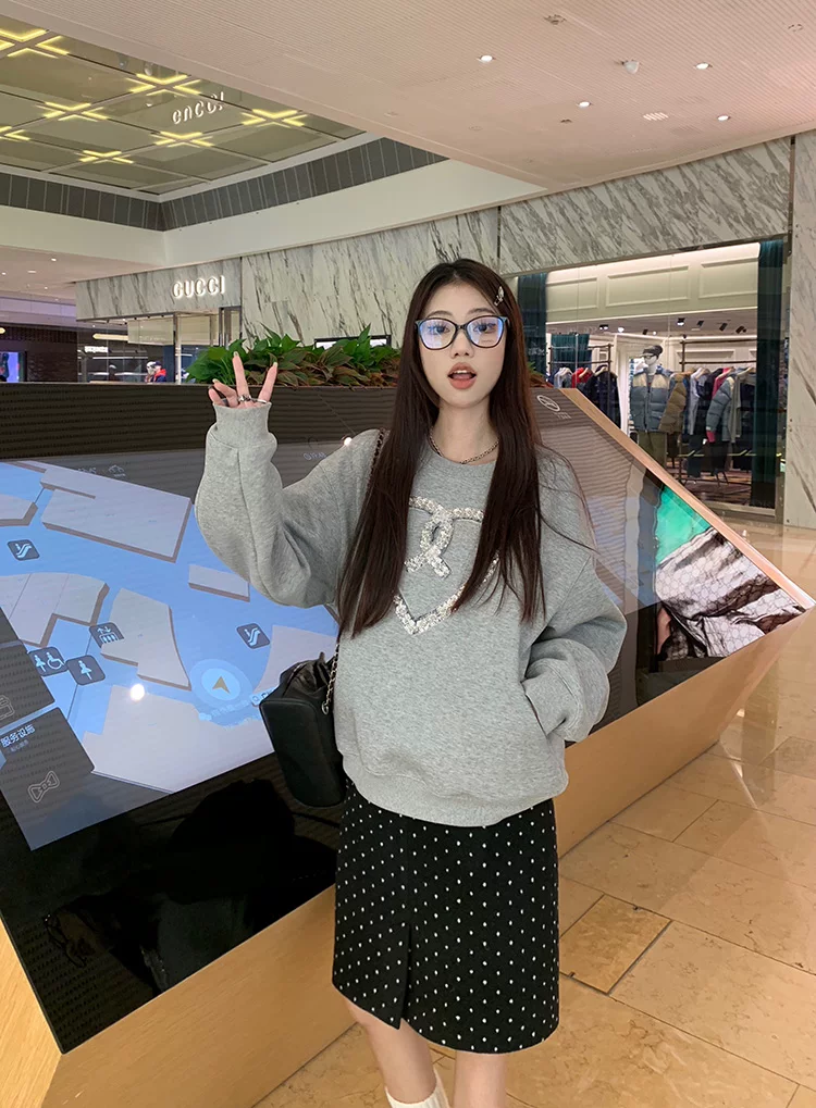 - Váy chấm bi đen cổ điển dành cho nữ mùa thu đông, cạp cao, dáng nhỏ nhắn, thiết kế xẻ tà, váy chữ A, váy len dài trung bình