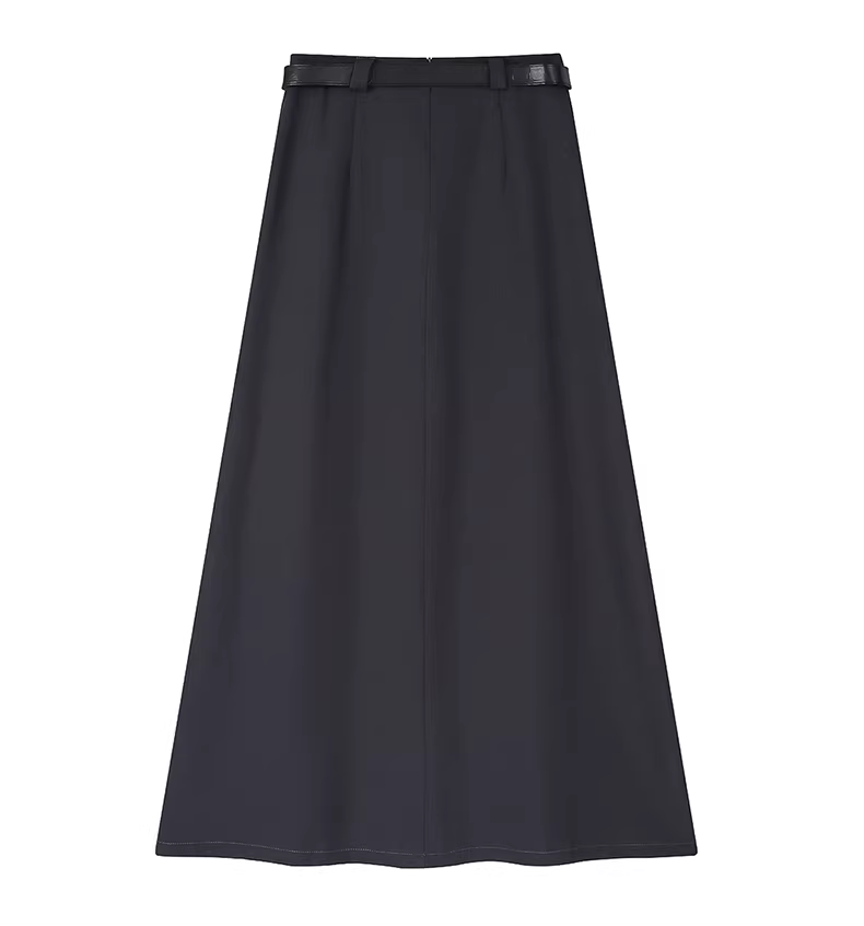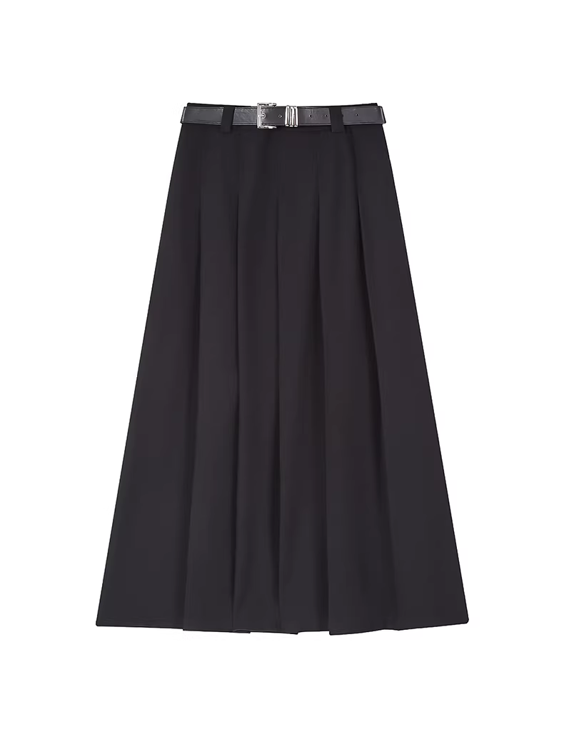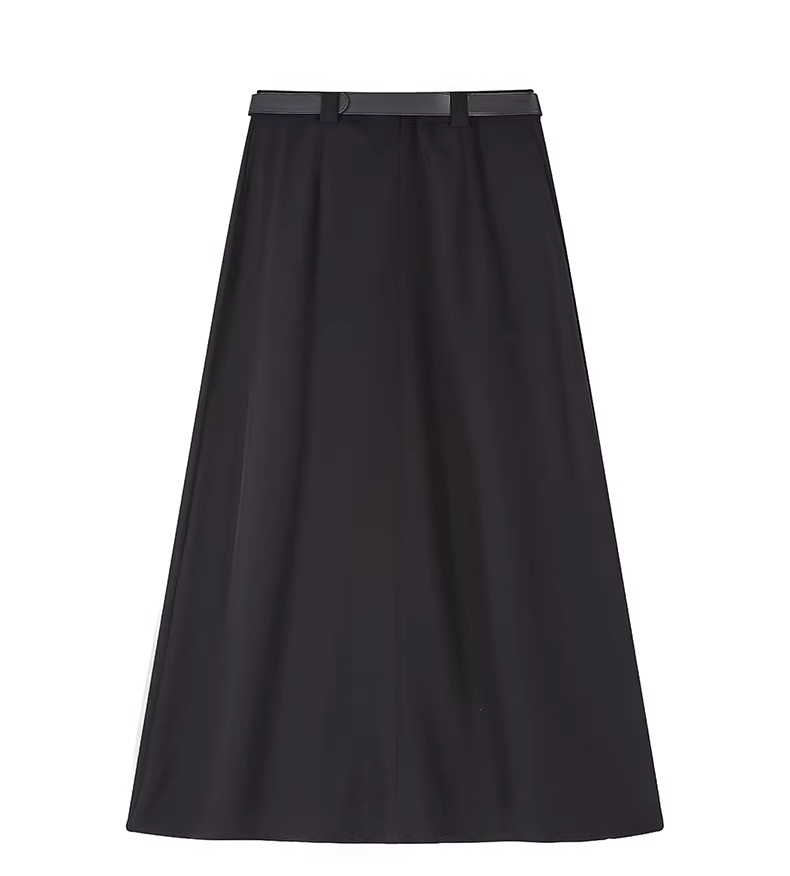 Váy chữ A đen CuteGirl, cạp cao, tôn dáng, che hông, kiểu dáng mới thu 2025 dành cho nữ, xếp ly