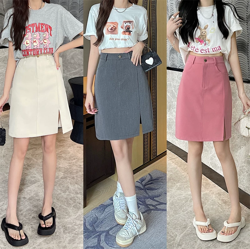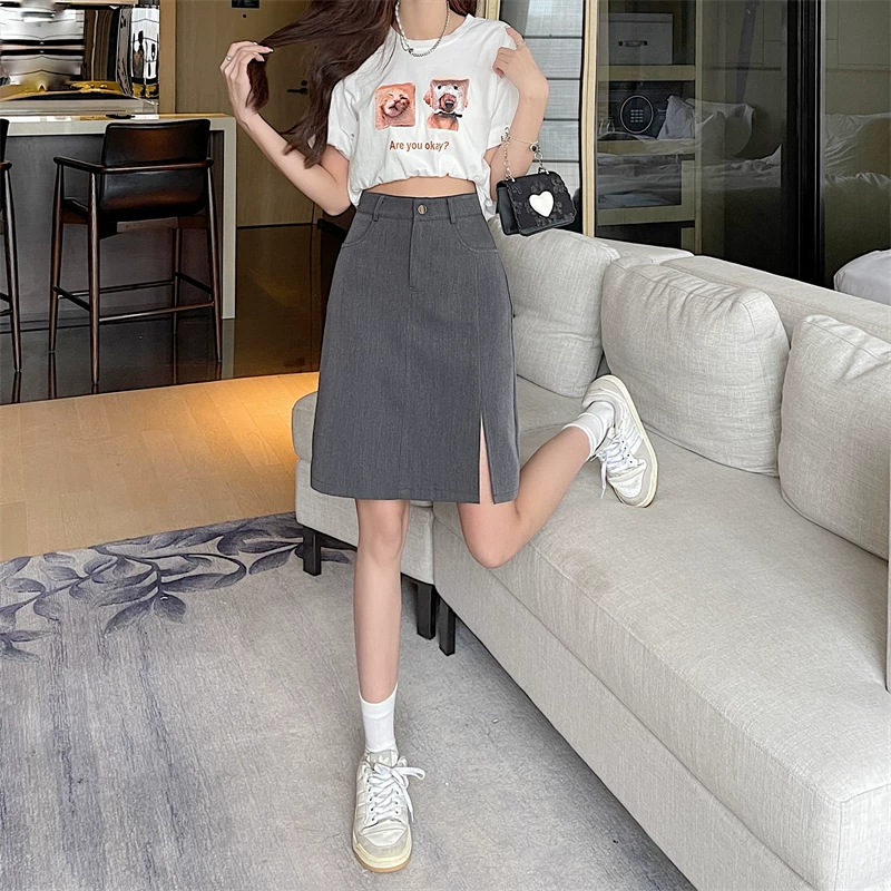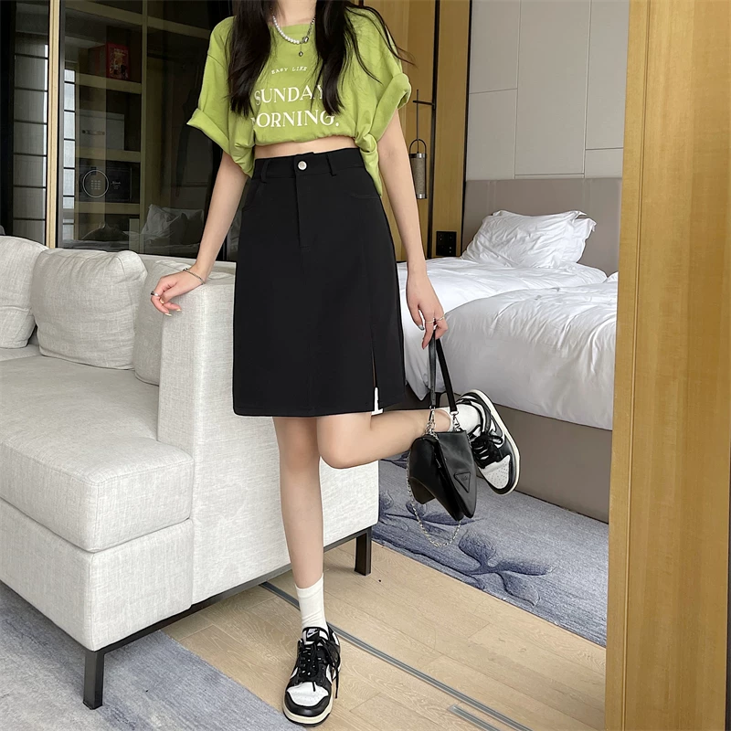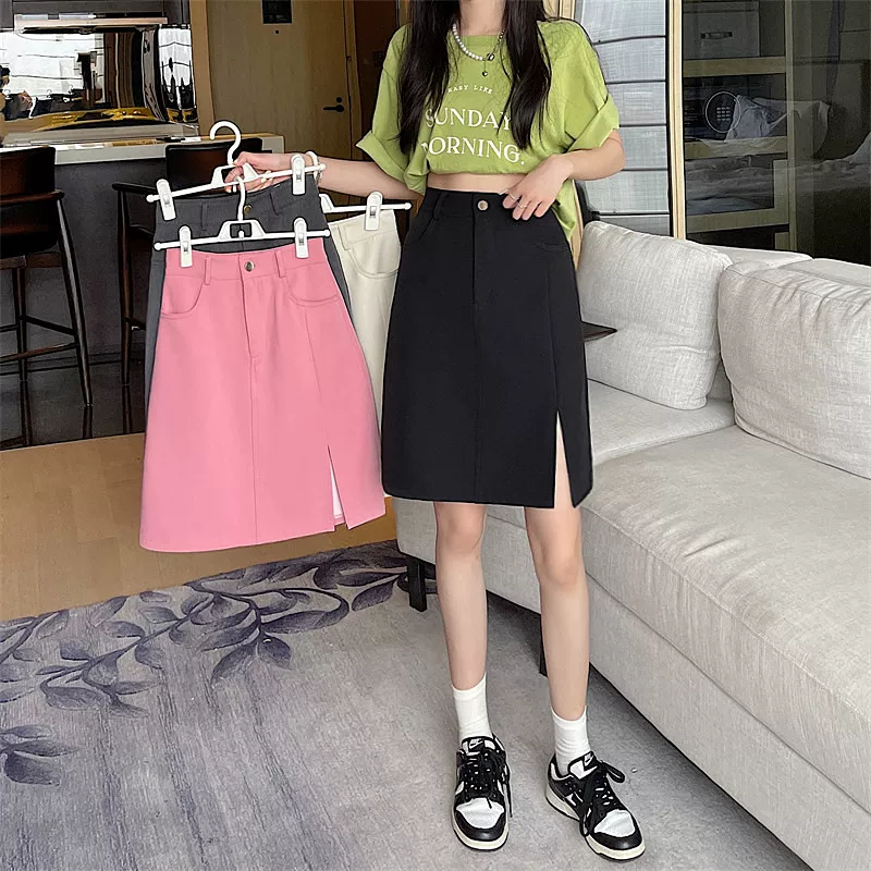 Váy công sở size lớn cho nữ, váy midi mùa hè, váy chữ A xẻ tà lưng cao, váy bút chì dài vừa vặn kiểu Hàn Quốc.