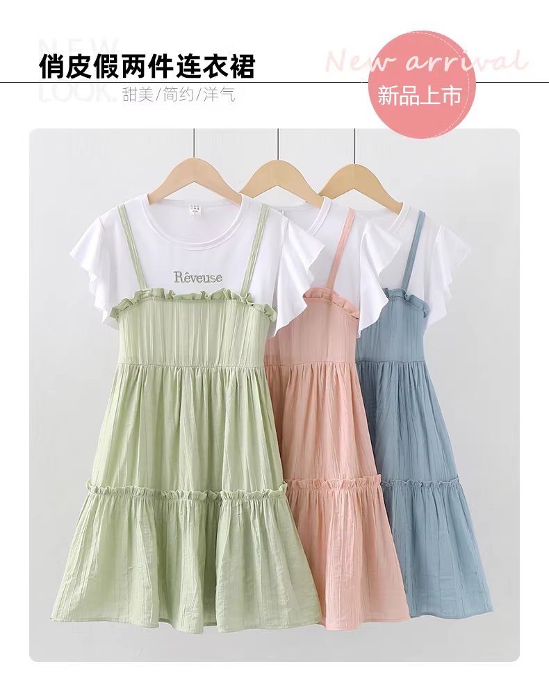 - Váy cotton nguyên chất cho bé gái hè 2025 kiểu dáng mới thời trang, váy yếm công chúa cho bé gái từ trung bình đến lớn