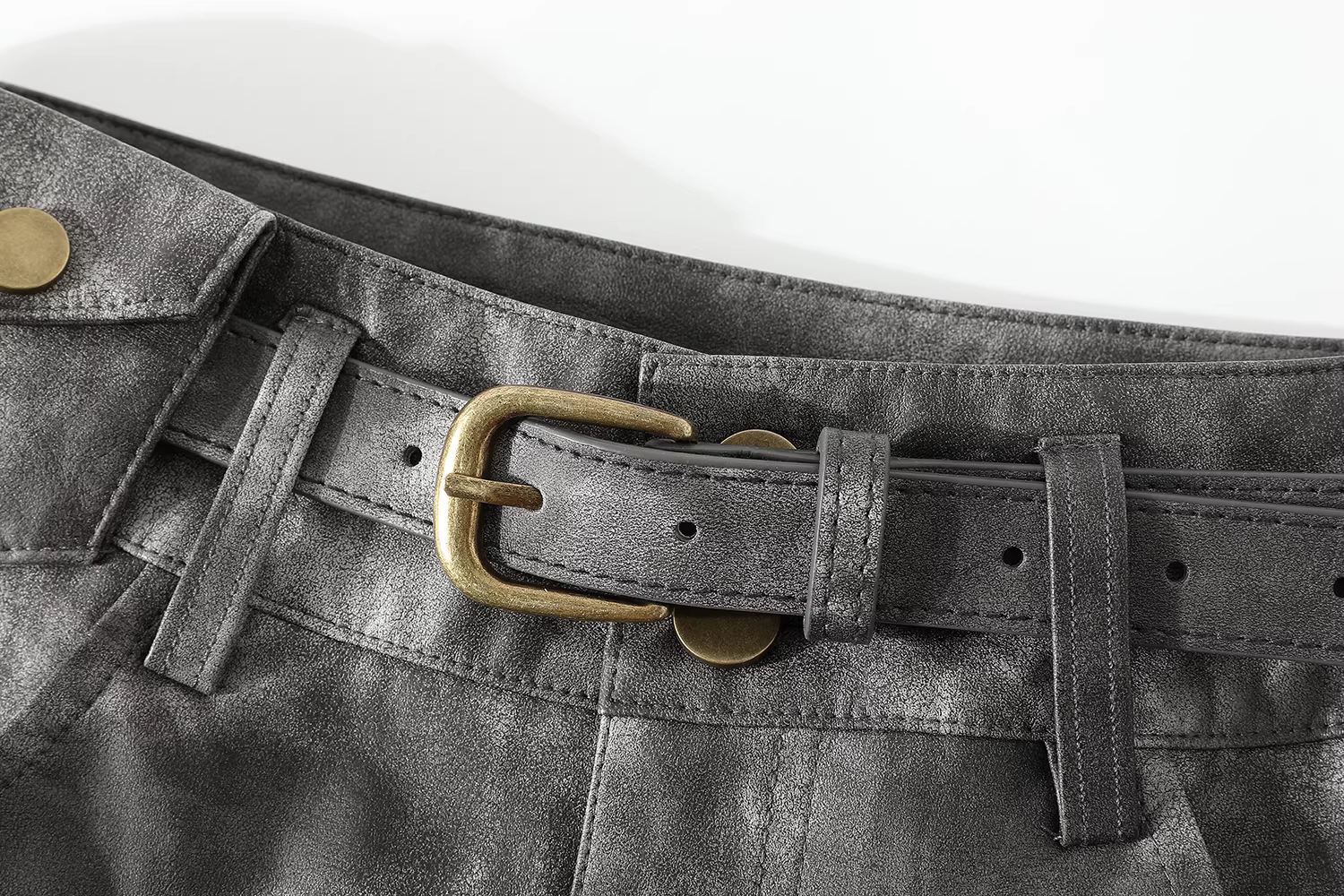 - Váy da đen ngọt ngào kiểu Mỹ váy ngắn váy ngắn nữ mùa xuân thu mới phong cách retro độc đáo nhuộm màu nửa thân váy chữ A ôm hông